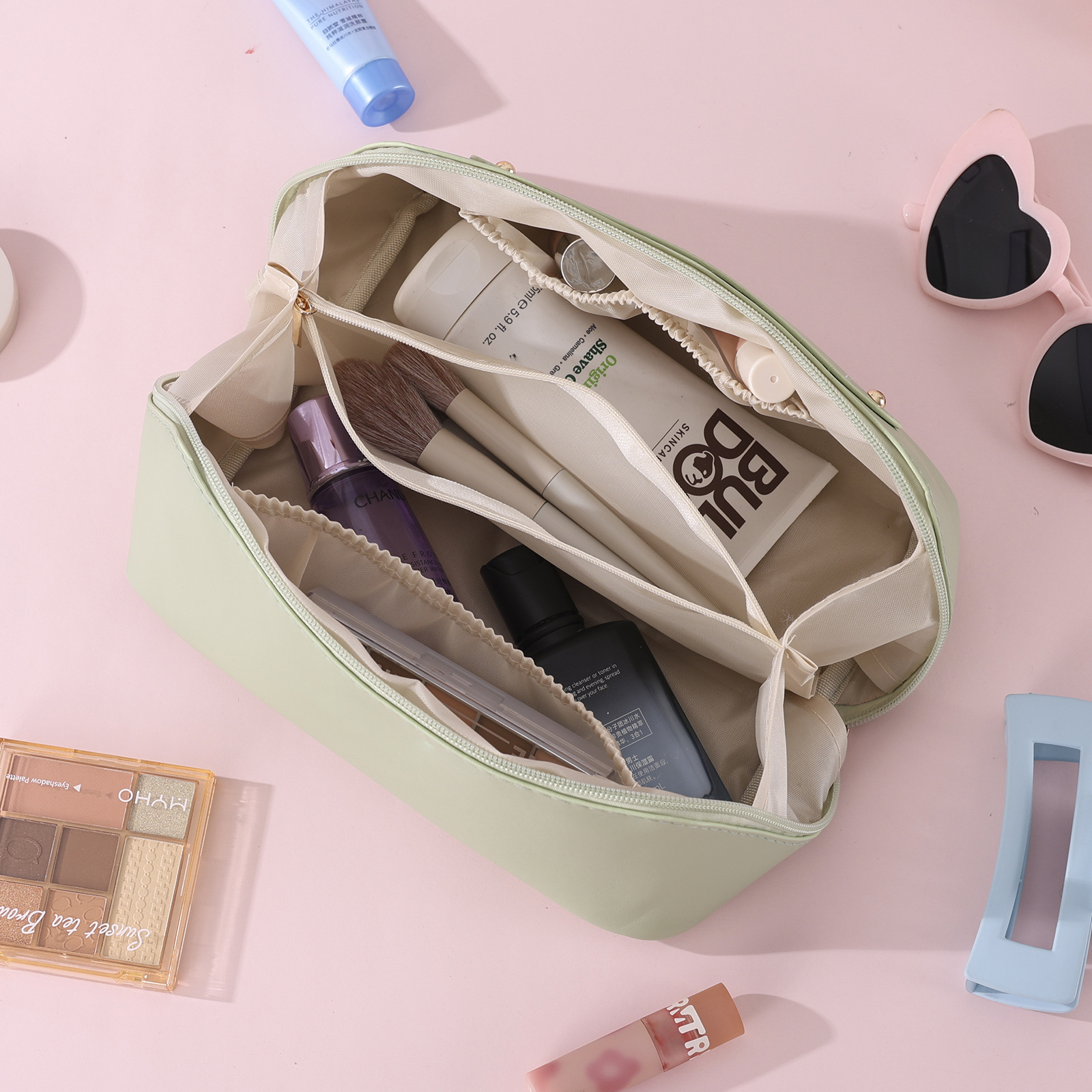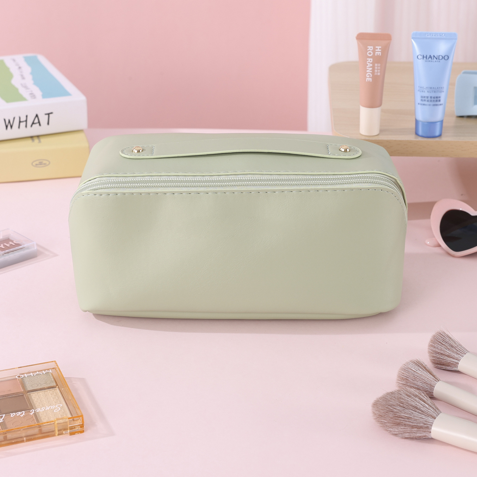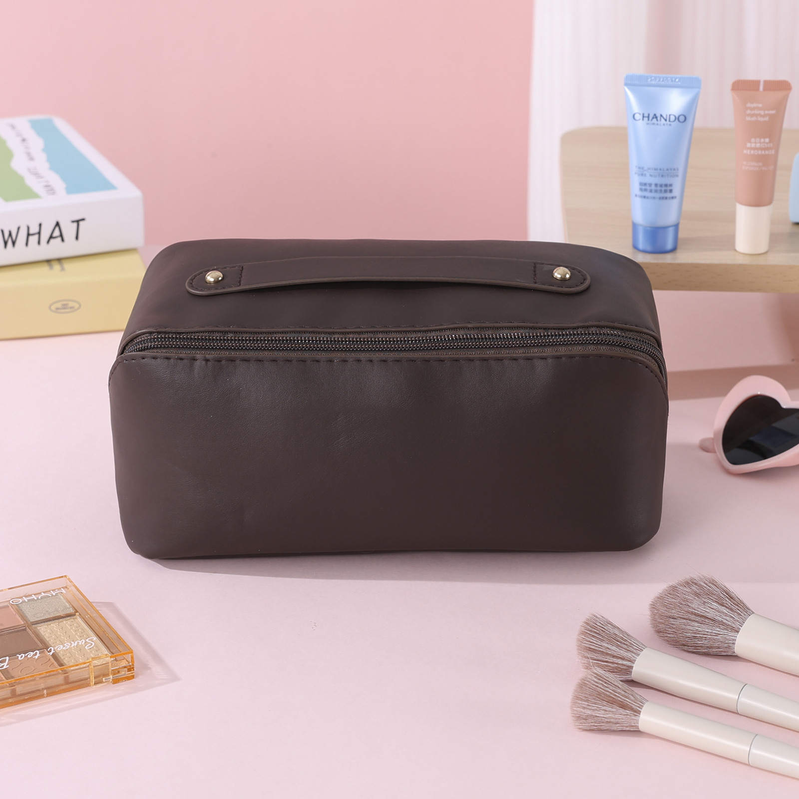 패셔너블한 고급 화장품 가방, 휴대용 여행용 수납 가방, 대용량 세면도구 가방, 손잡이가 달린 고급스러운 PU 가죽 가방