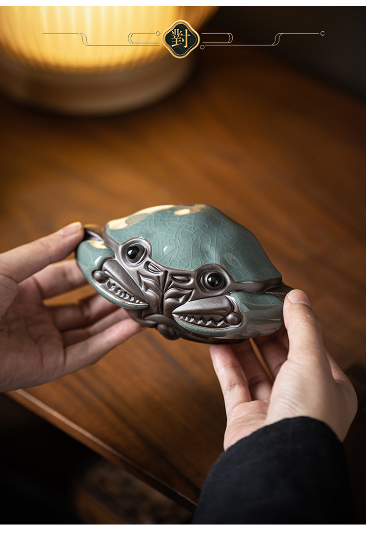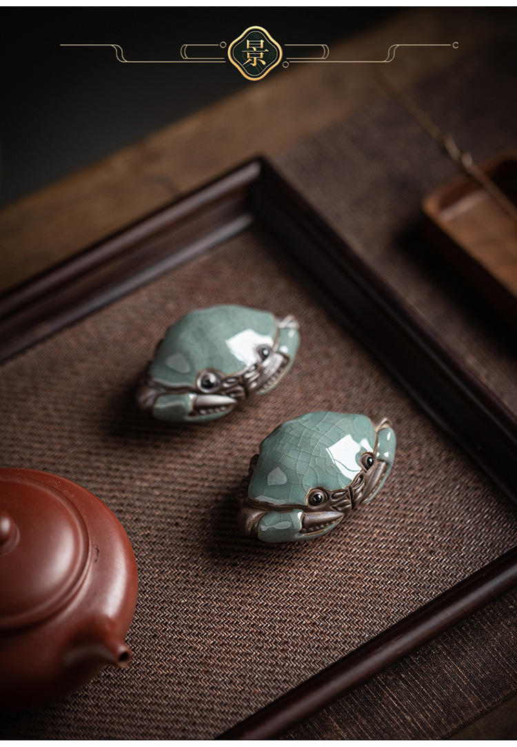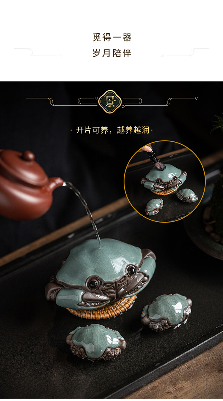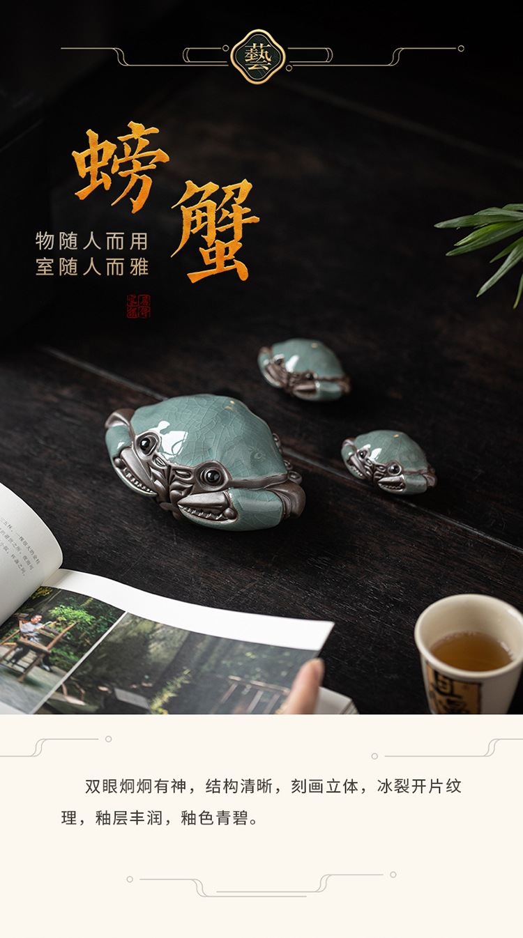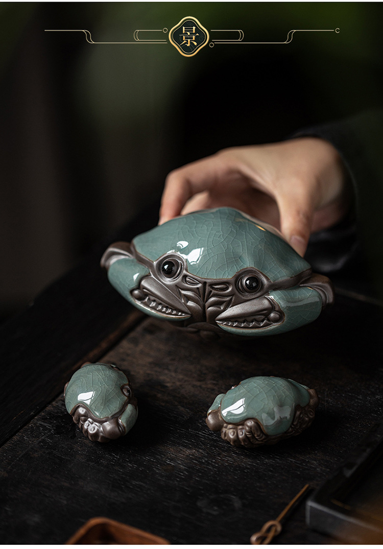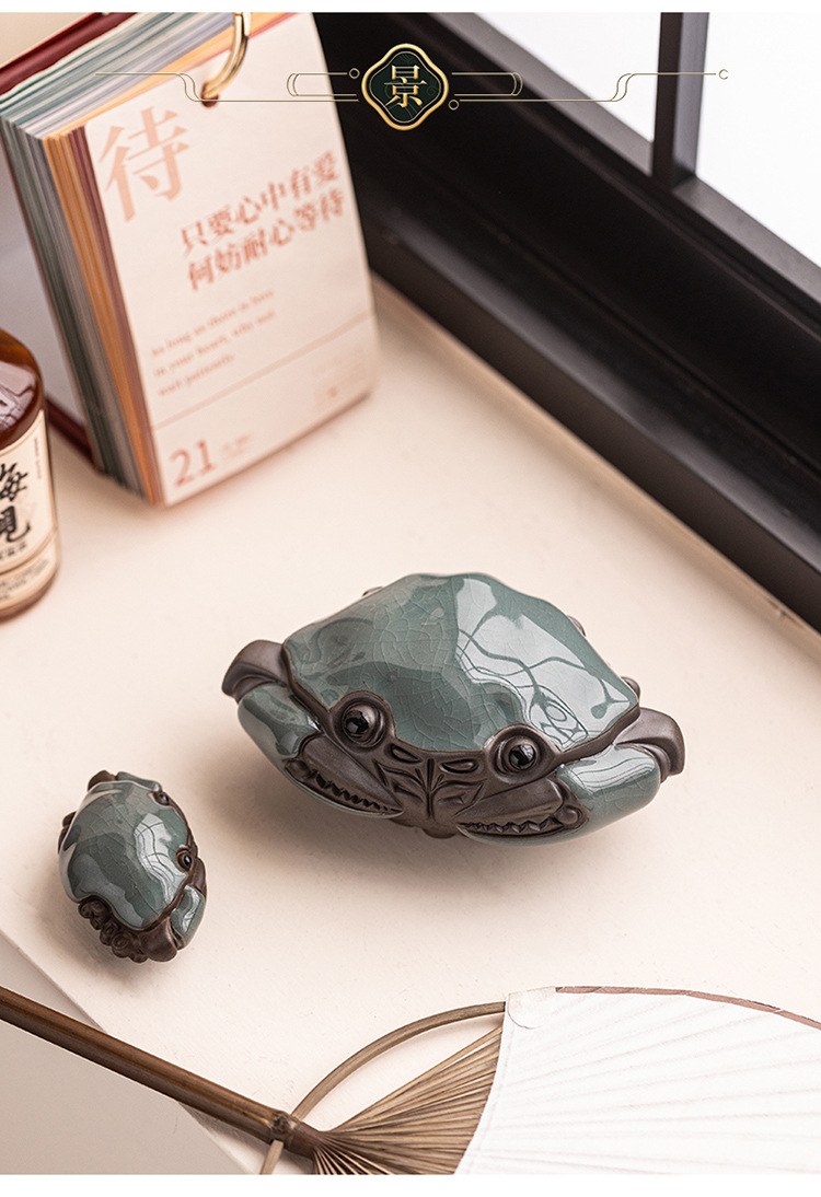 크리 에이 티브 대형 게 장식품 세라믹 가마 조각 홈 거실 장식 다도 데스크탑 차 애완 동물 장식