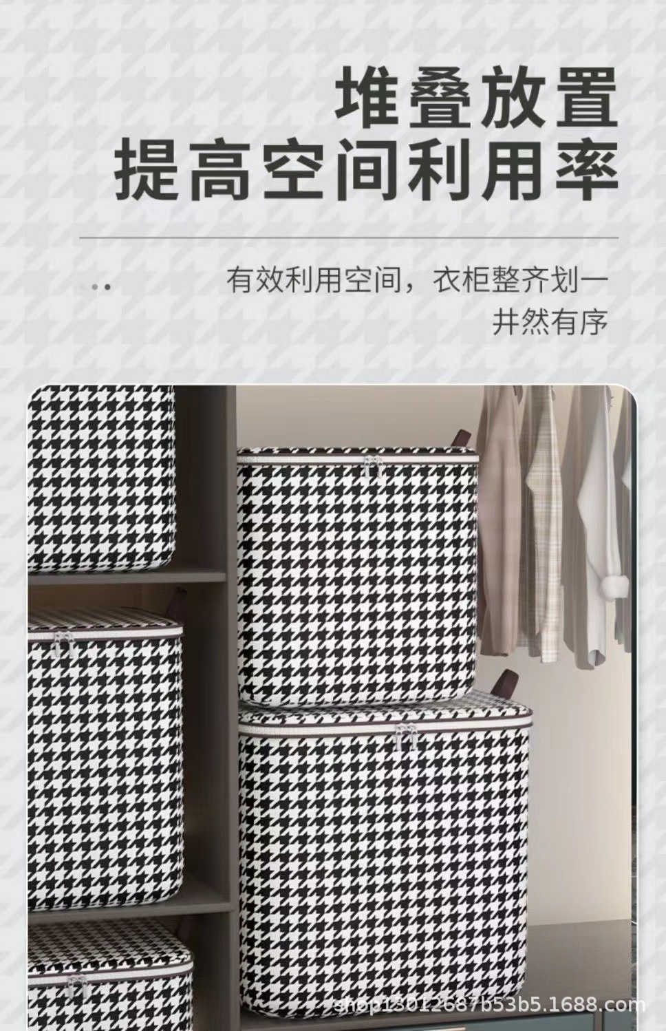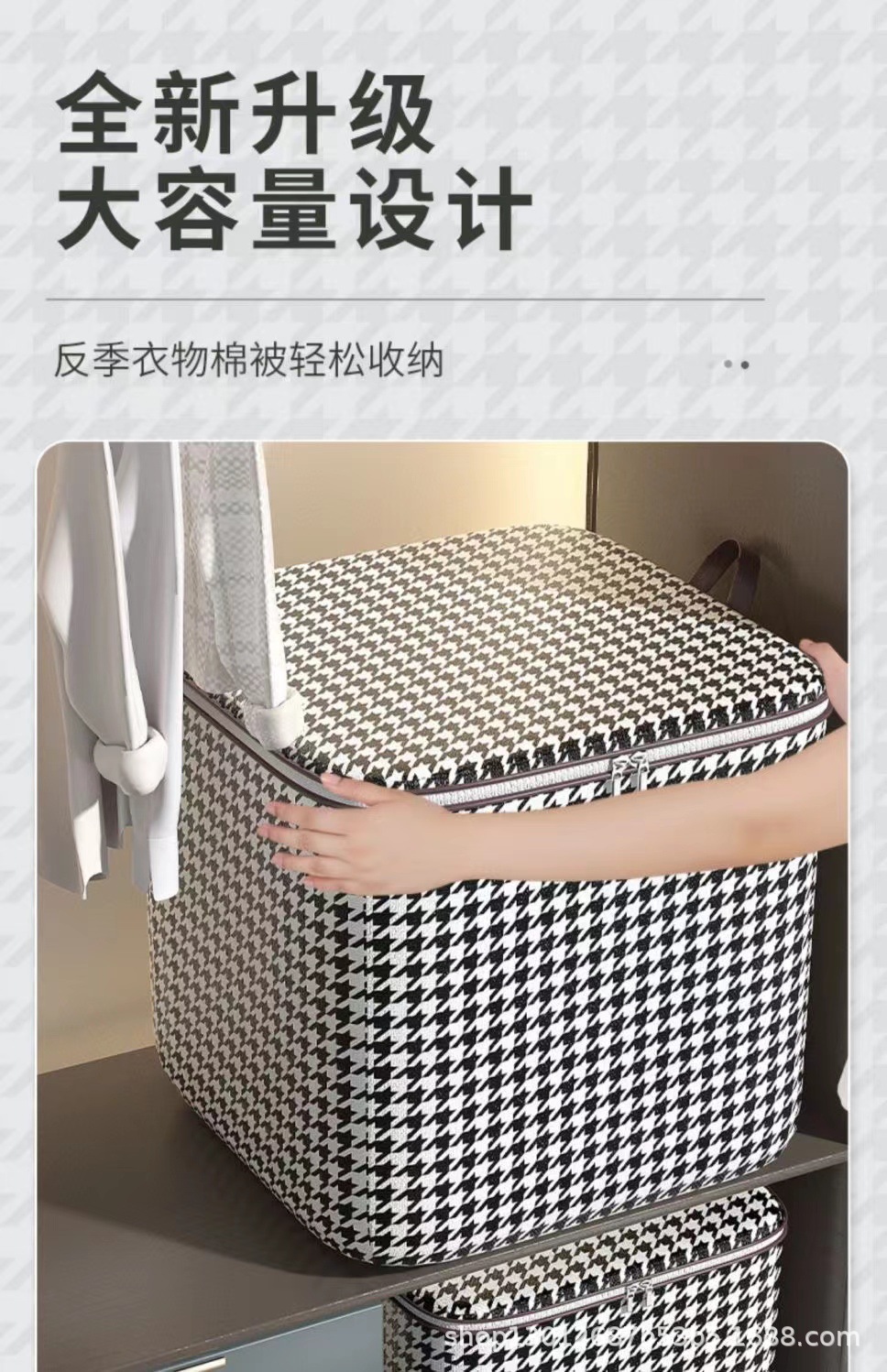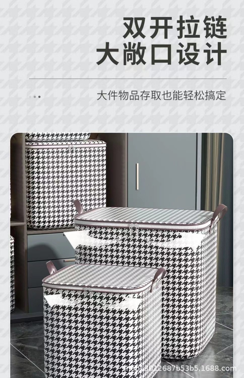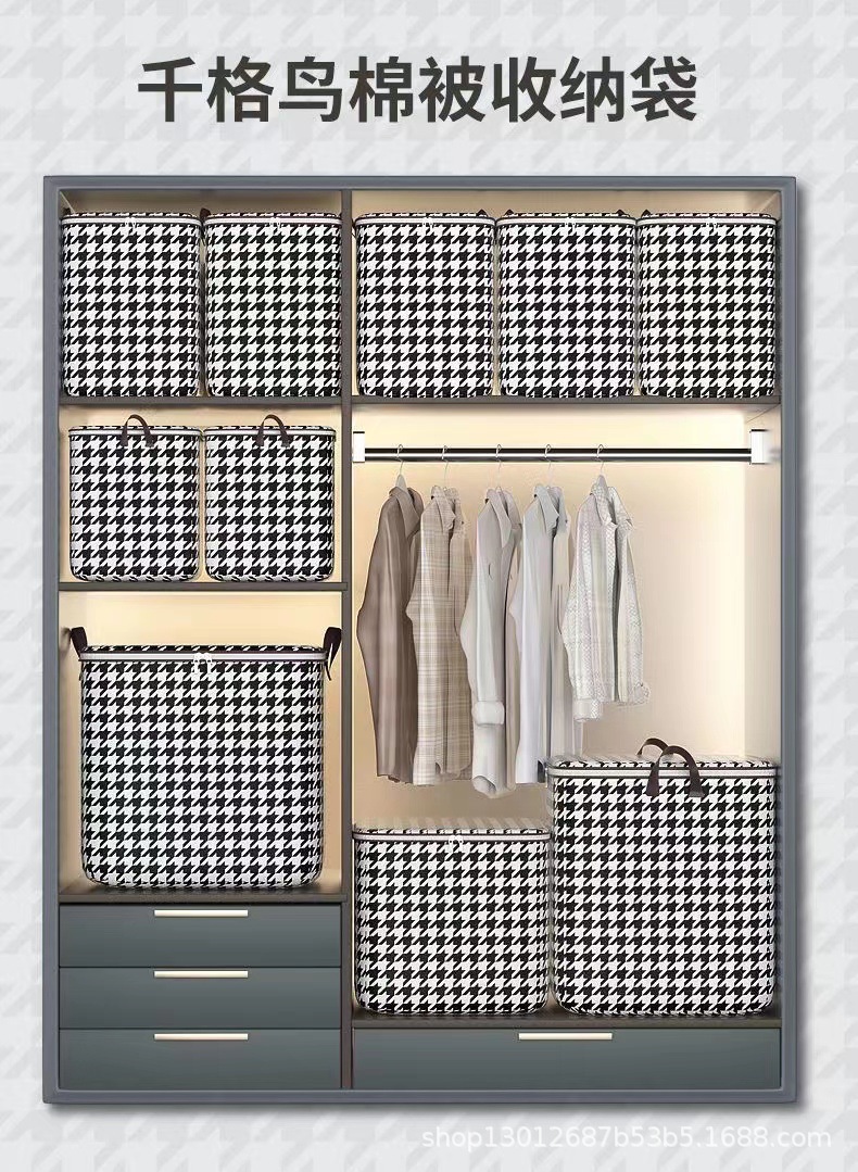 Houndstooth 옷 퀼트 옷장 빅 맥 스토리지 백 지퍼 이동 마무리 직물 이동 가방 저장 가방스토어 가기