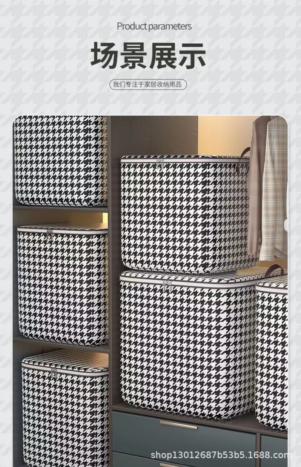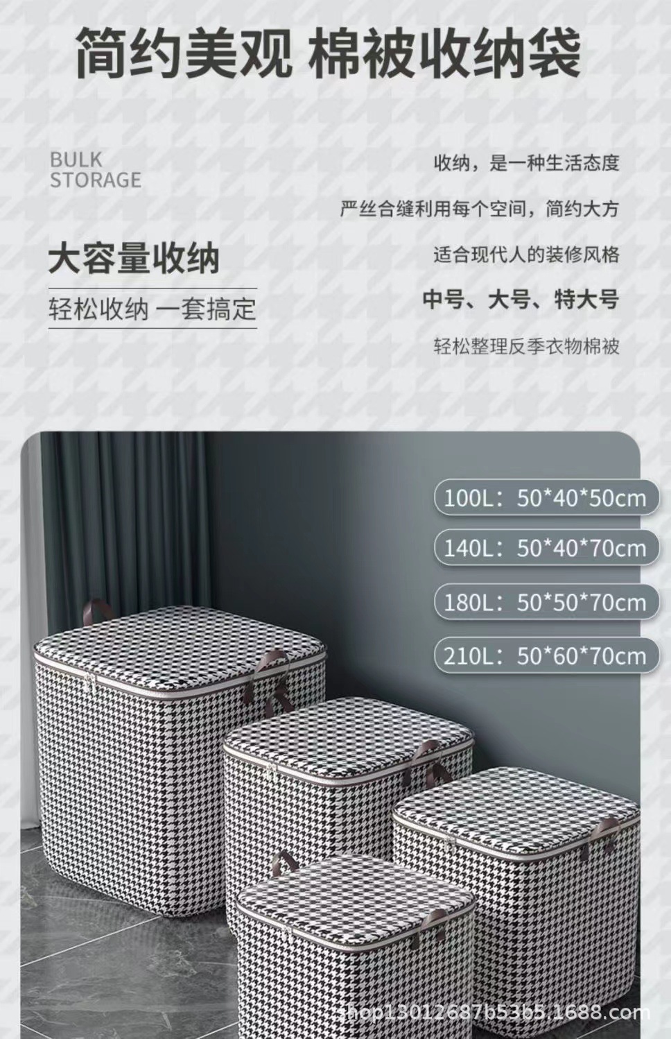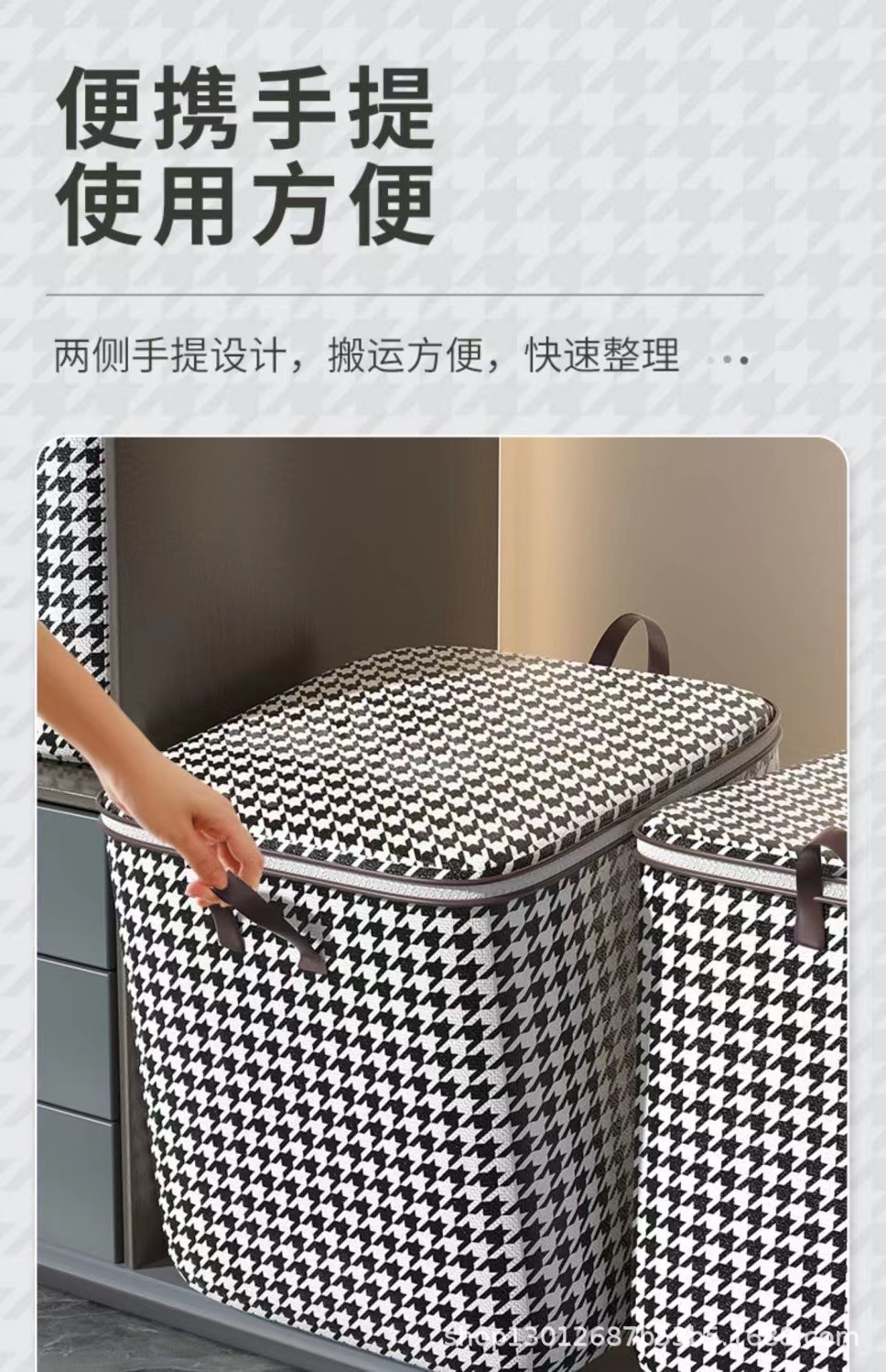 Houndstooth 옷 퀼트 옷장 빅 맥 스토리지 백 지퍼 이동 마무리 직물 이동 가방 저장 가방스토어 가기