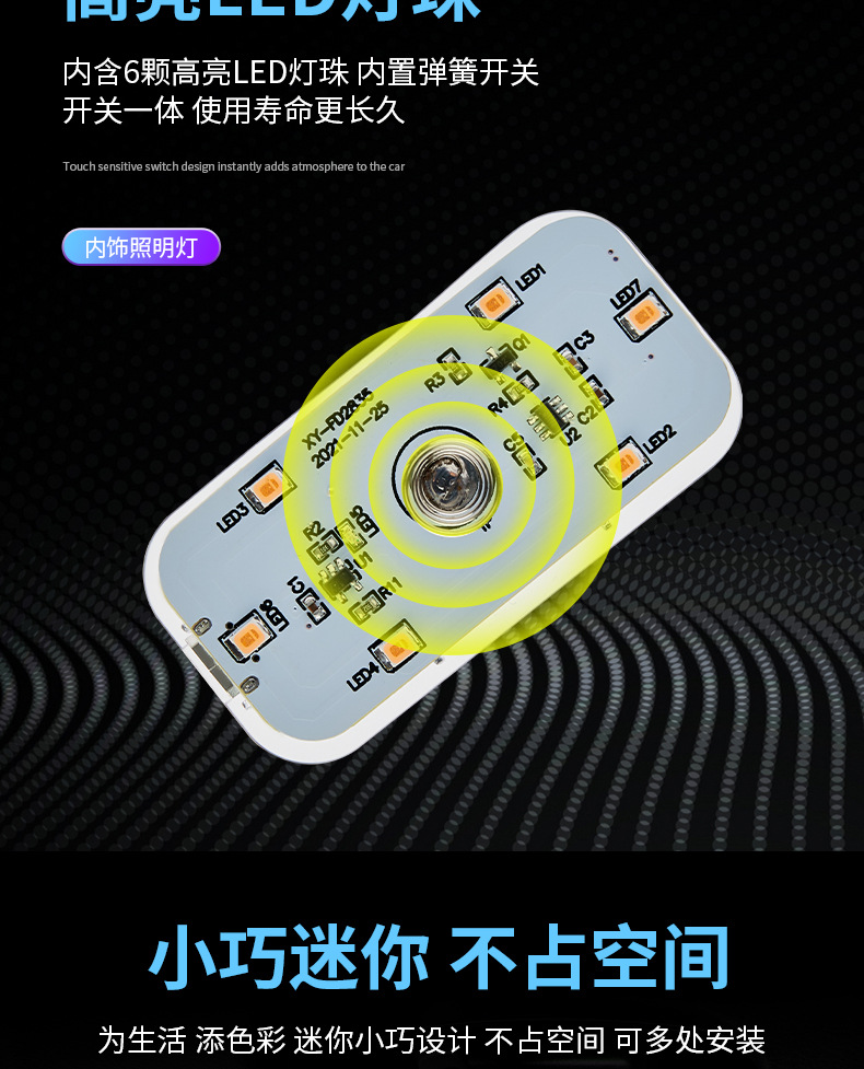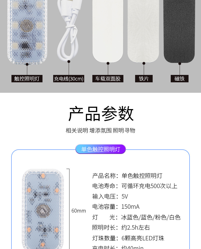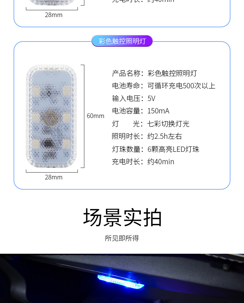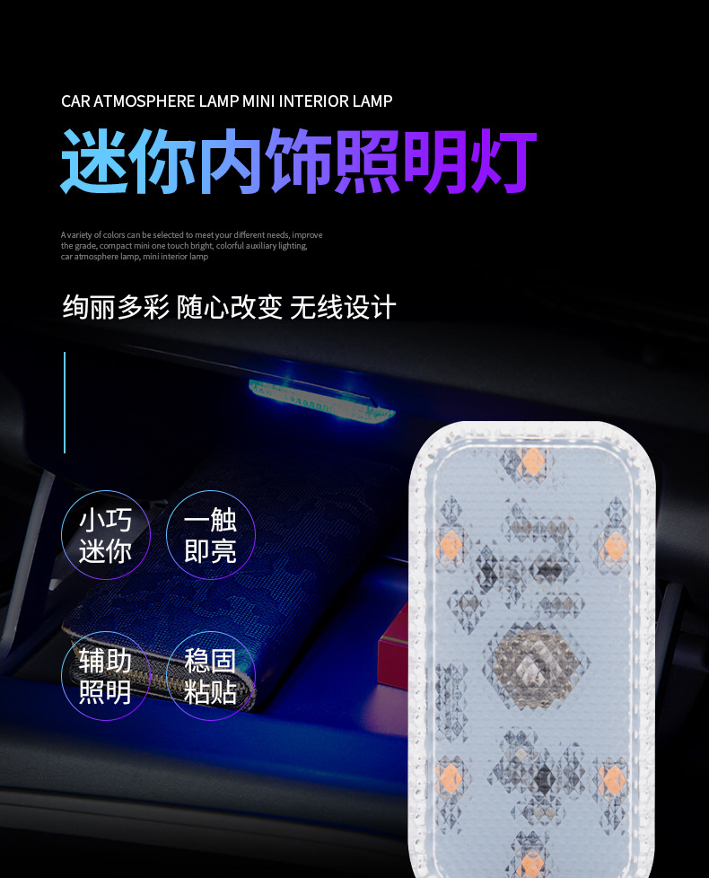자동차 터치 센서등 분위기등 LED 충전 독서등 배선 무료 무선 자동차 장식 등