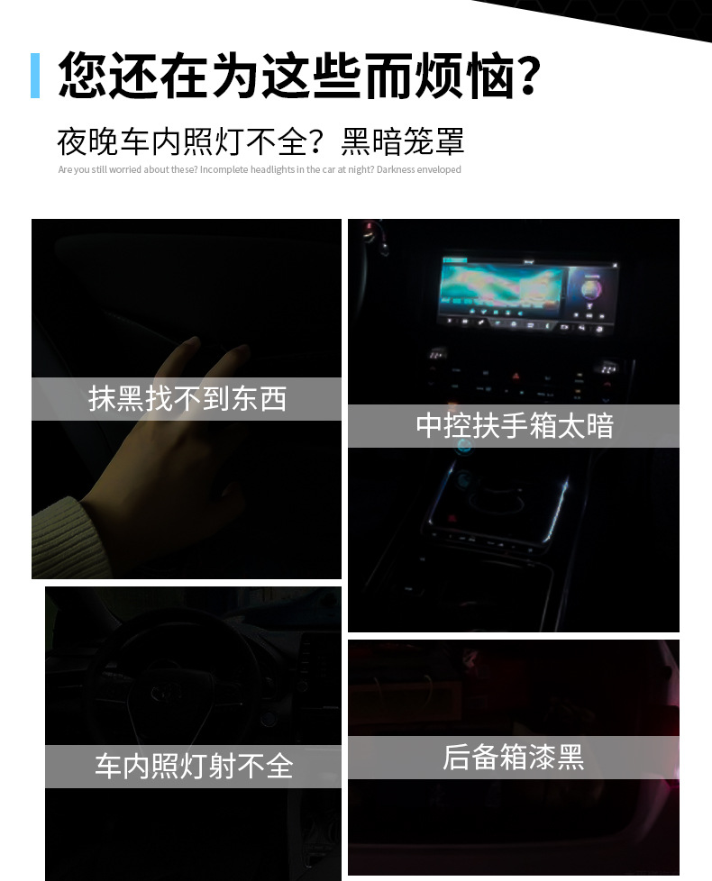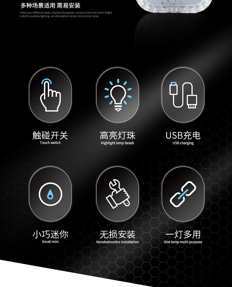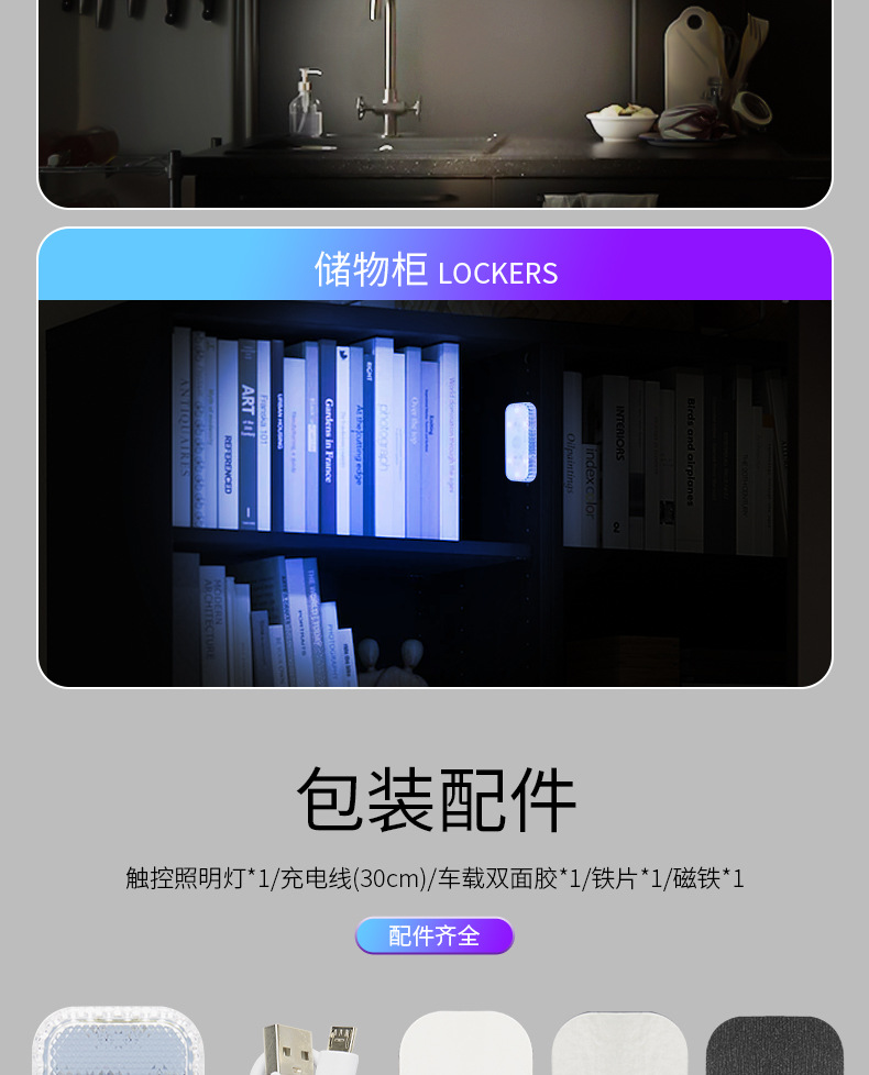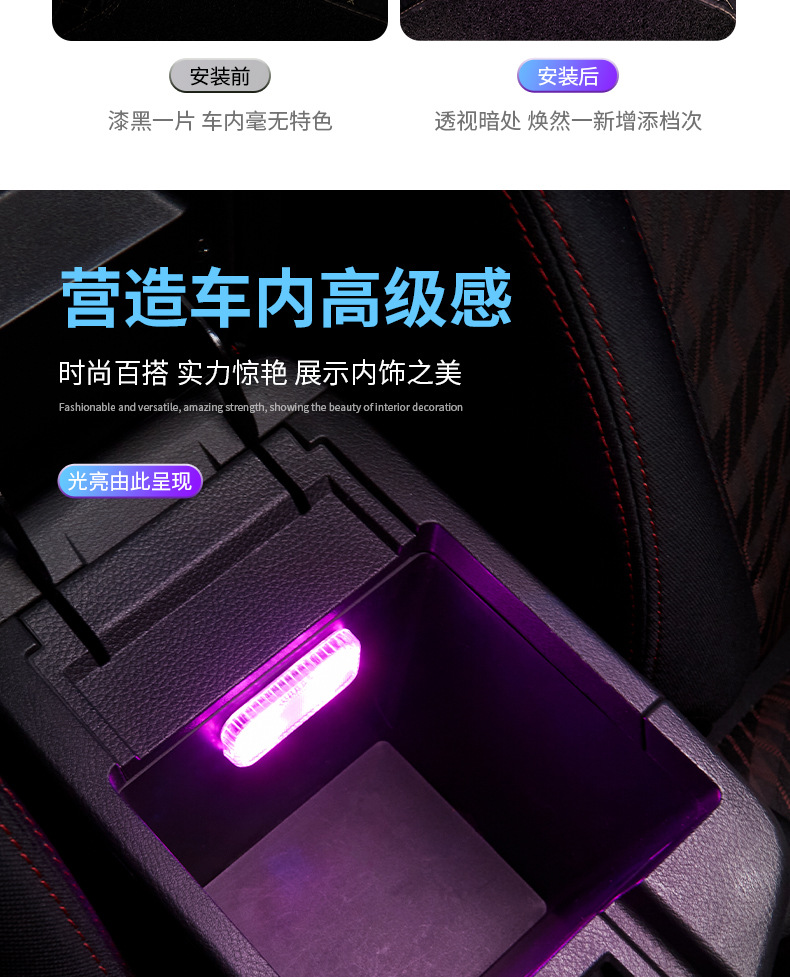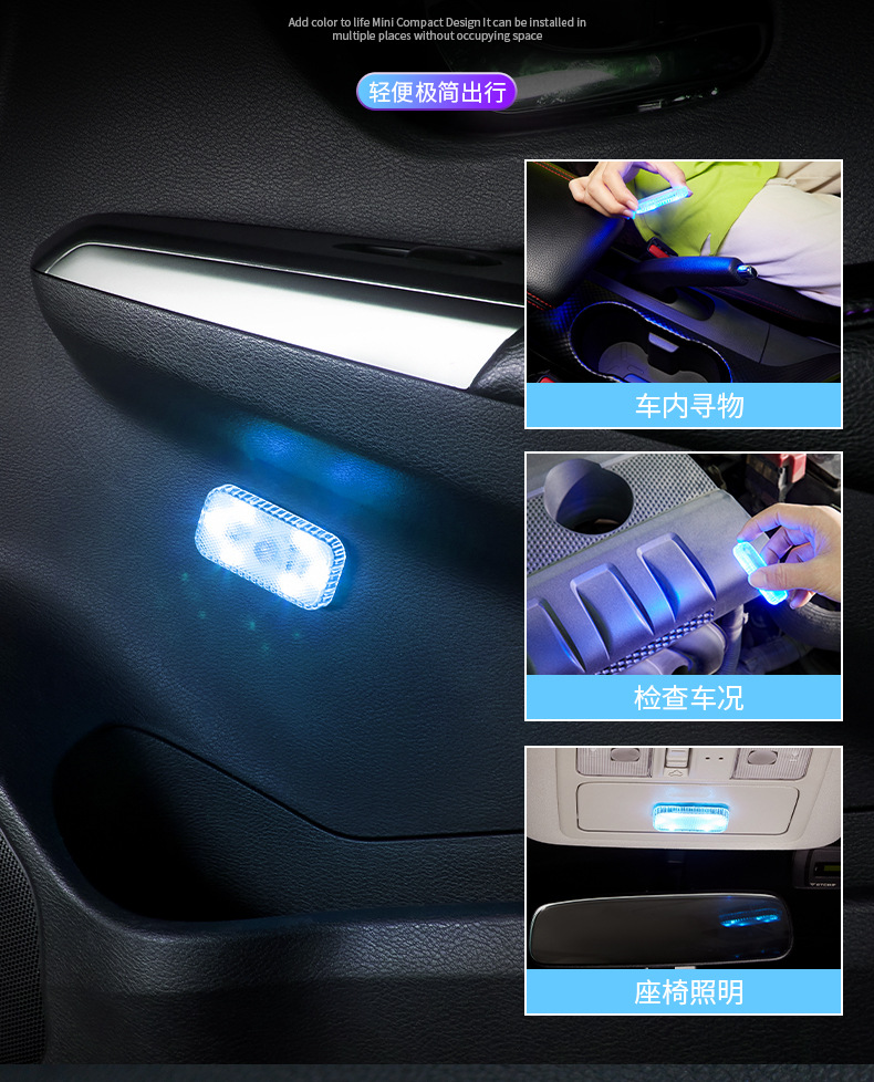 자동차 터치 센서등 분위기등 LED 충전 독서등 배선 무료 무선 자동차 장식 등