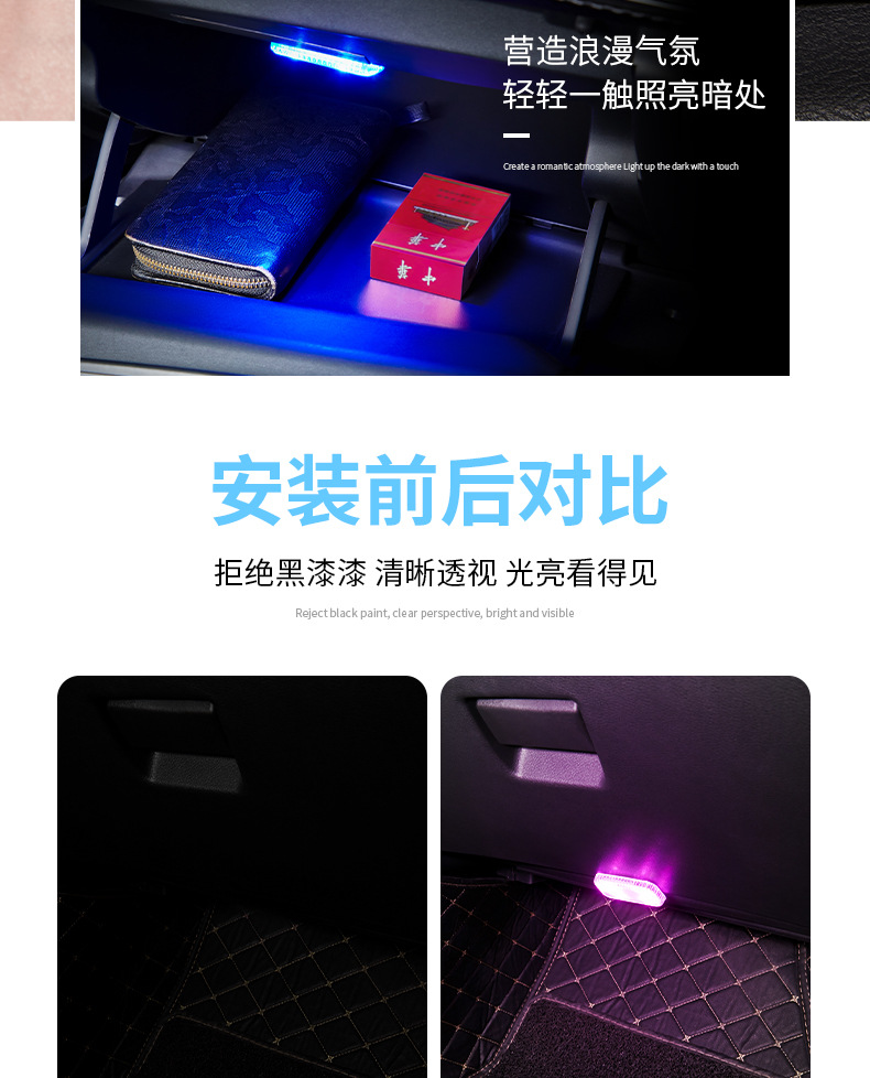 자동차 터치 센서등 분위기등 LED 충전 독서등 배선 무료 무선 자동차 장식 등스토어 가기