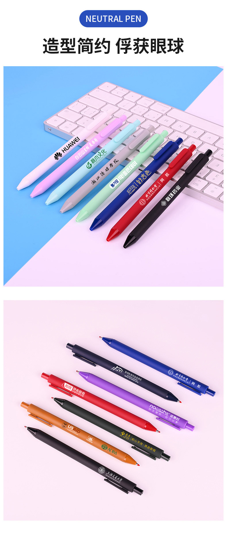간단한 프레스 젤 펜 광고 서명 펜 프로스트 접착제 Morandi 탄소 주조 회사 맞춤형 펜 로고