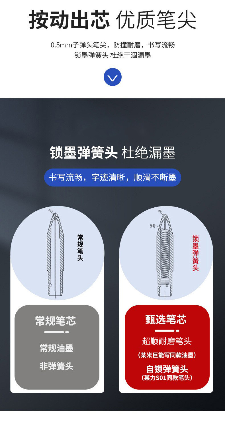 • 잠금 잉크 스프링 펜 팁 0.5mm 블랙 중립 펜