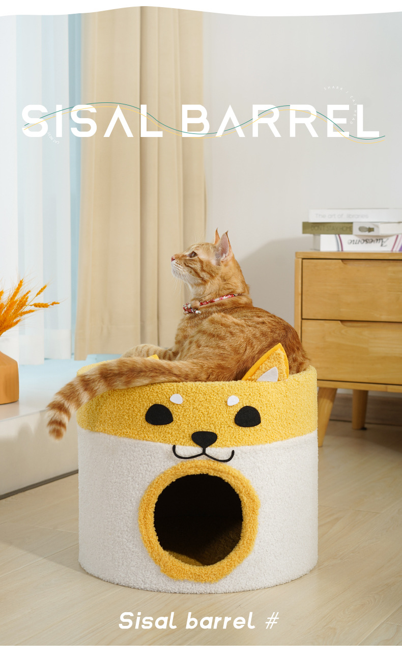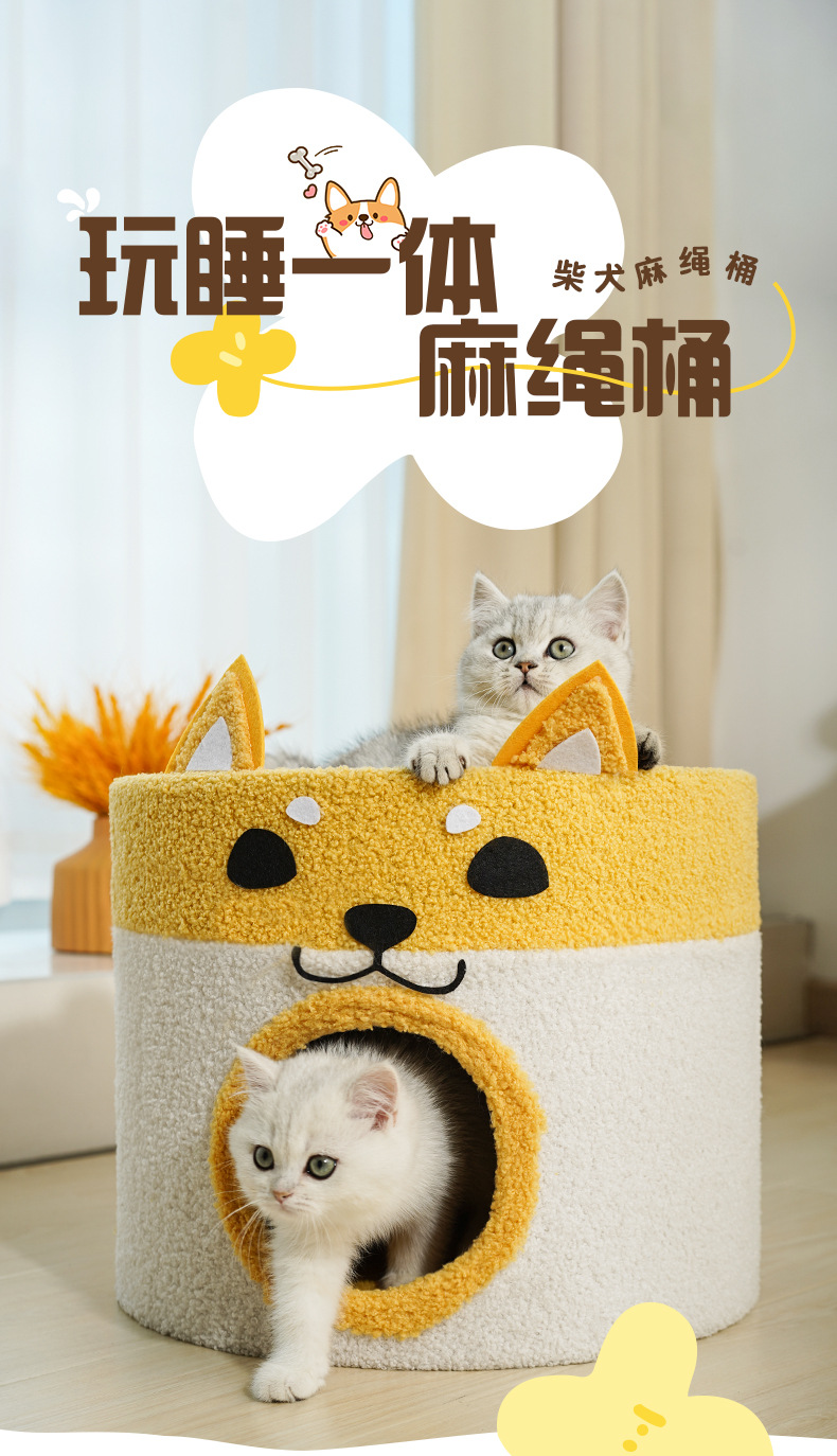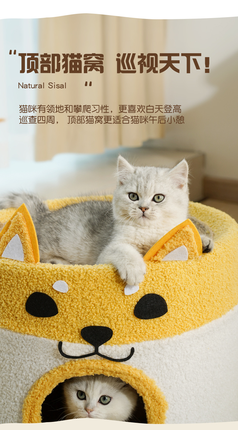고양이 클라이밍 프레임, 대마 매트, 버킷, 고양이 둥지, 고양이 트리, 일체형 소형, 공간 절약형, 이중층 고양이 스크래치 보드, 사계절 모두 사용 가능한 만능 고양이 용품스토어 가기