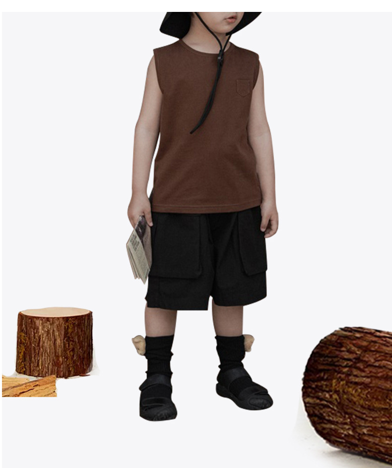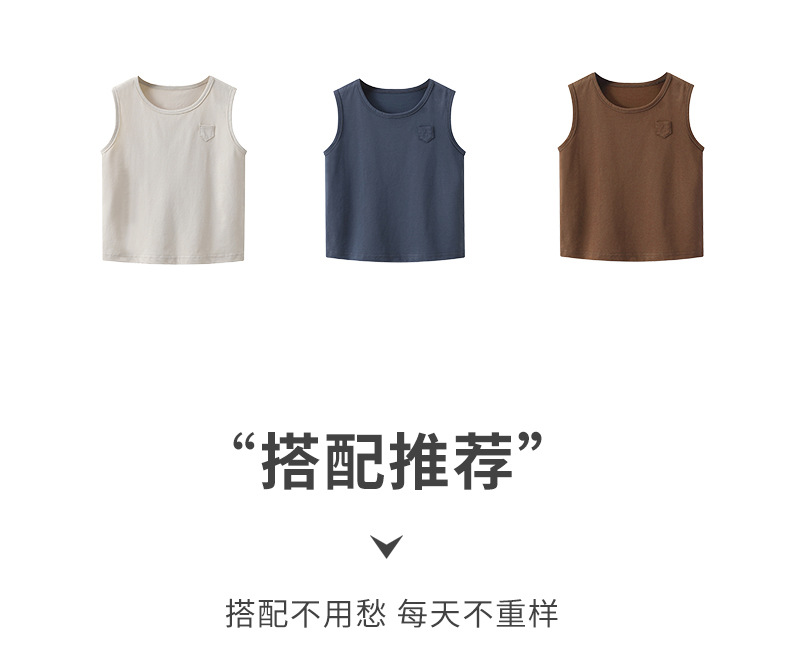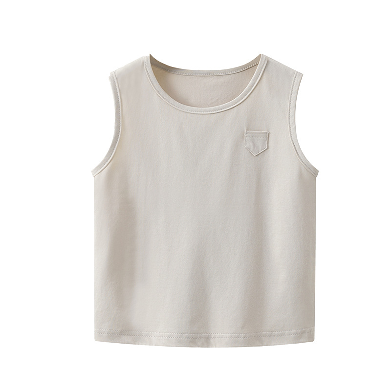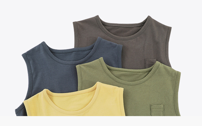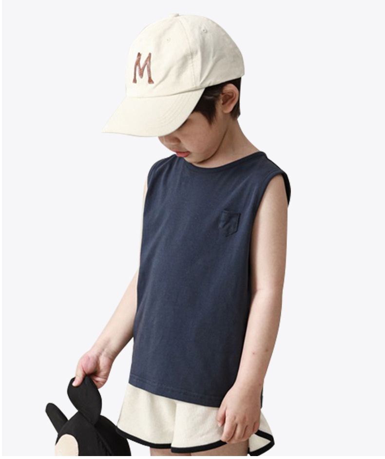 [쿨감 옥수수 섬유] 하이엔드 일본식 한국식 솔리드 컬러 한국 아동 와이드 숄더 조끼 베이비 베이직 면 민소매