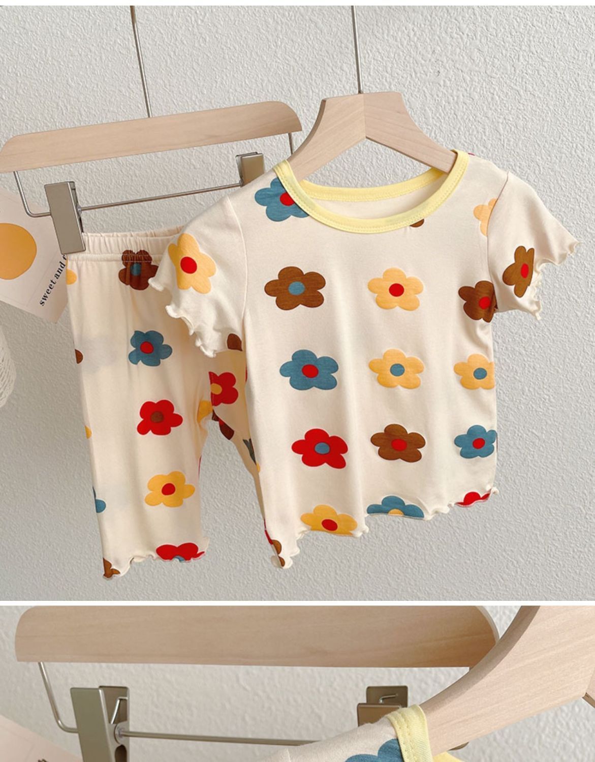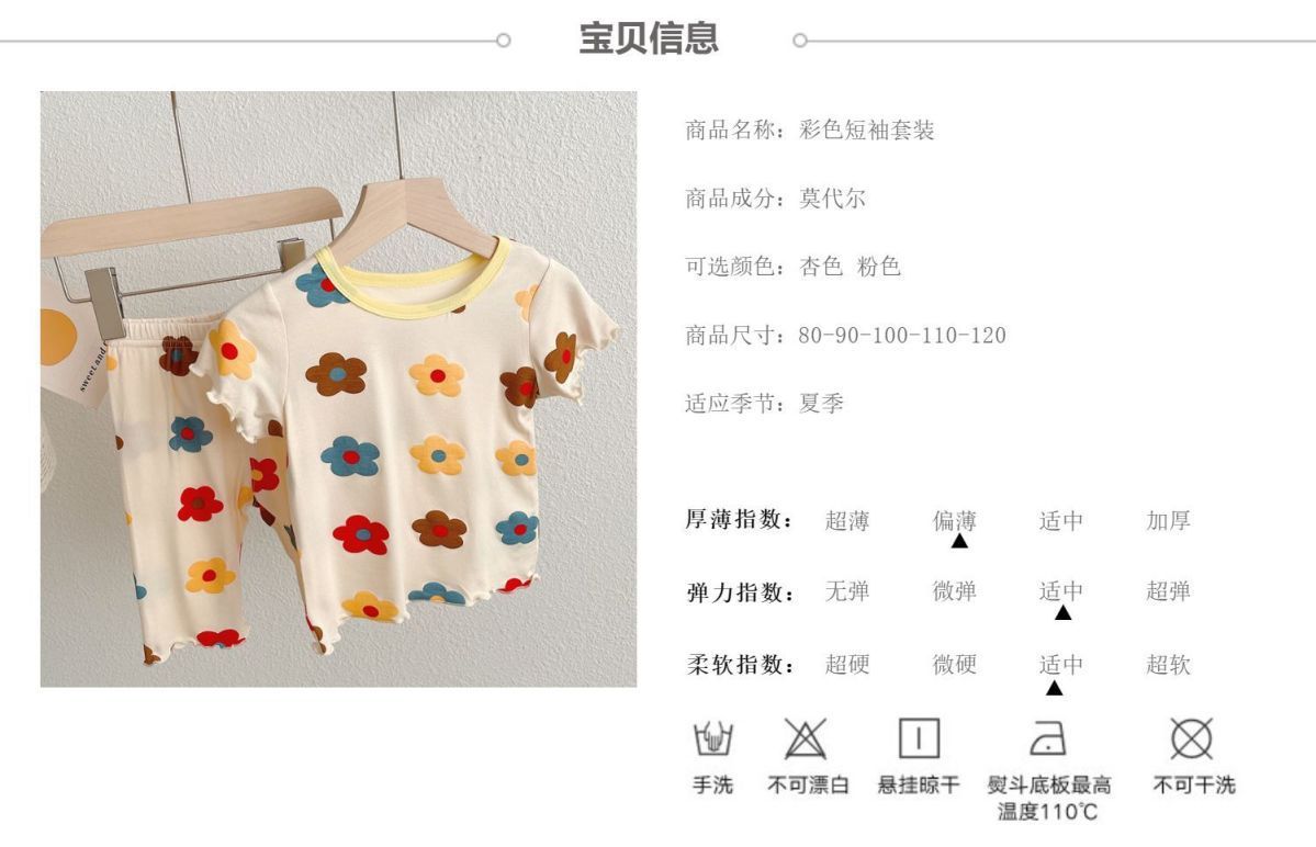 여아 아이스 실크 잠옷 반팔 세트 여름 얇은 스트레치 아기 아동용 투피스 가정복스토어 가기
