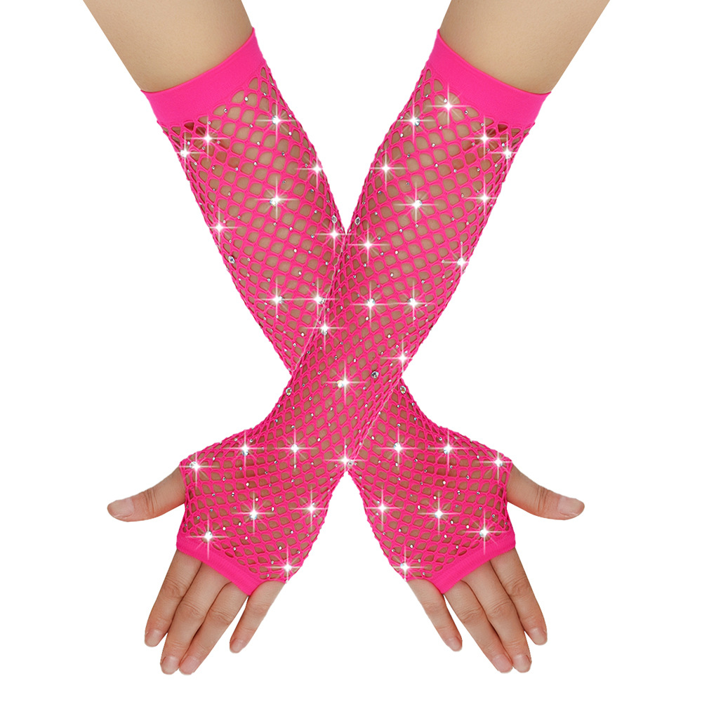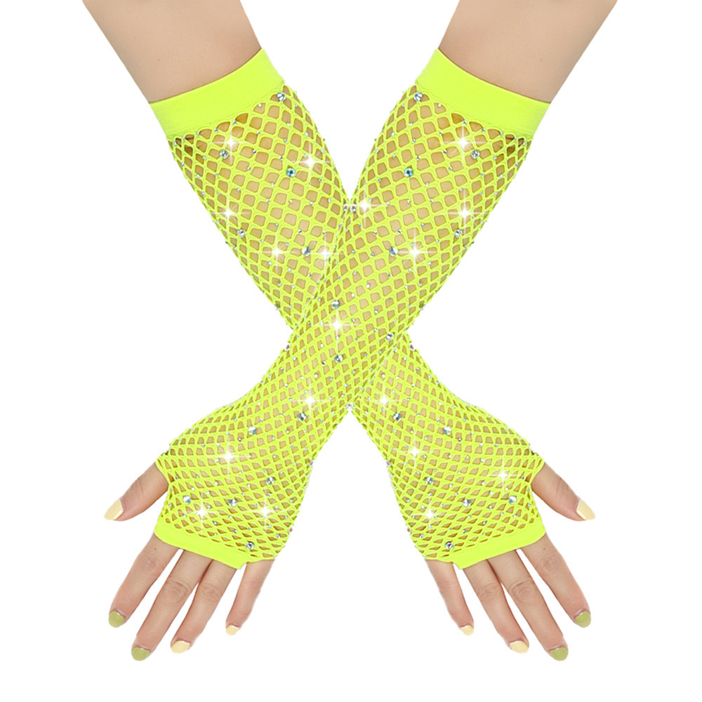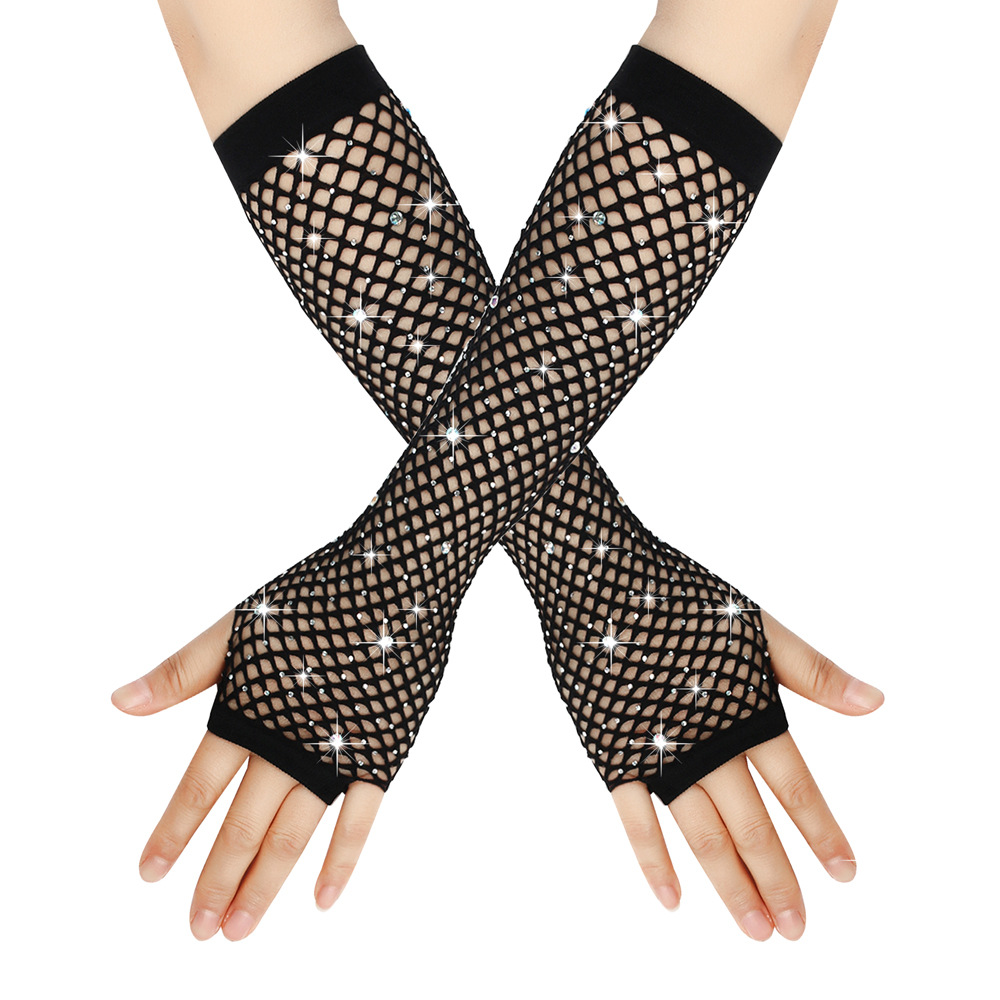80 볼 다이아몬드 장갑 파티 낚시 그물 스트레치 메쉬 장갑 유럽과 미국 복고풍 크로스 보더 섹시한 뜨거운 드릴링 긴 장갑
