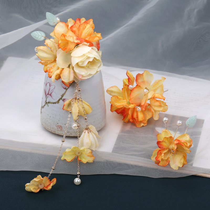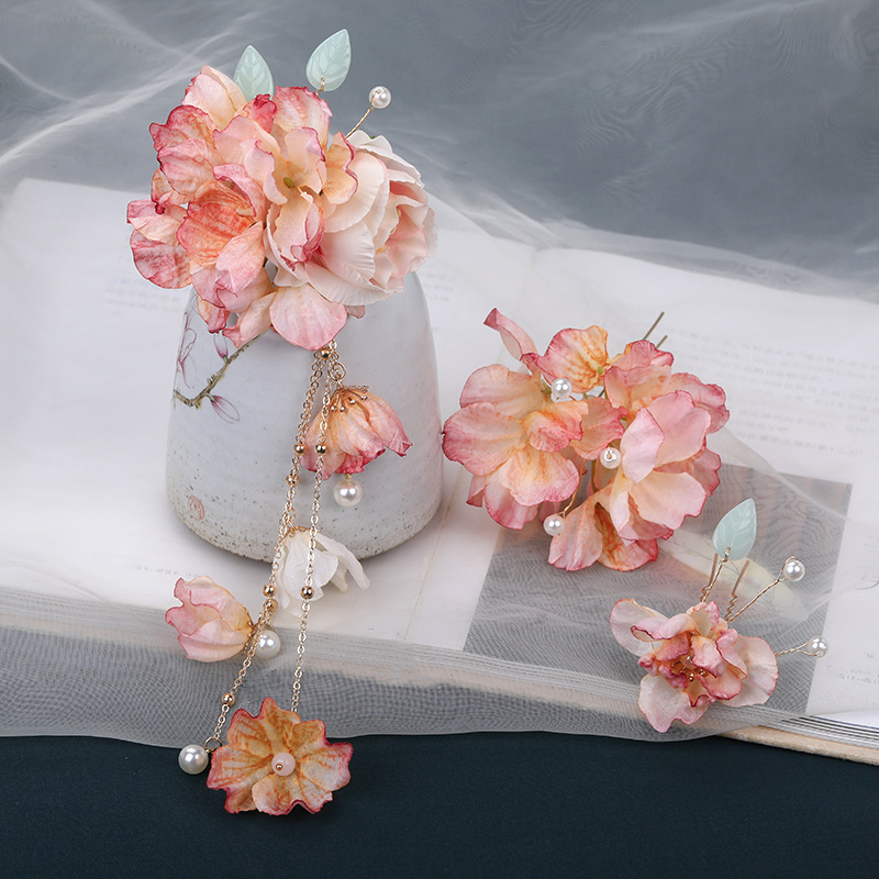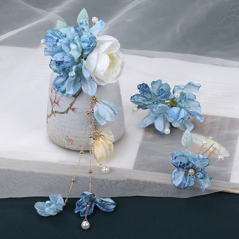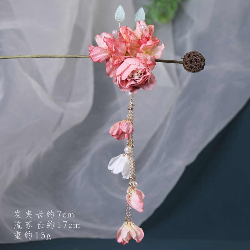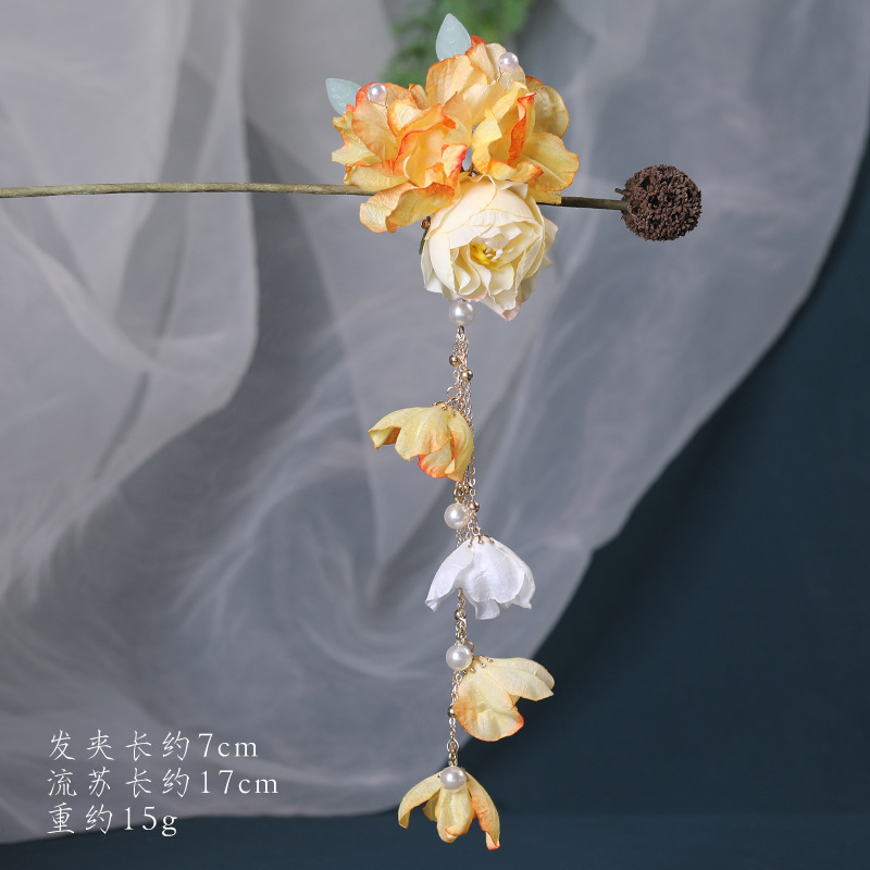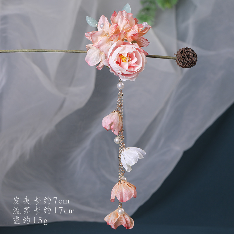 Hanfu 실크 꽃 헤어 액세서리 긴 술 다시 눌러 머리핀 여성용 골동품 모자 레트로 사이드 클립 노래 만든 액세서리 머리 장식 꽃 알약스토어 가기