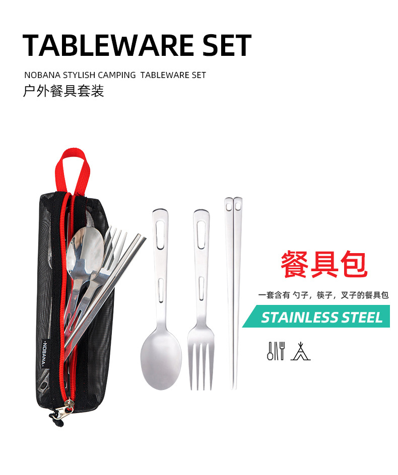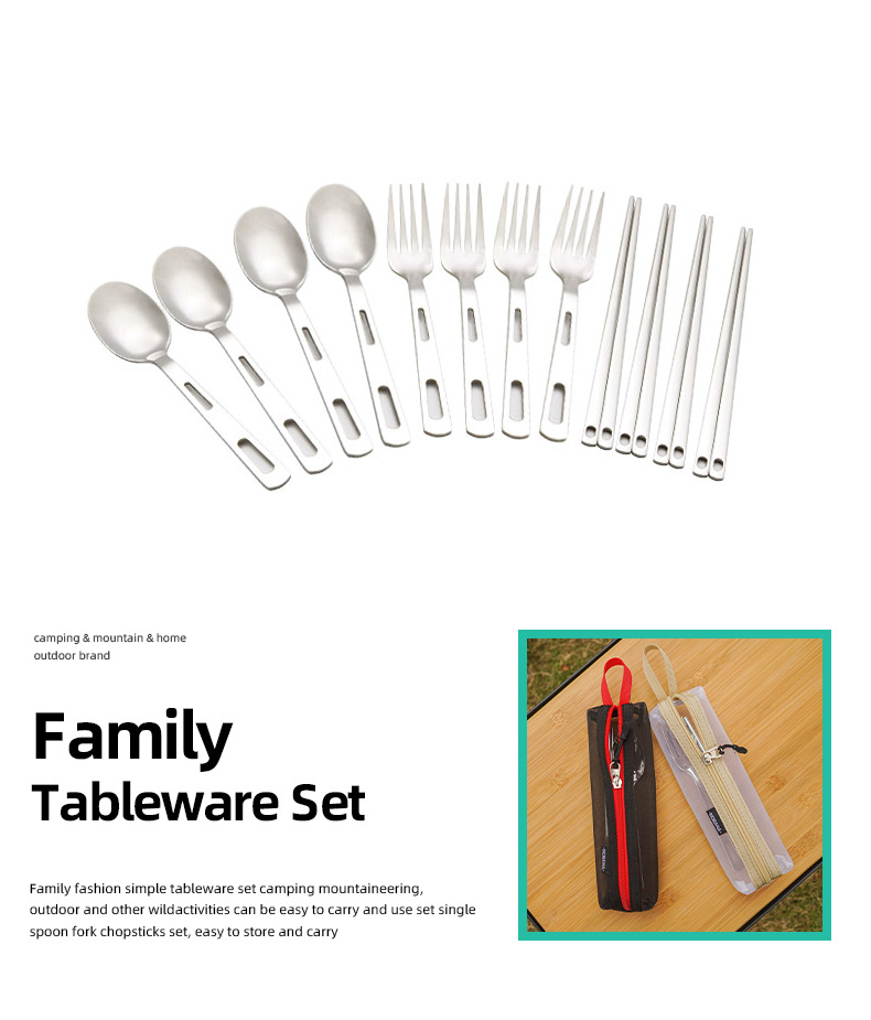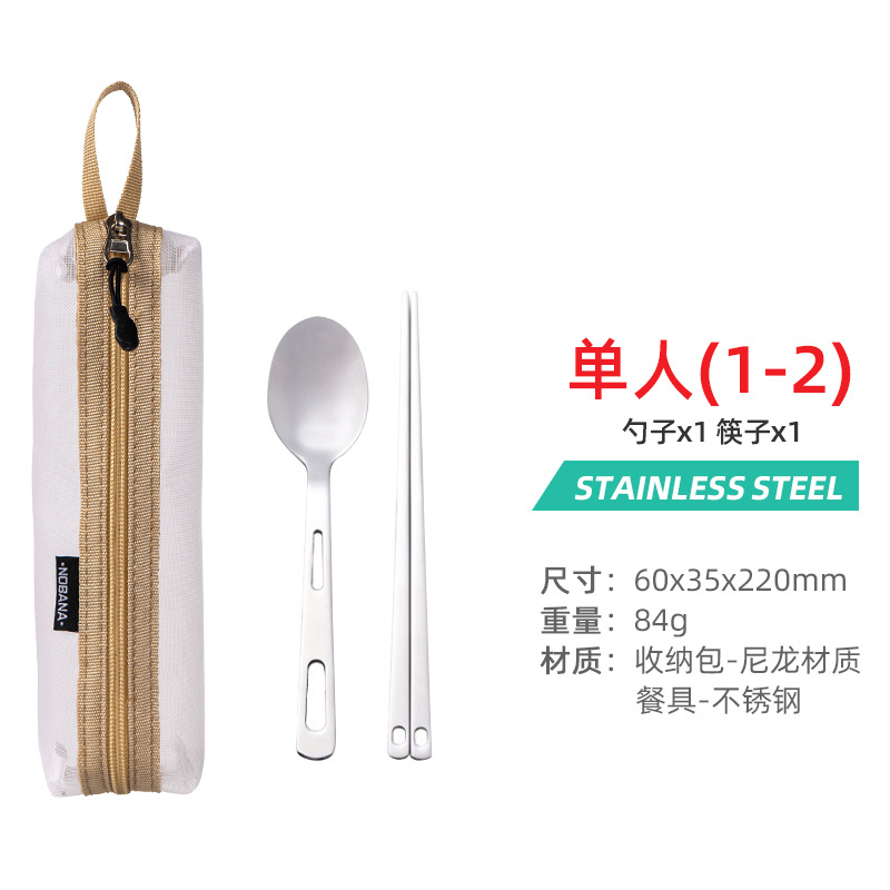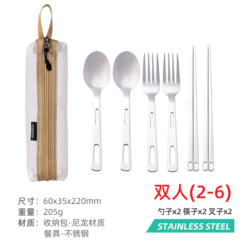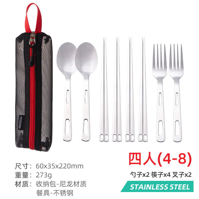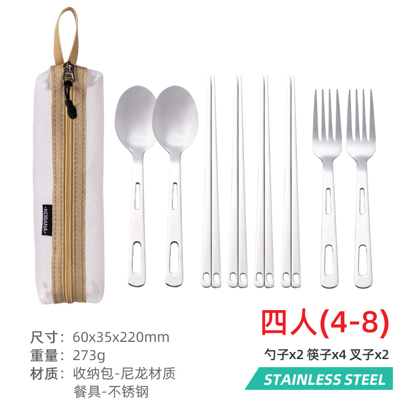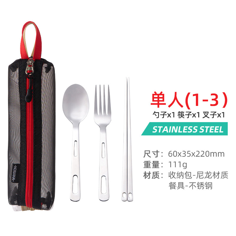 야외 스테인레스 스틸 식기 단일 다중 인용 포크 스푼 젓가락 캠핑 하이킹 낚시 피크닉 휴대용 세트
