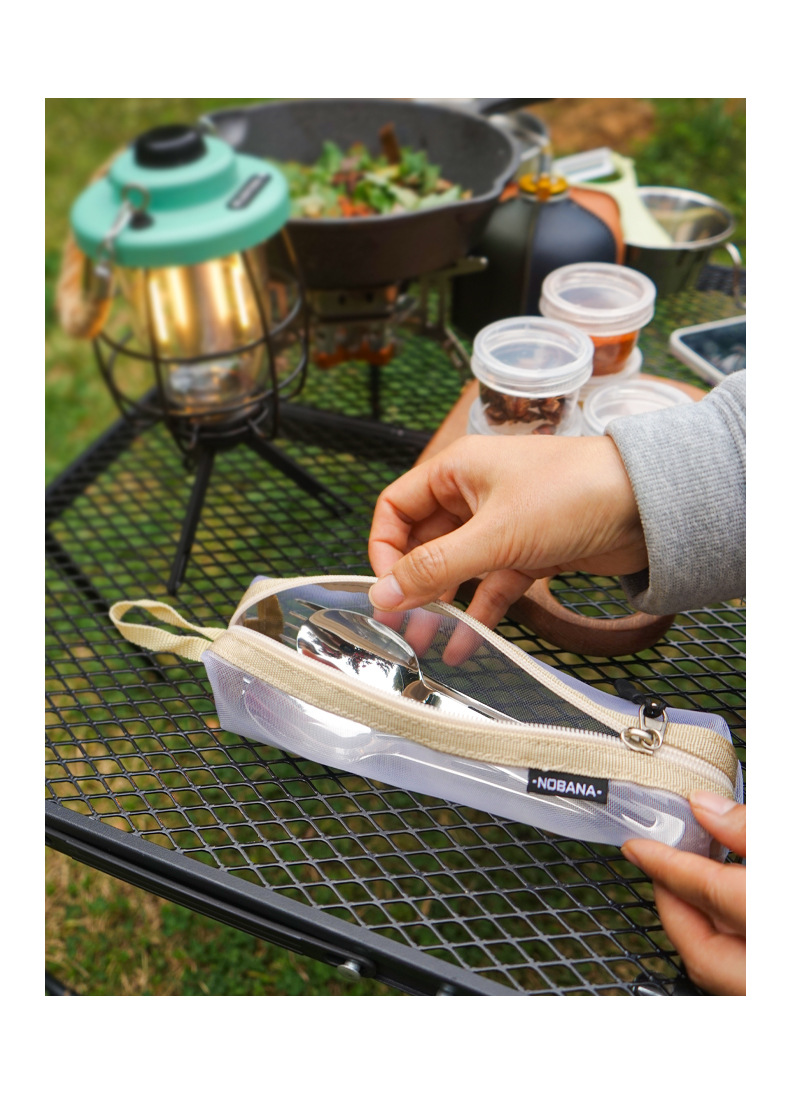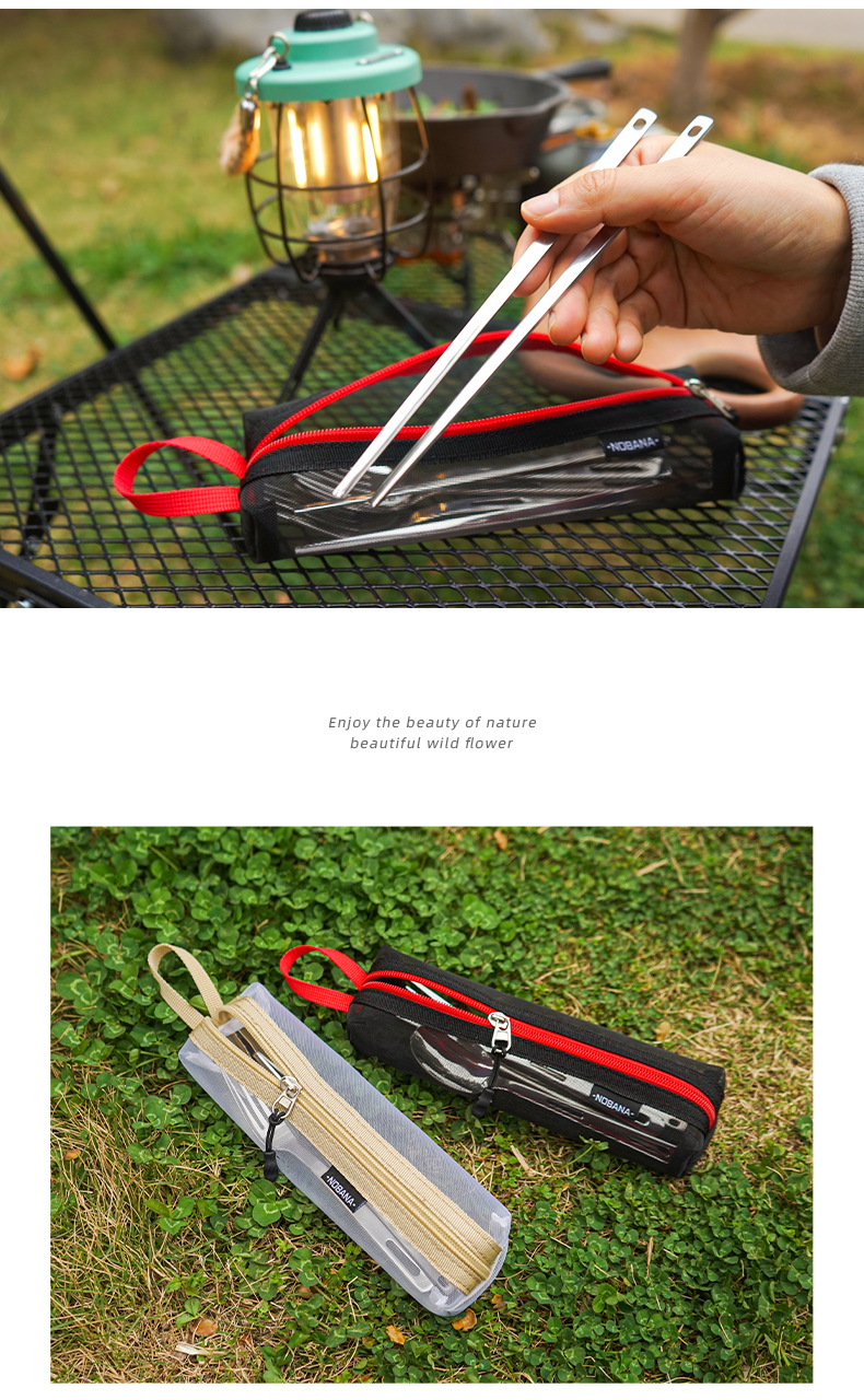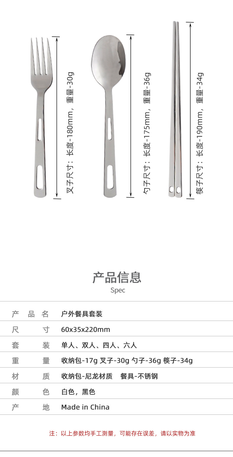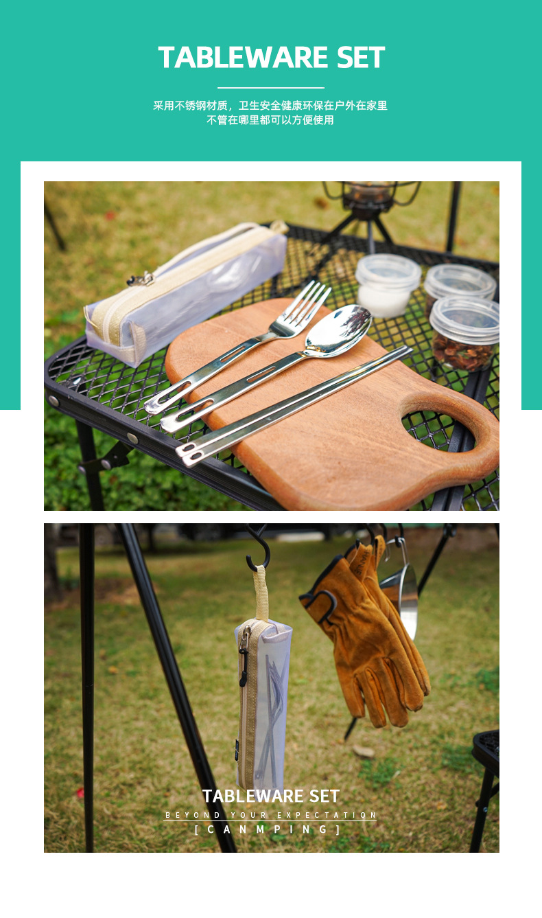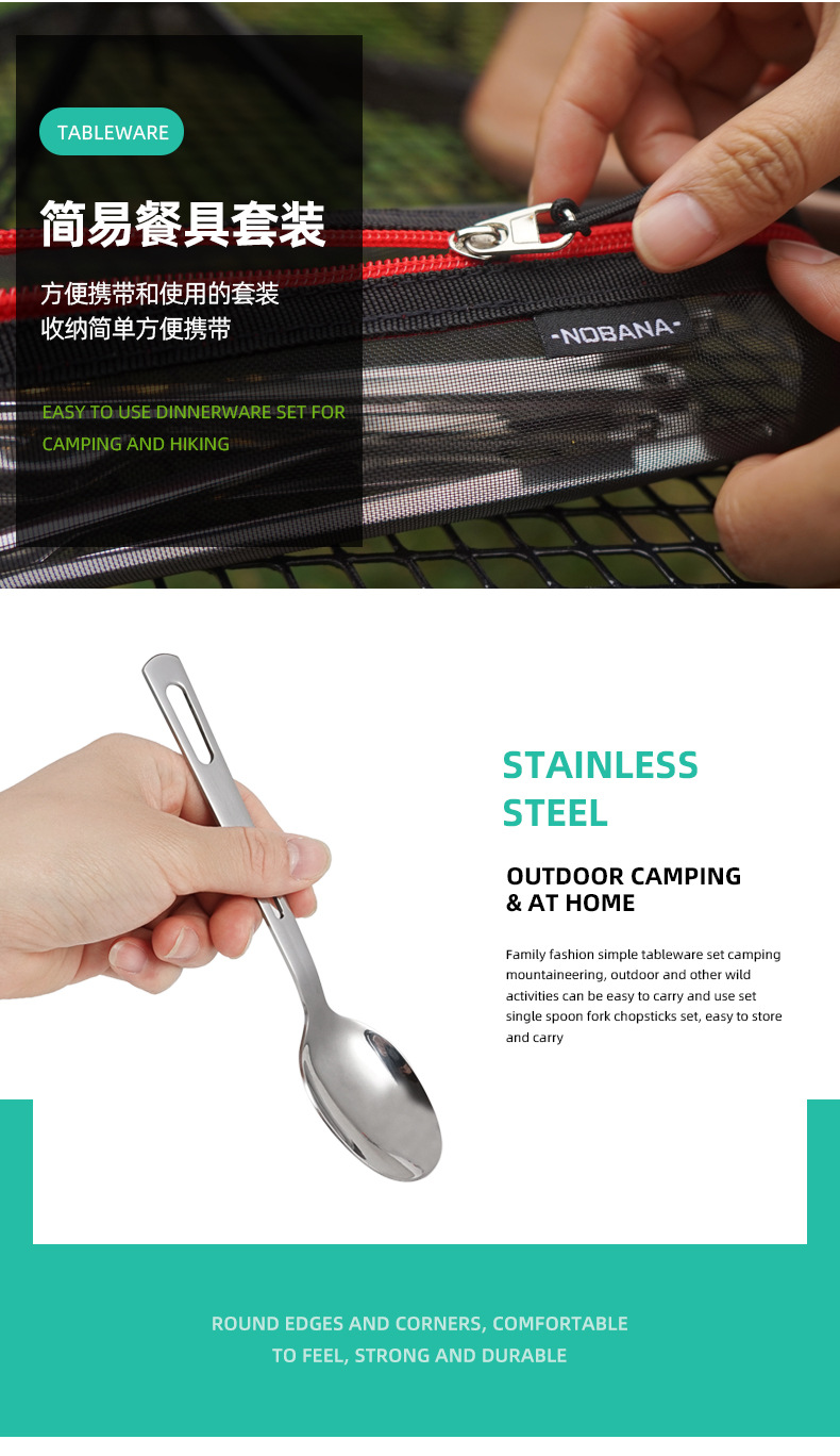 야외 스테인레스 스틸 식기 단일 다중 인용 포크 스푼 젓가락 캠핑 하이킹 낚시 피크닉 휴대용 세트