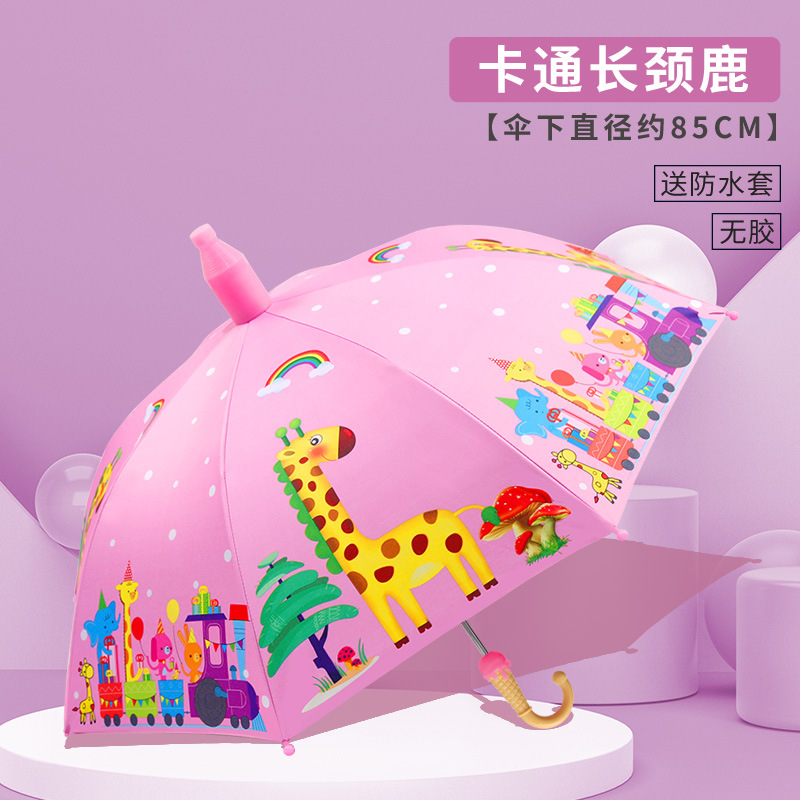 어린이 우산 만화 완전 자동 초등학교 어린이 유치원 아기 검은 고무 자외선 차단제와 비 이중 목적 어린이 긴 손잡이 우산