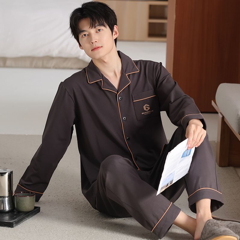 다양한 면화 남성 잠옷 봄과 가을 긴 소매 플러스 사이즈 얇은 가을과 겨울은 가정 의류 밖에서 착용 할 수 있습니다 세트스토어 가기