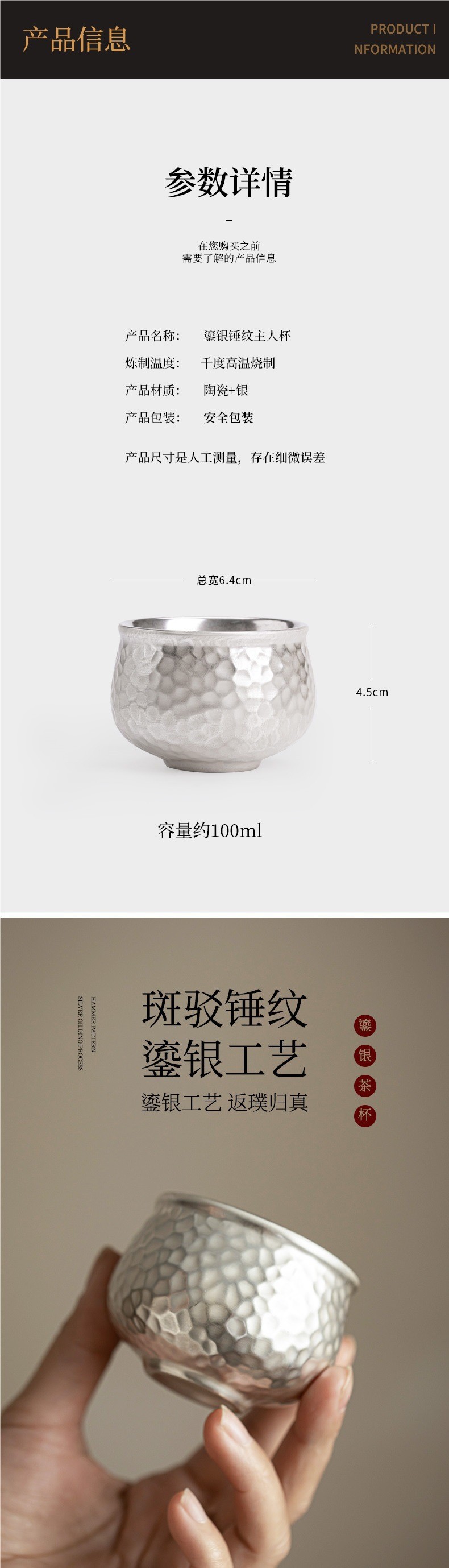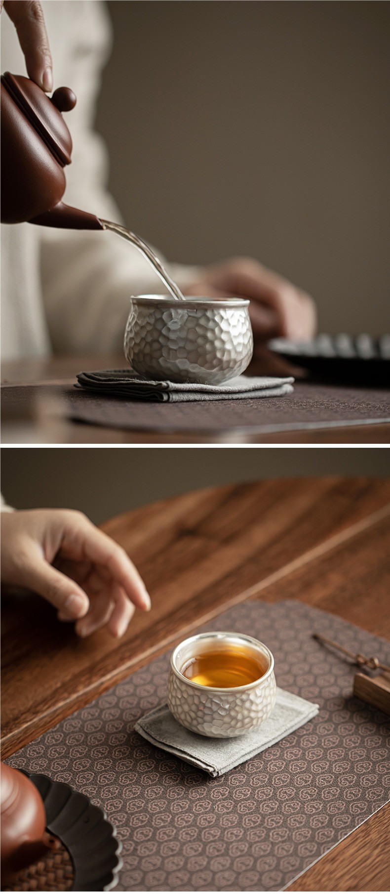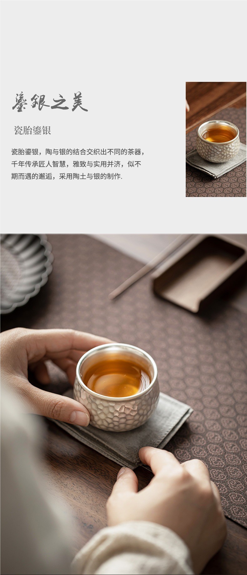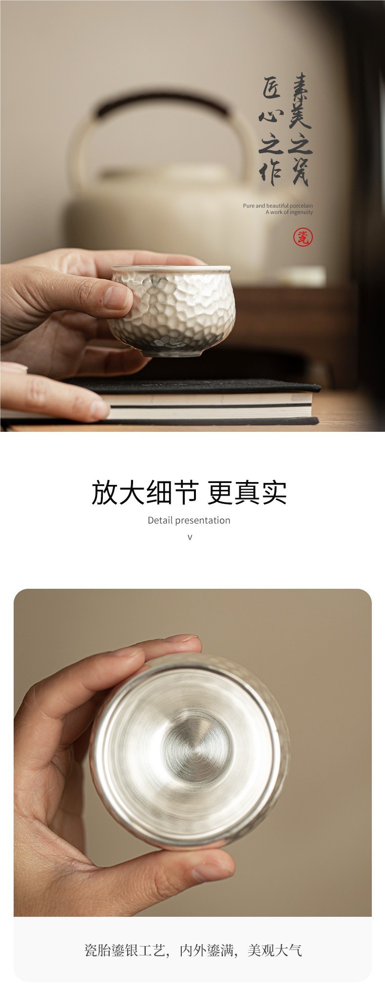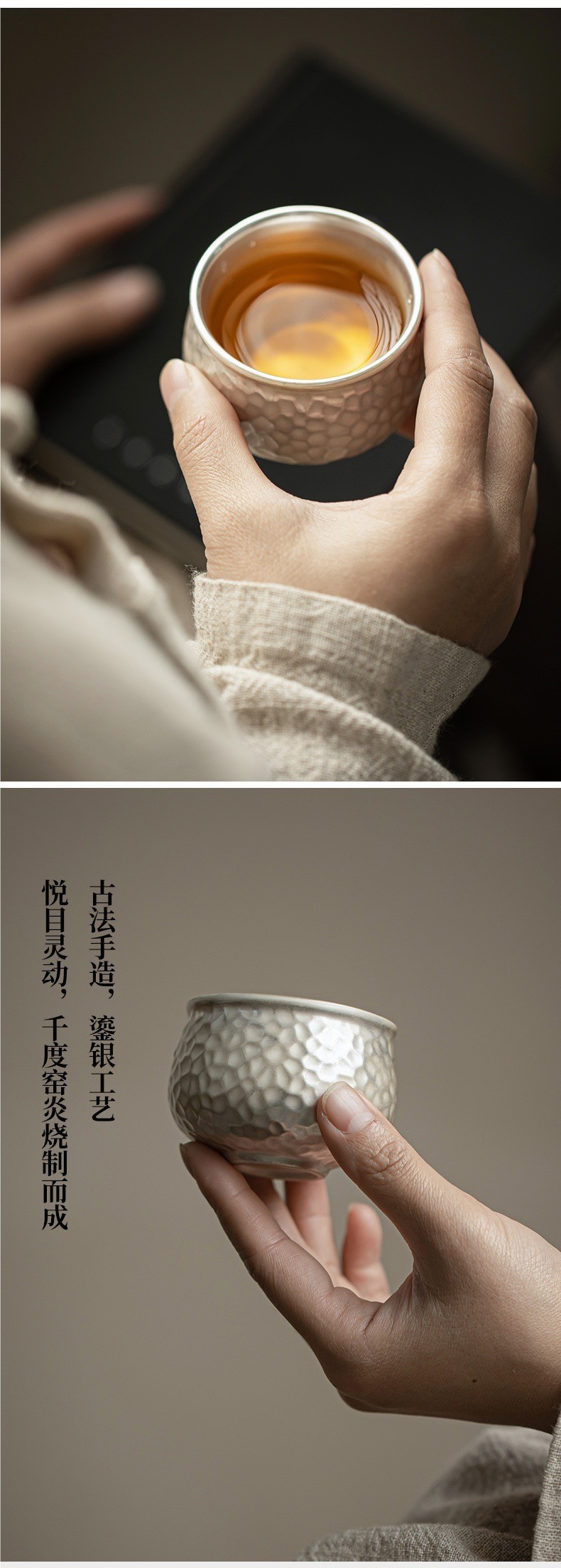빈티지 라이트 럭셔리 실버 도금 망치 마스터 컵 Xi 시 실버 도금 컵 쿵푸 차 세트 999 실버 도금 찻잔 실버 컵