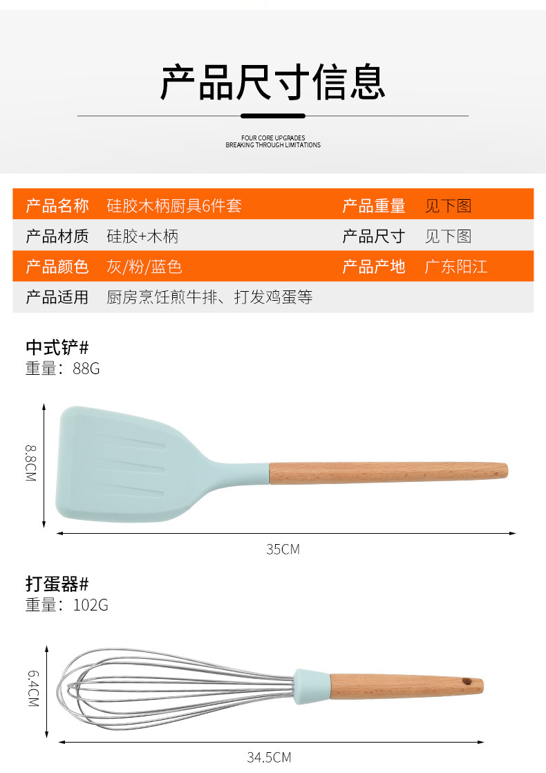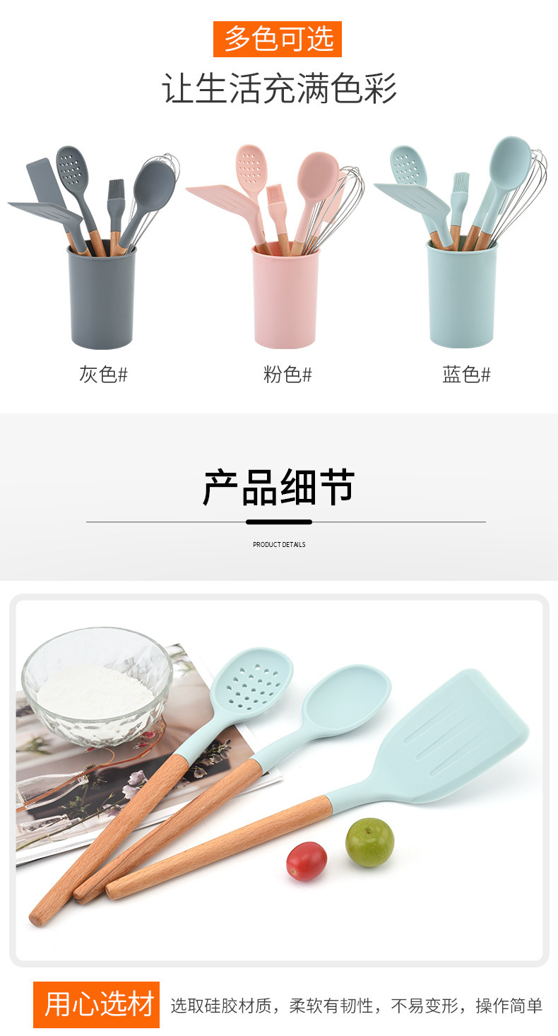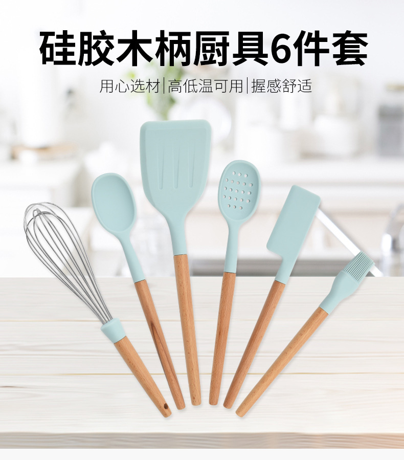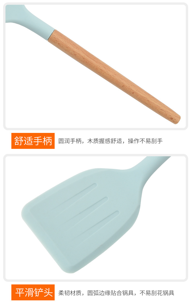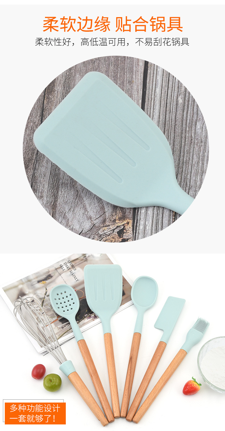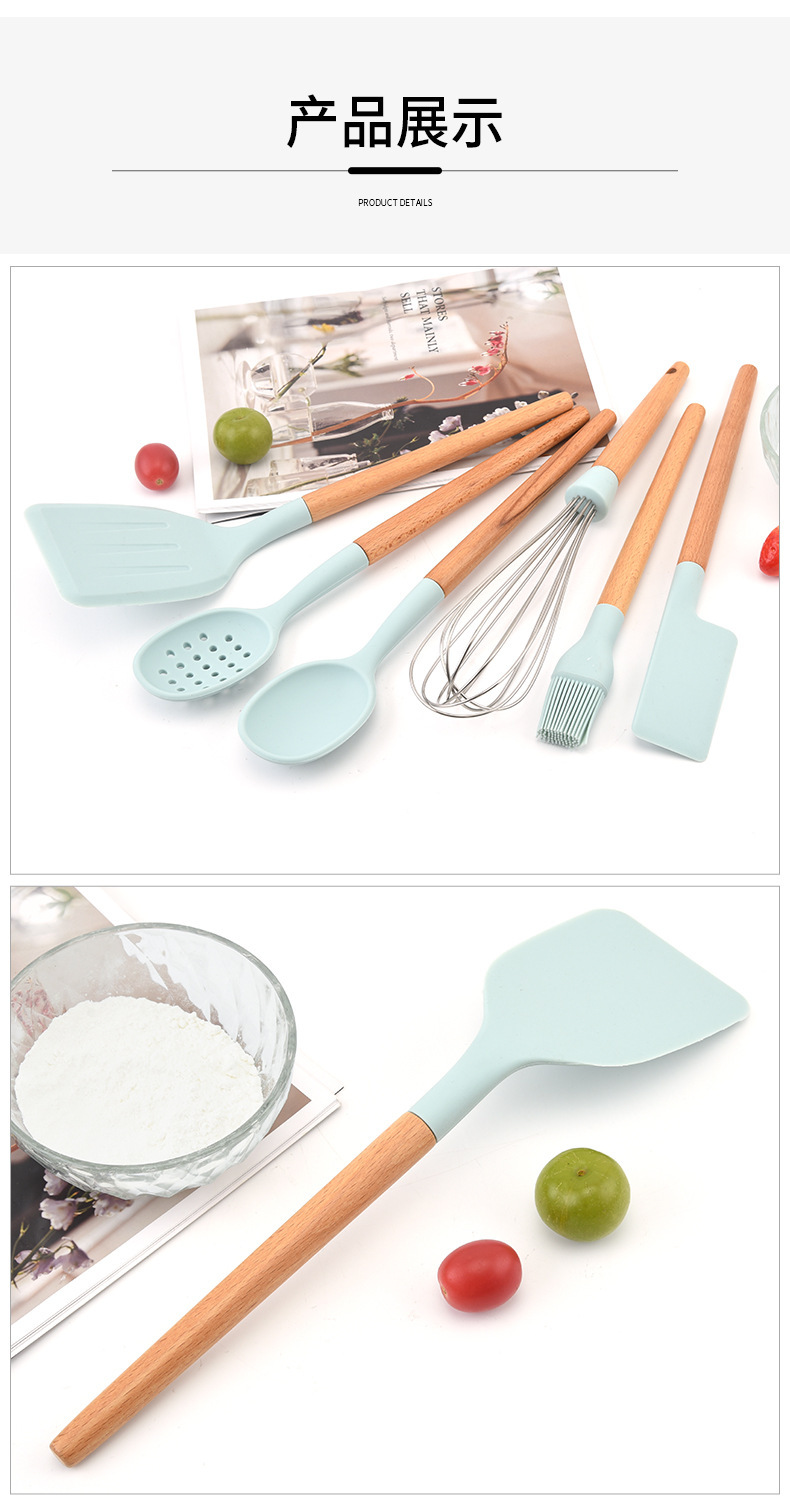 실리콘 나일론 스페이드 스푼 주방용품 나무 손잡이 고온 저항 논스틱 요리 스페이드 스푼 7 개 세트 스페이드 스푼 세트스토어 가기