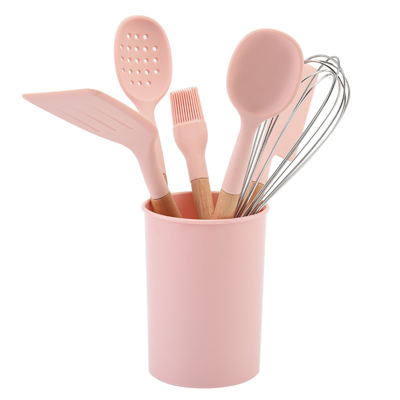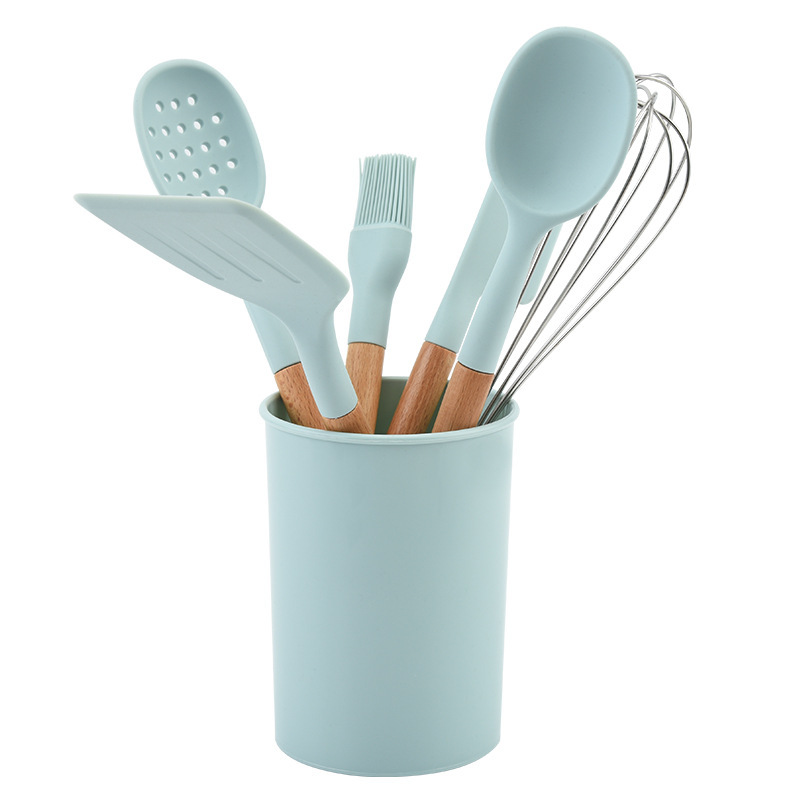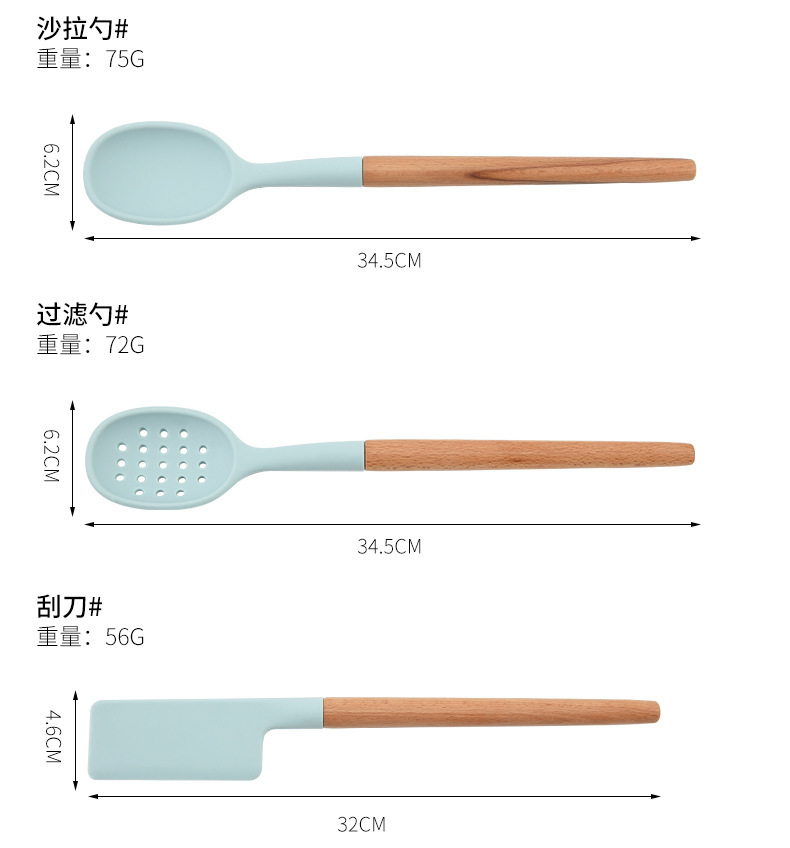 실리콘 나일론 스페이드 스푼 주방용품 나무 손잡이 고온 저항 논스틱 요리 스페이드 스푼 7 개 세트 스페이드 스푼 세트