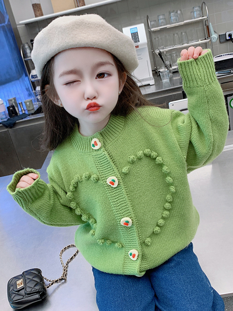 여아 니트 가디건 아동용 스위트 러브 스웨터 코트 베이비의 서양식 탑 아동용 패셔너블한 봄 가을 착용