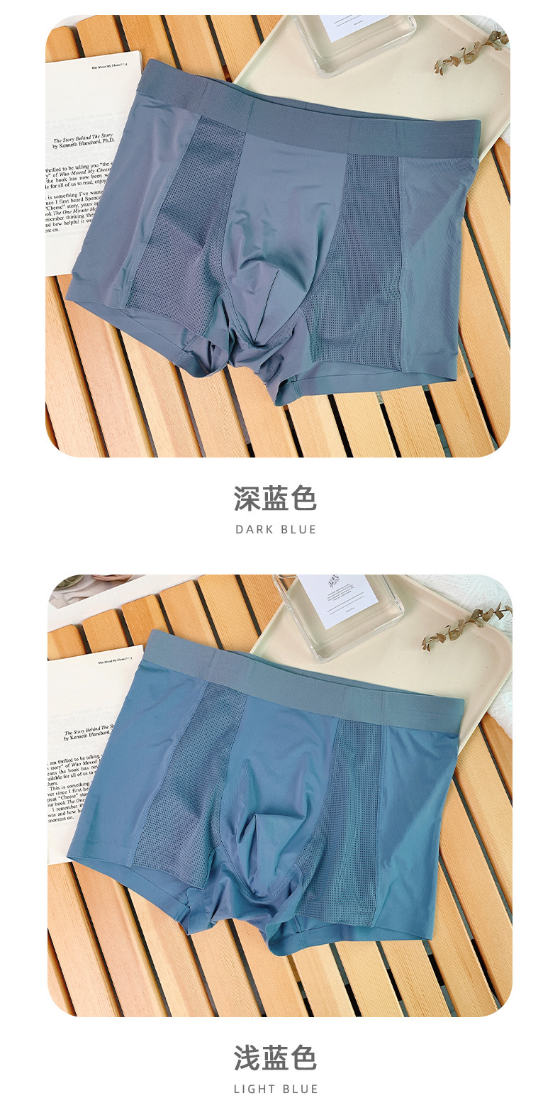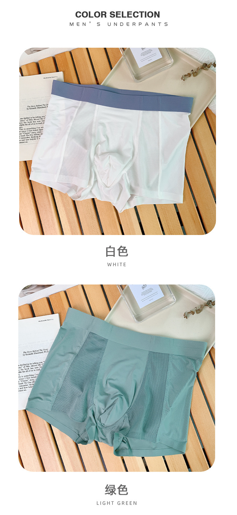 원활한 호흡 바지 속옷 남성용 아이스 실크 에어컨 바지 여름 미드 웨이스트 천 홀 통기성 복서 팬티 쿨 센스 복서 바지