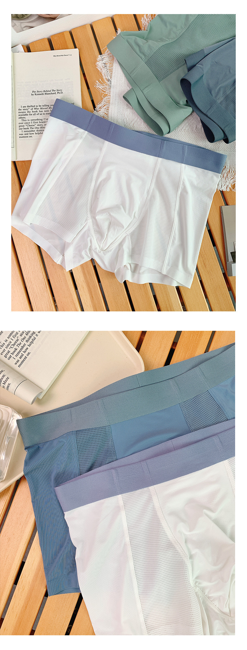 원활한 호흡 바지 속옷 남성용 아이스 실크 에어컨 바지 여름 미드 웨이스트 천 홀 통기성 복서 팬티 쿨 센스 복서 바지스토어 가기