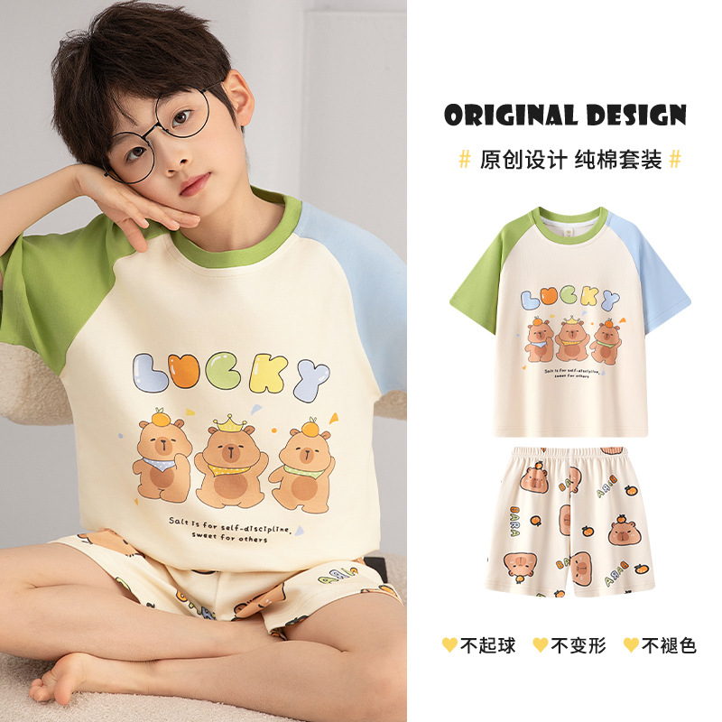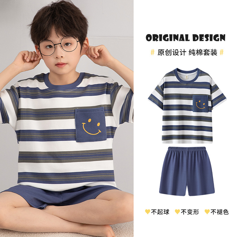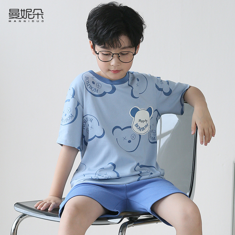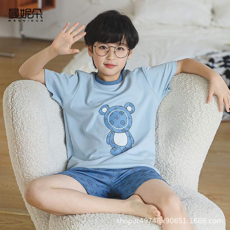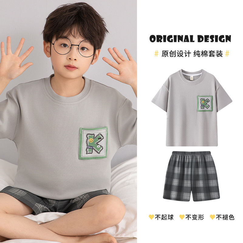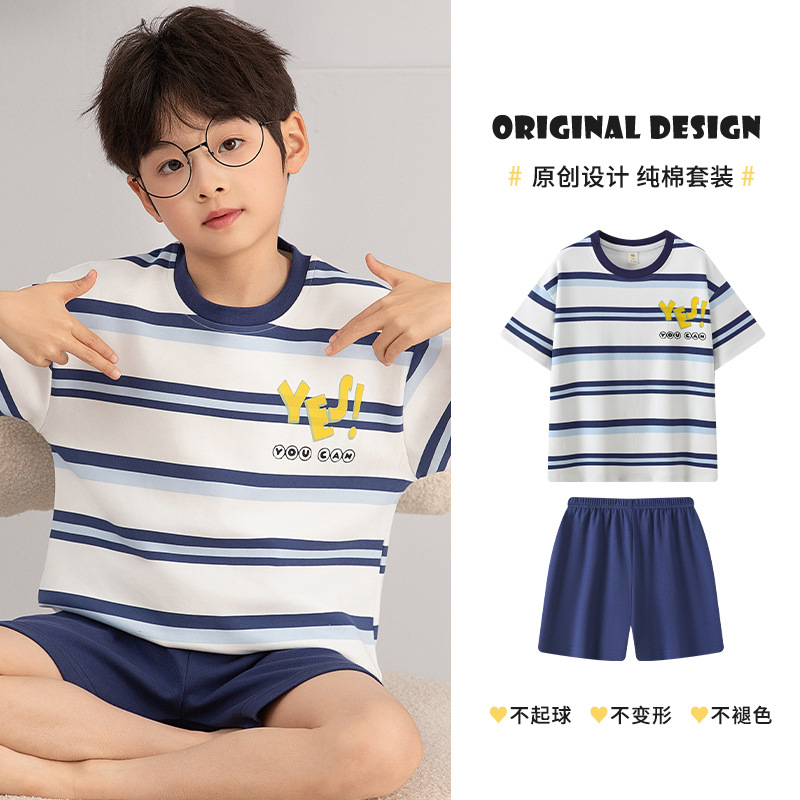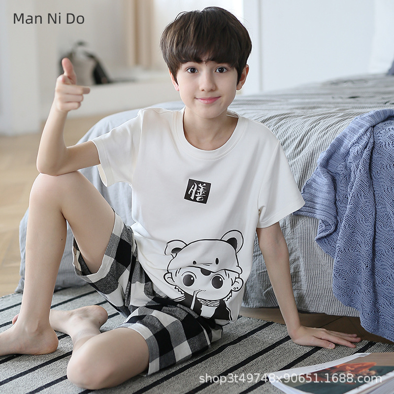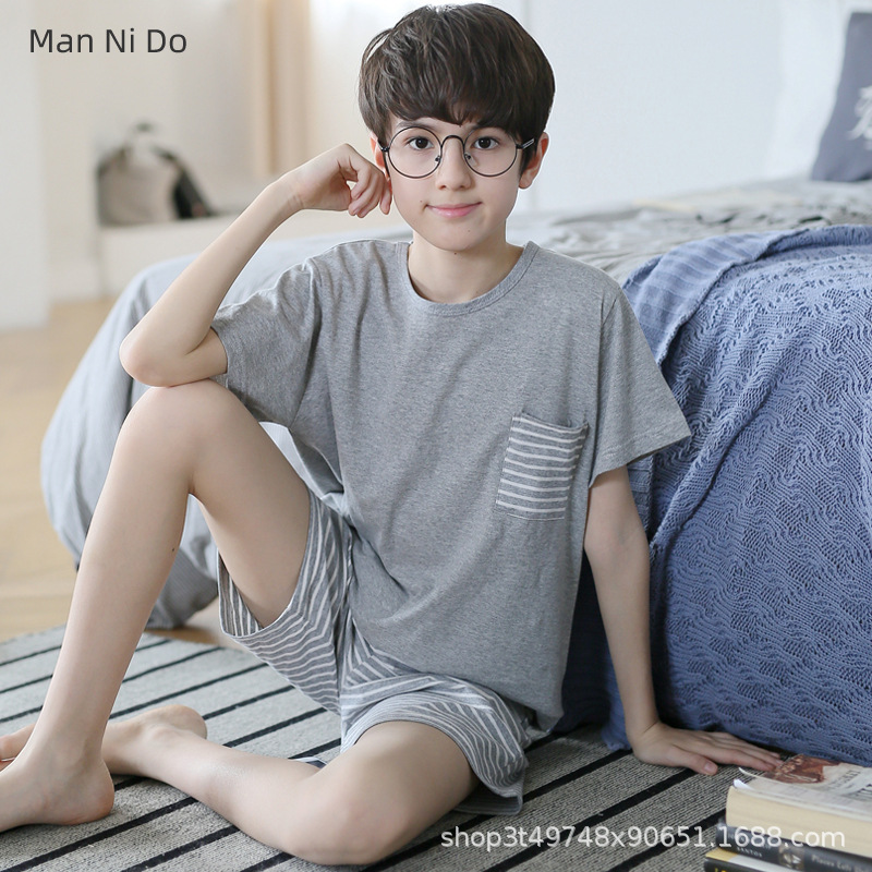 소년 잠옷 여름 얇은 순면 십대 여름 순면 세트 소년 큰 어린이 반팔 어린이 가정복스토어 가기