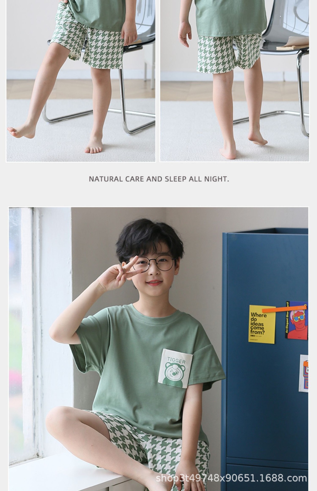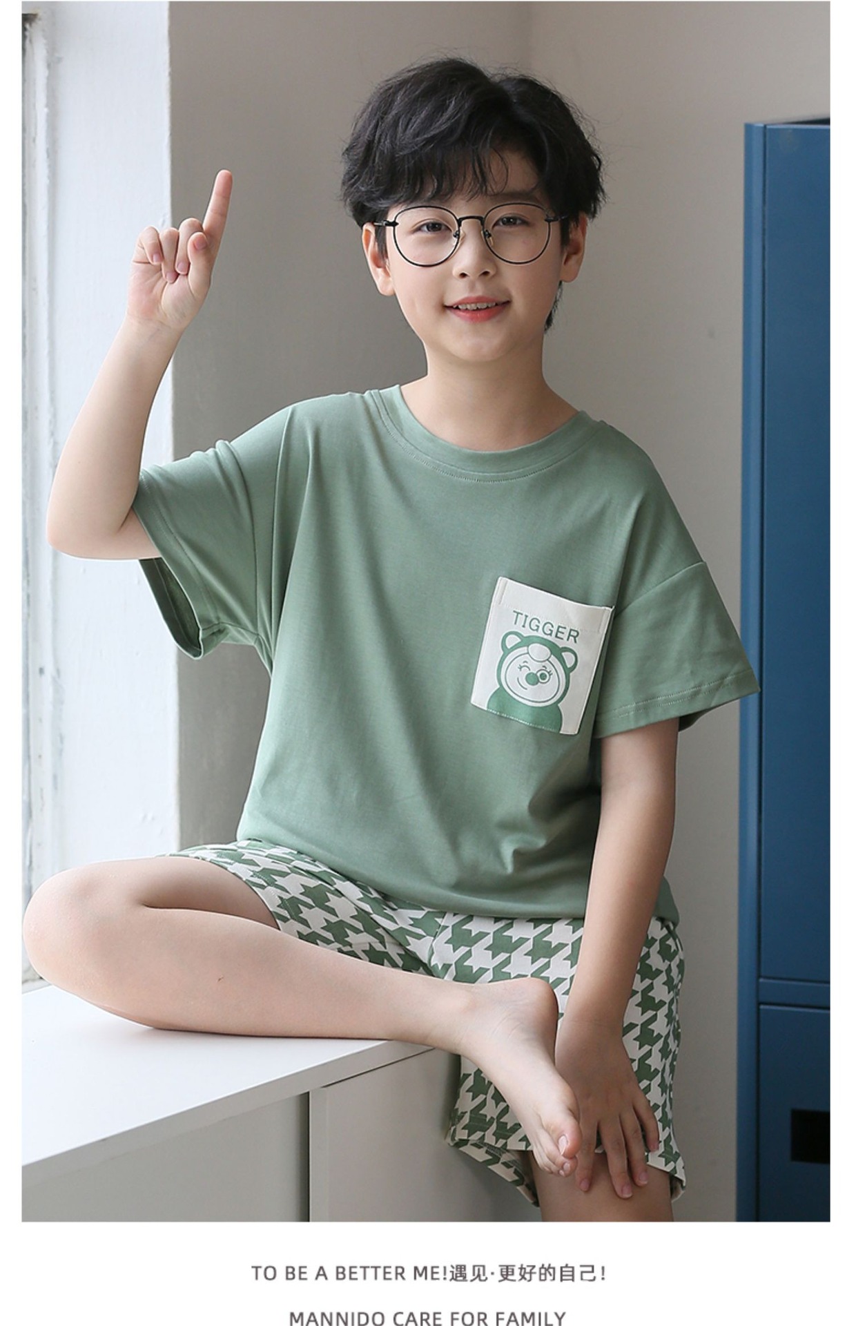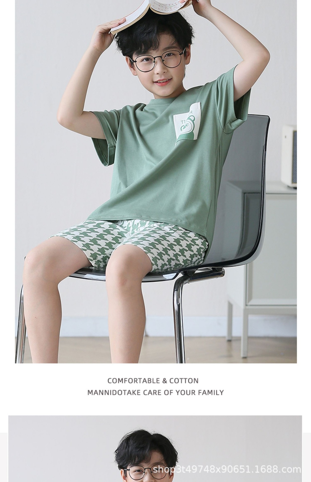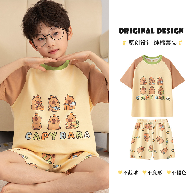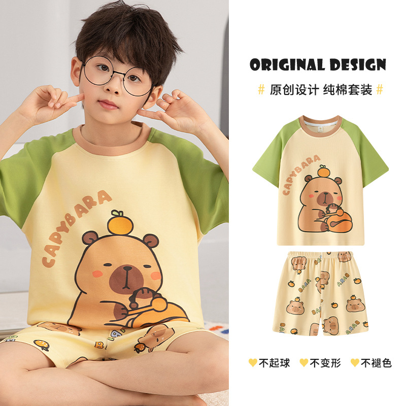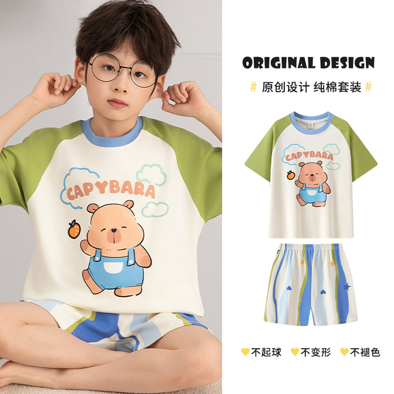 소년 잠옷 여름 얇은 순면 십대 여름 순면 세트 소년 큰 어린이 반팔 어린이 가정복스토어 가기