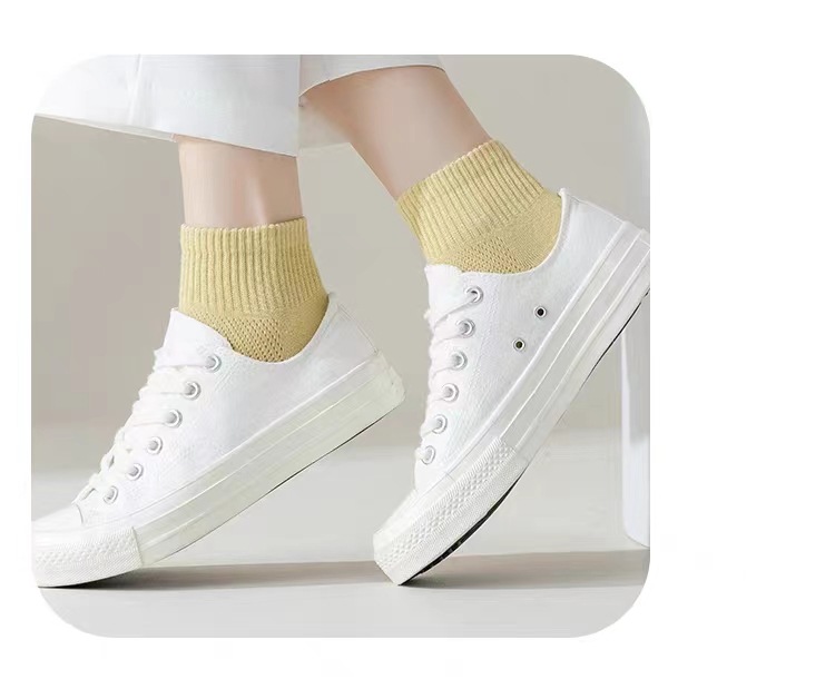 양말 소녀 봄과 여름 얇은 중간 길이 양말 마카롱 컬러 단색 통기성 메쉬 편안한 모든 경기 여성 여름