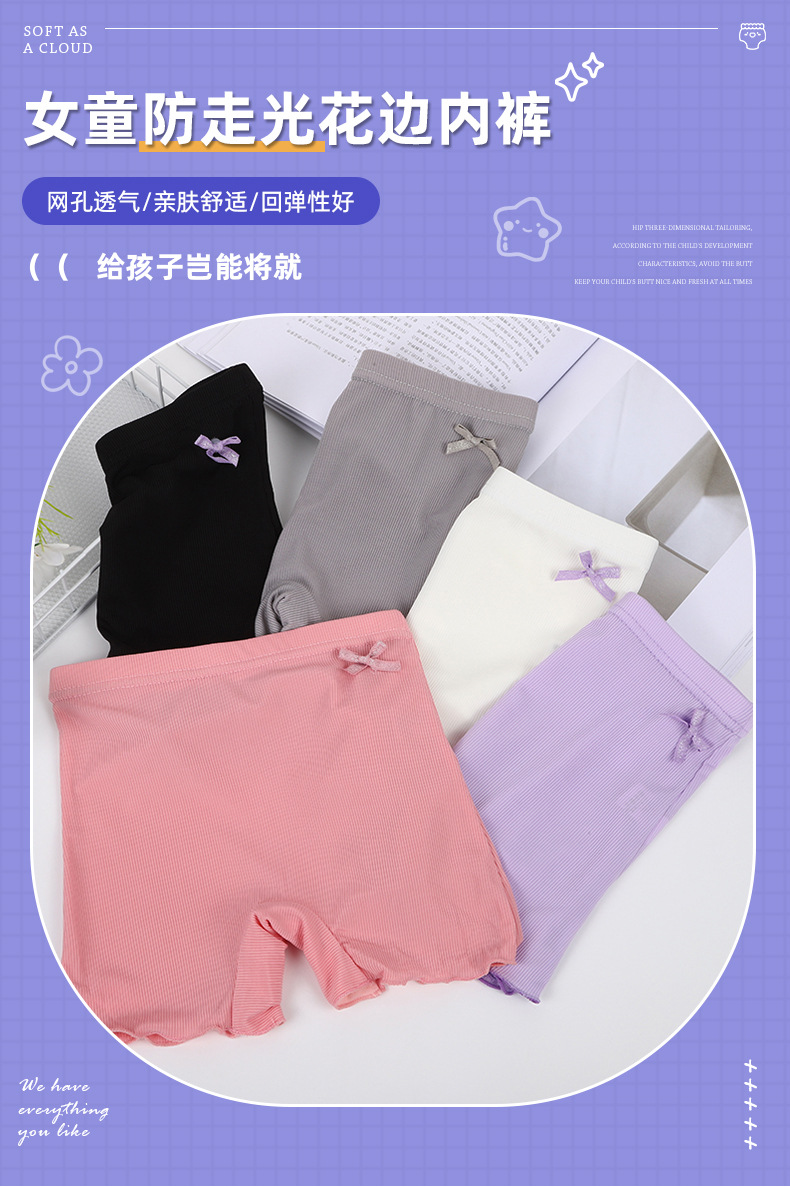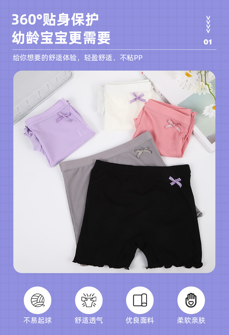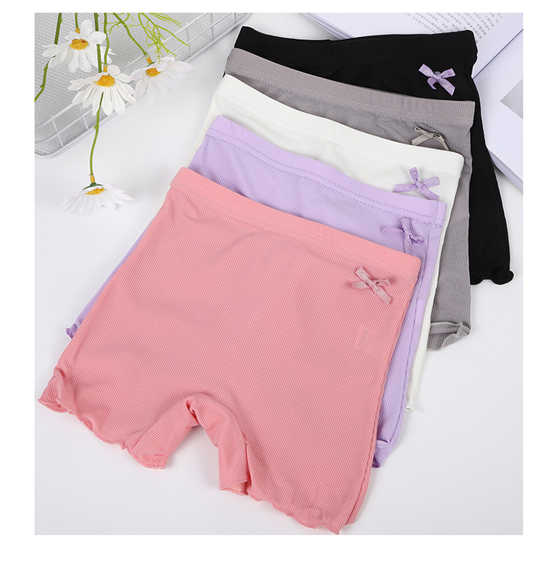 신제품 여아 노출 방지 레깅스, 통기성이 좋고 편안한 리본 단색 여아 복서 팬티, 신축성 있는 복서 팬티스토어 가기