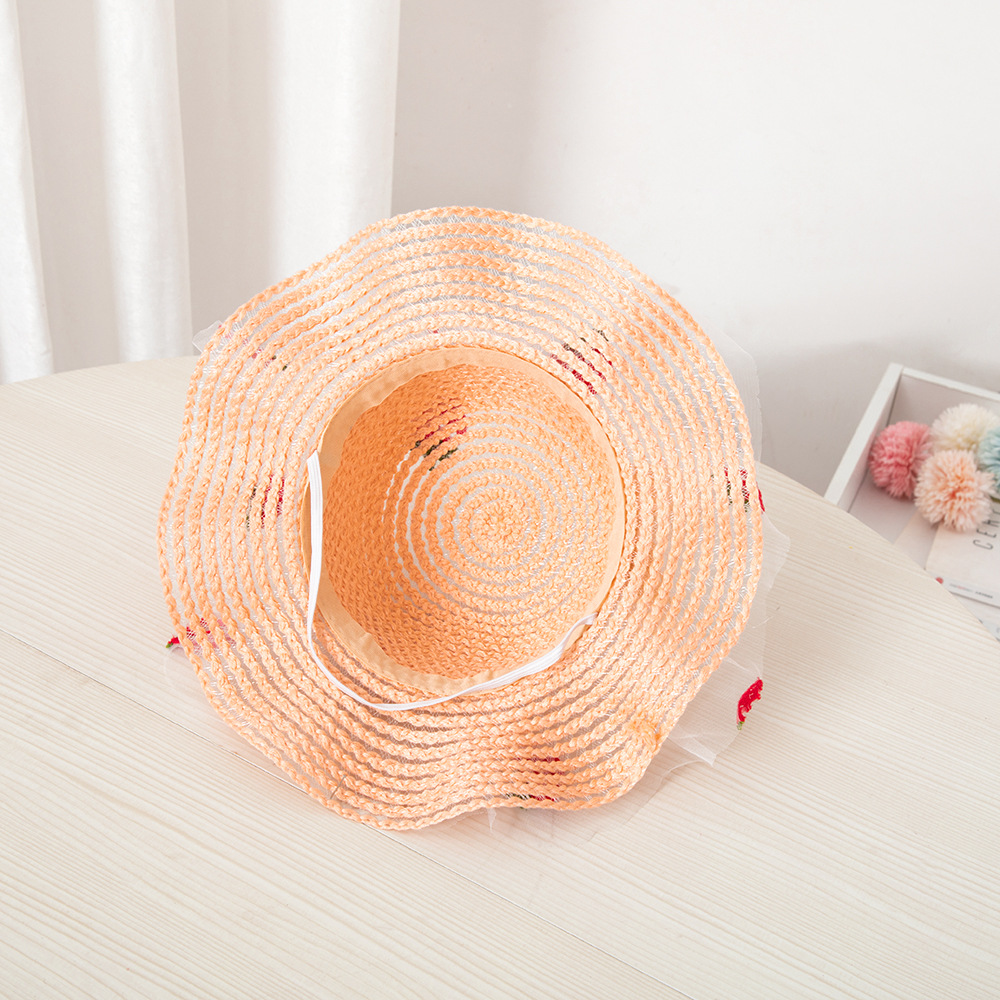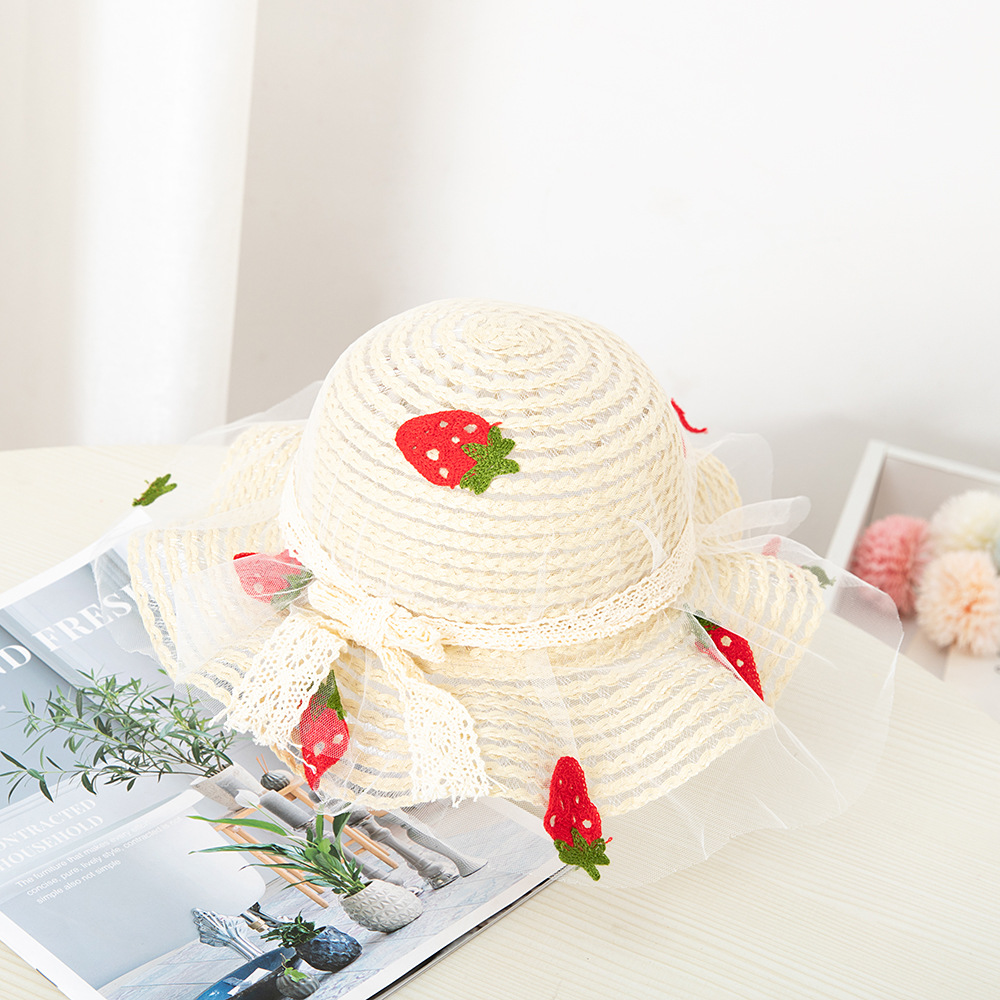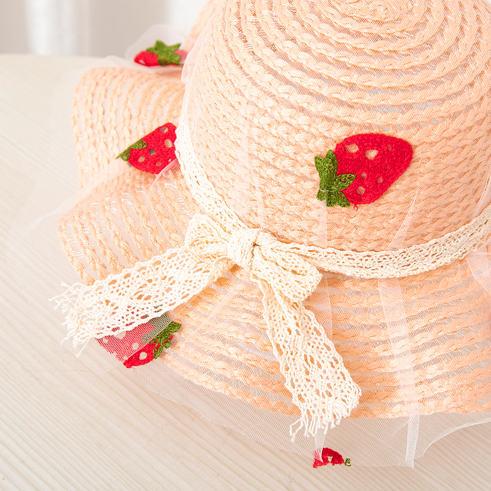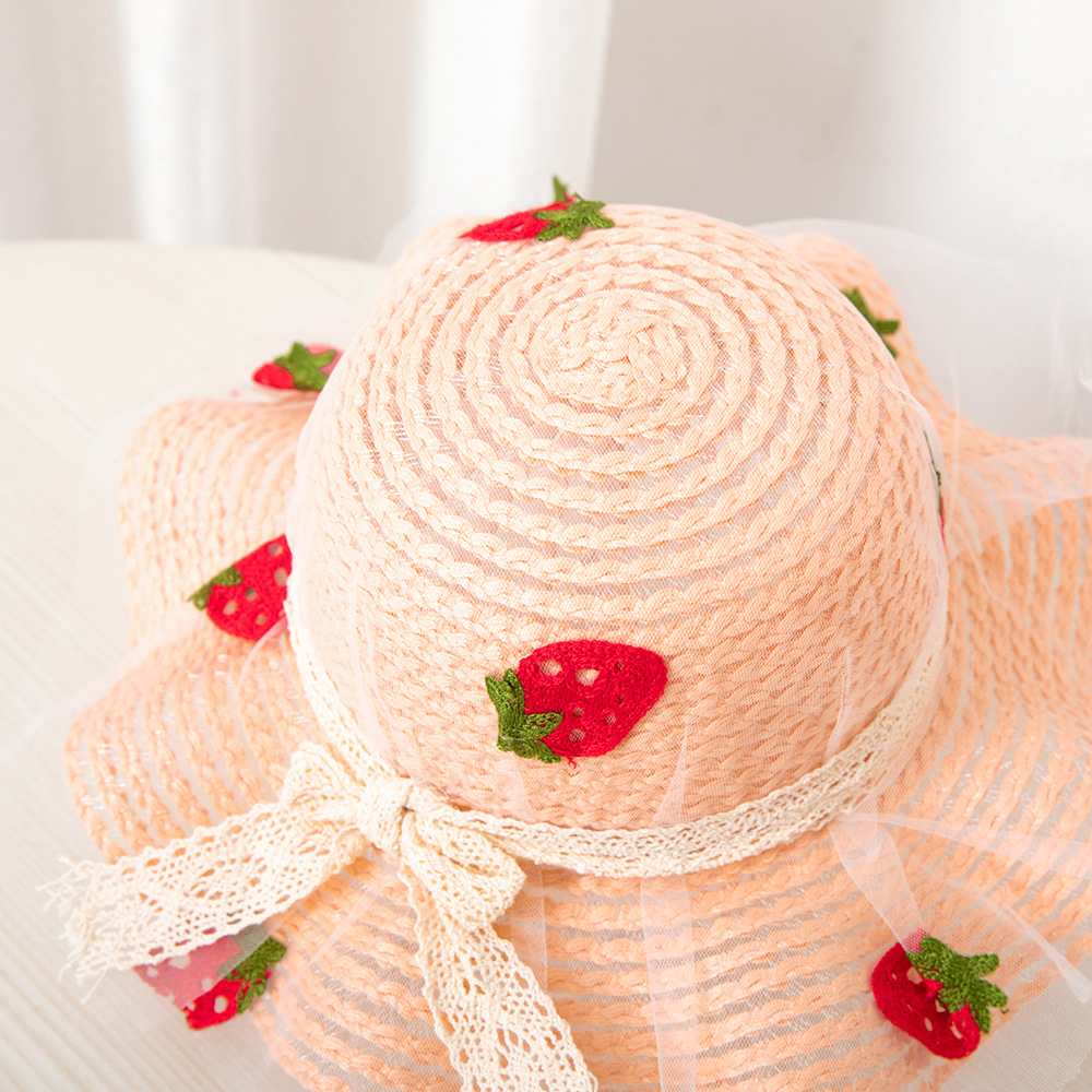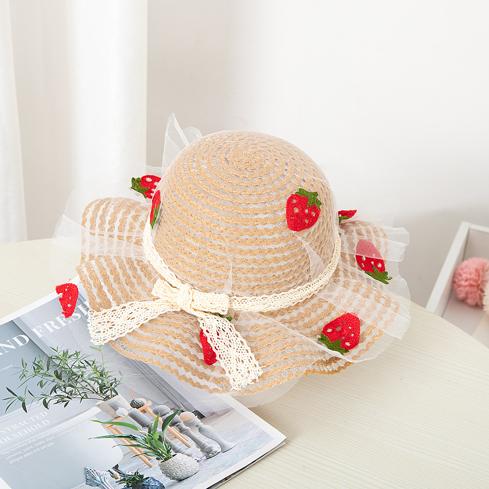 여름 어린이 자외선 차단제 모자 소녀 아기 귀여운 태양 모자 딸기 메쉬 밀짚 모자 큰 챙 해변 태양 모자