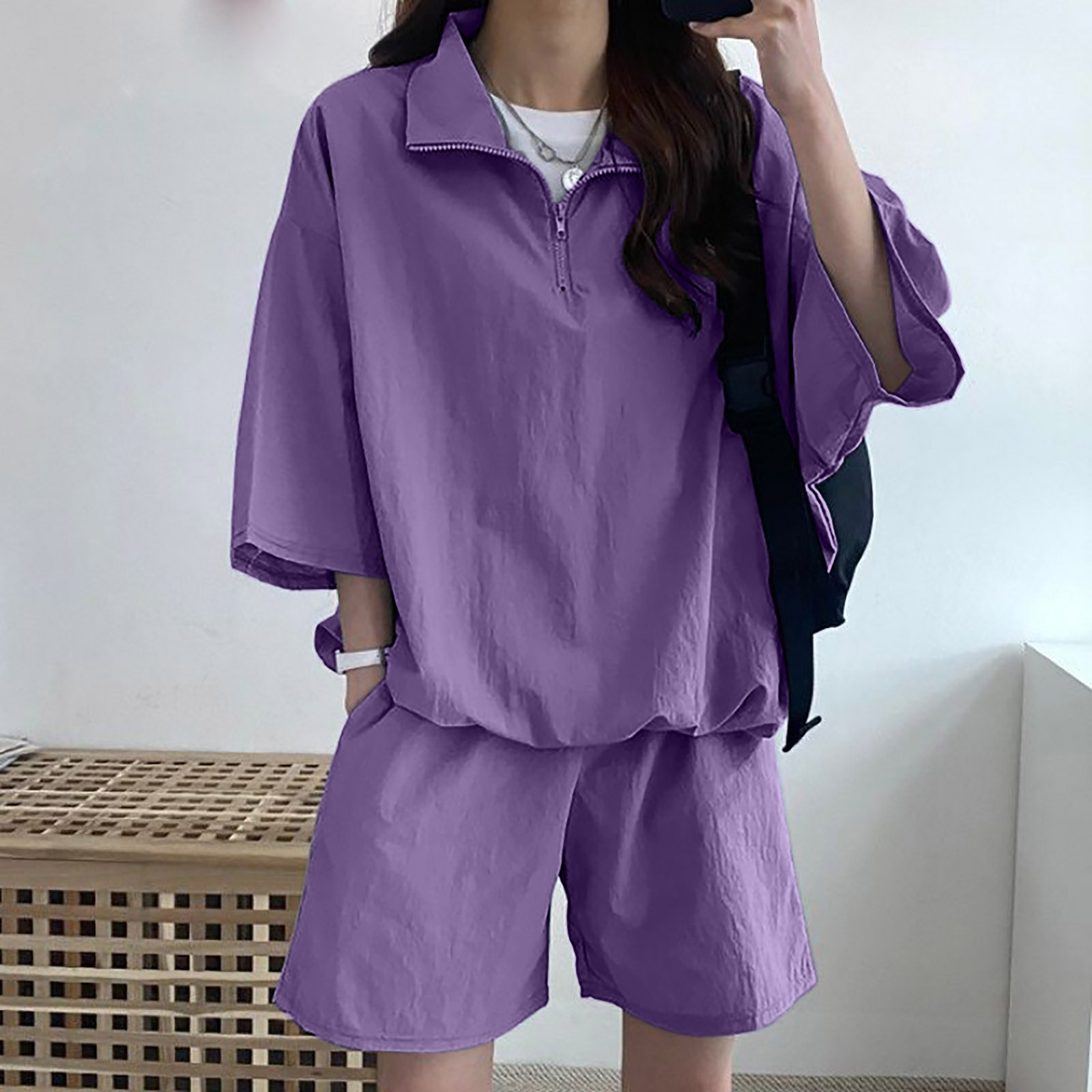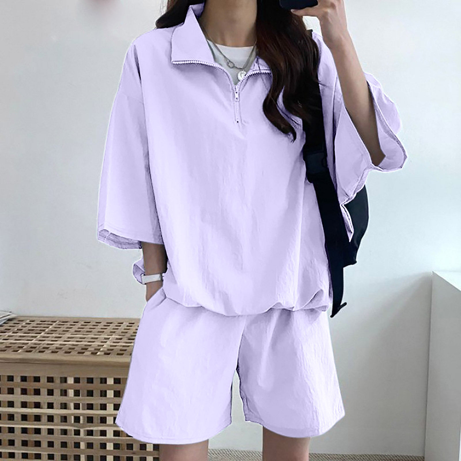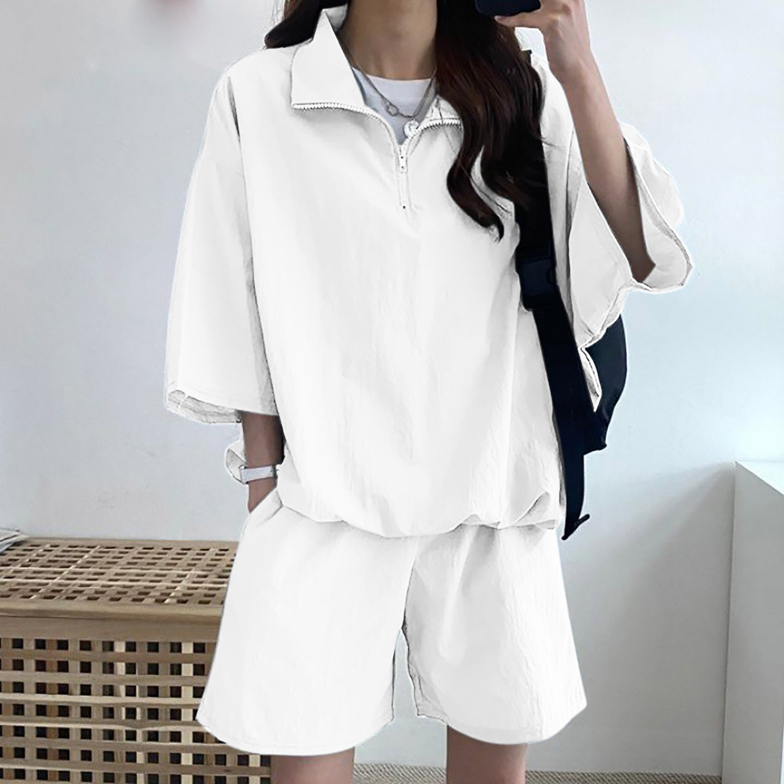 한국 세련된 스포츠 캐주얼 폴로 셔츠 세트 여자 2025 여름 새로운 느슨한 지퍼 우아한 투피스 세트
