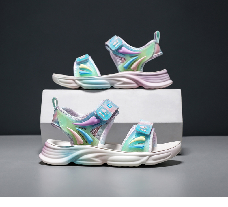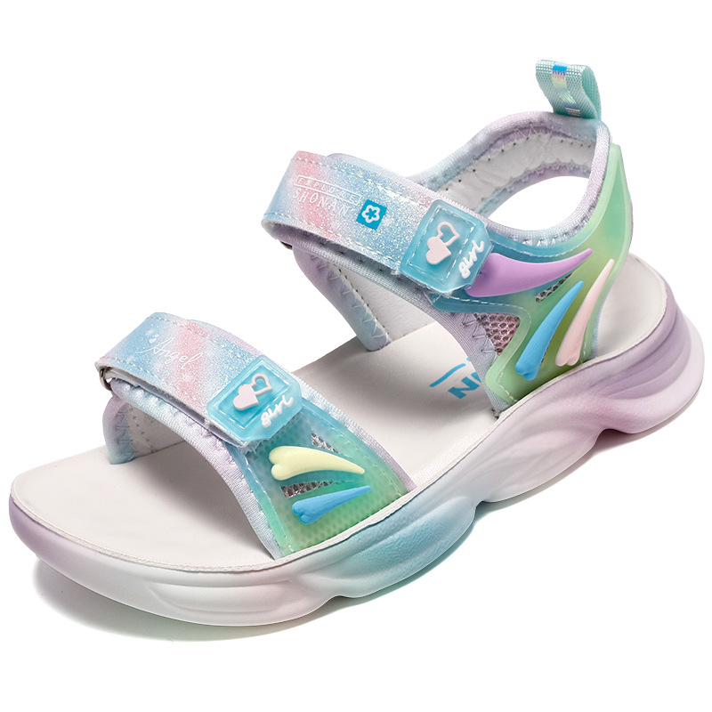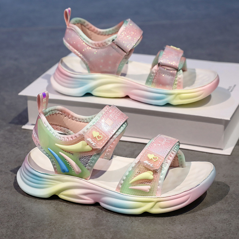 여아 샌들 2024 여름 신상 아동용 부드러운 밑창 여아용 핑크 공주풍 초등학생 비치 샌들