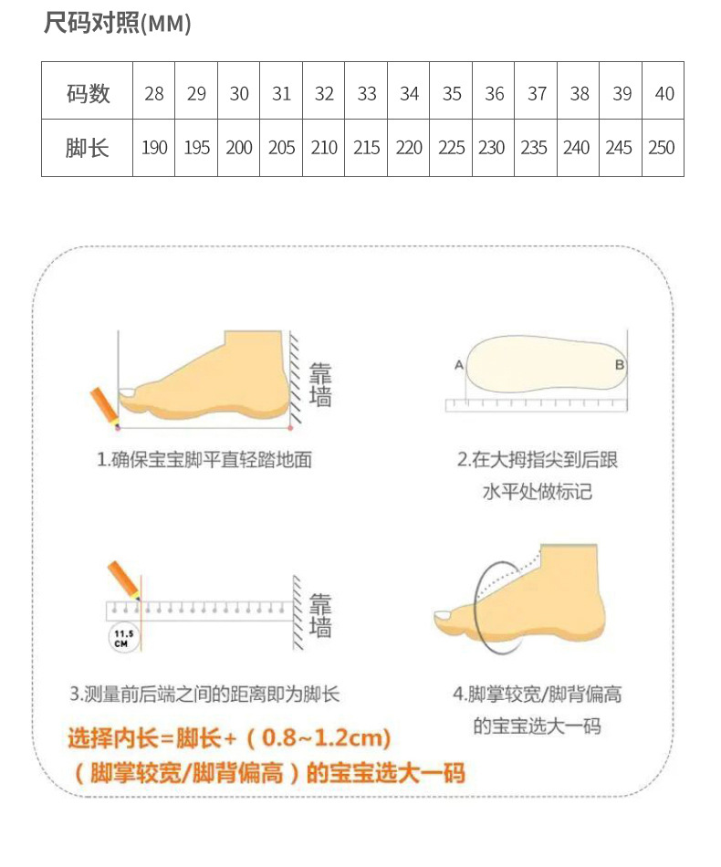 标准鞋码的表格20