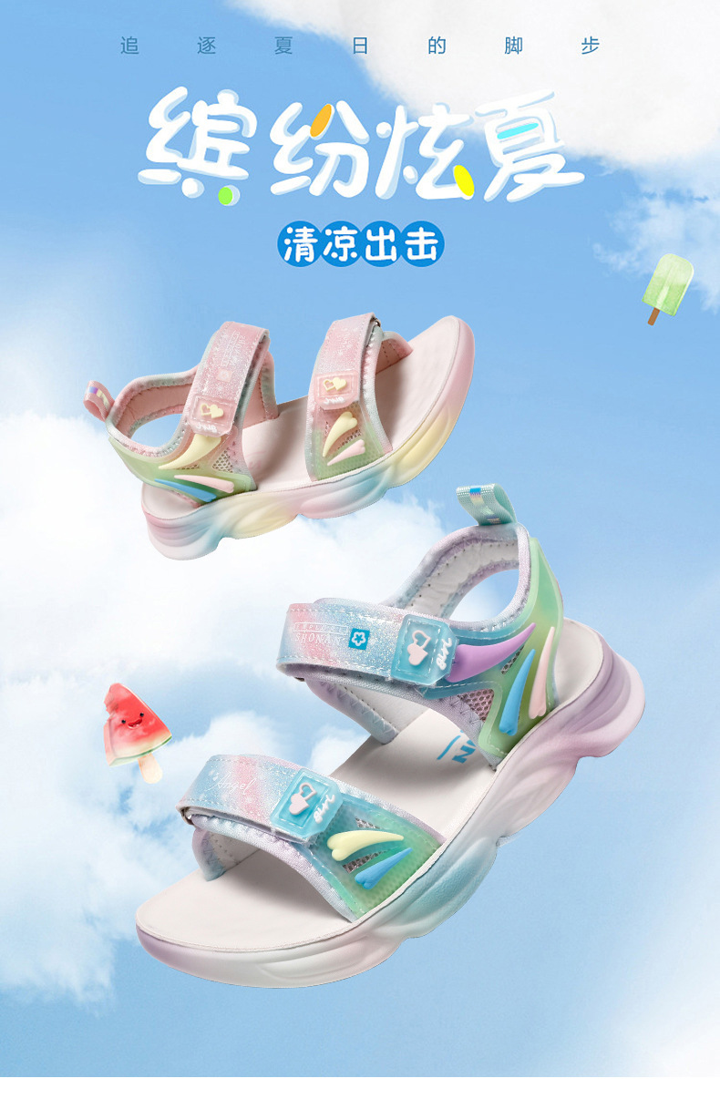 여아 샌들 2024 여름 신상 아동용 부드러운 밑창 여아용 핑크 공주풍 초등학생 비치 샌들스토어 가기