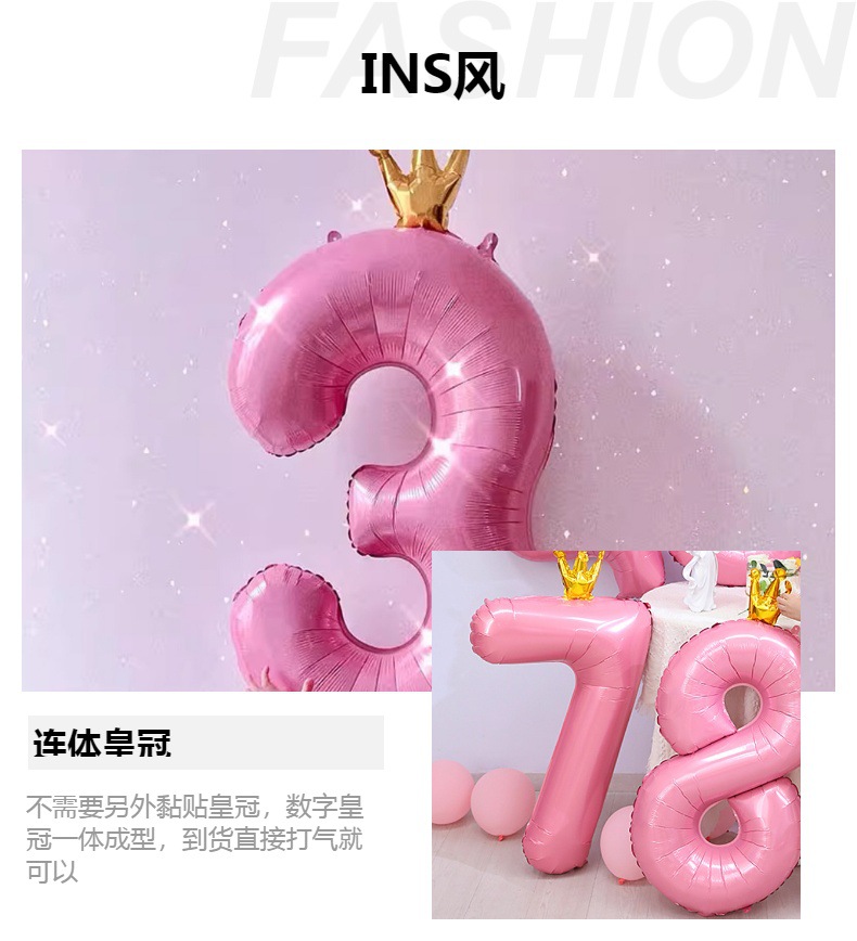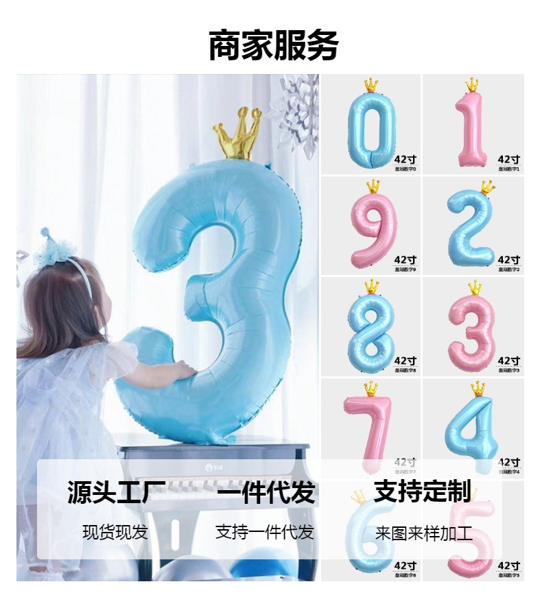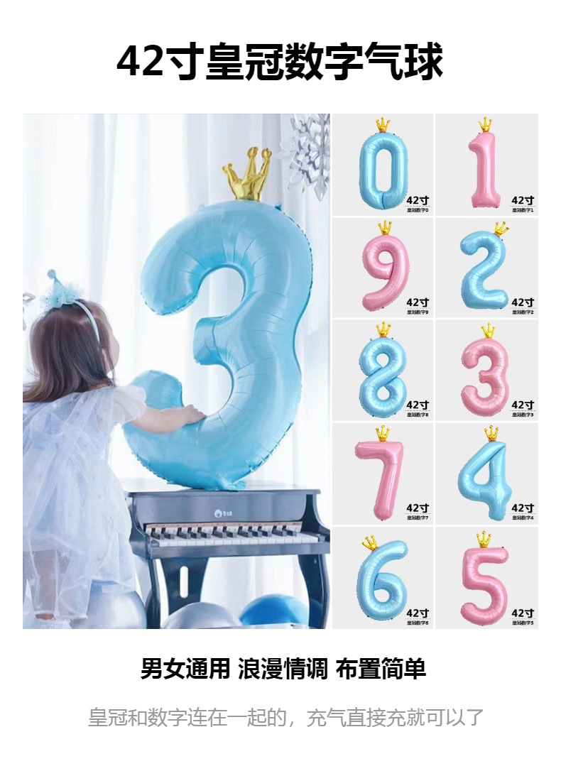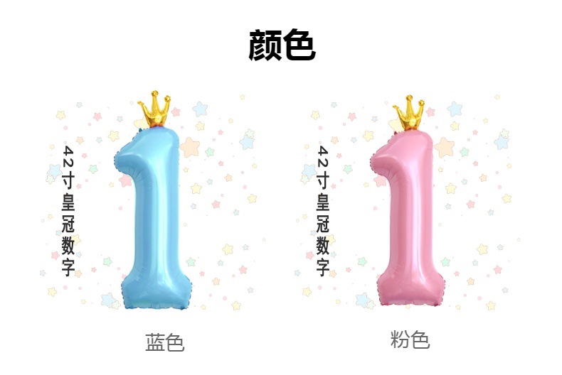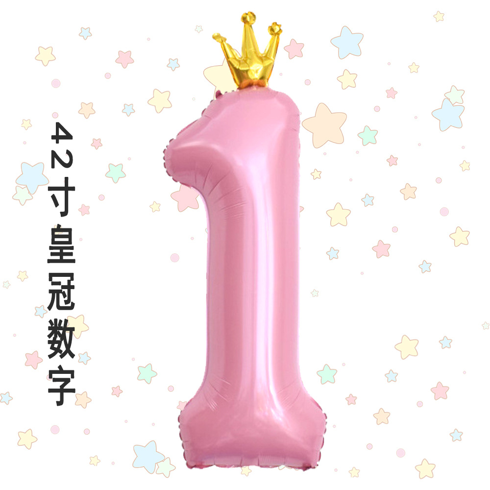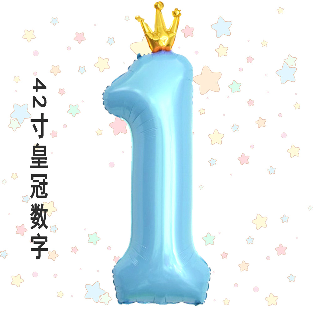 새로운 42 인치 대형 핑크 블루 크라운 디지털 풍선 어린이의 첫 번째 생일 파티 장식스토어 가기