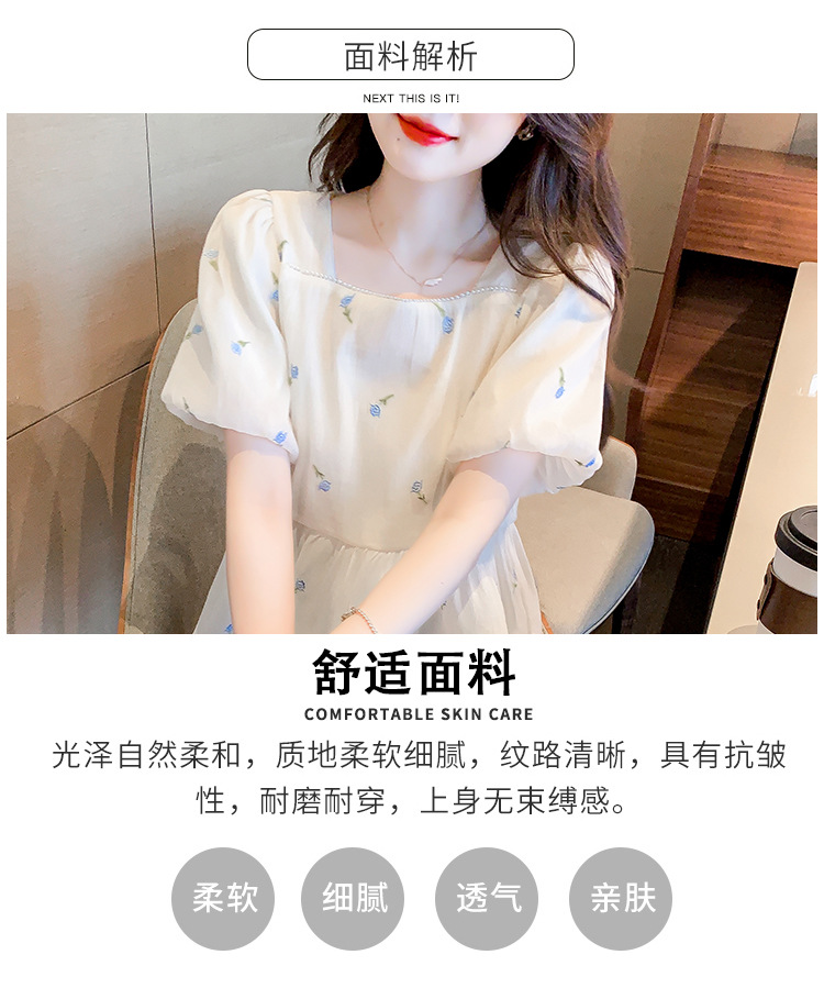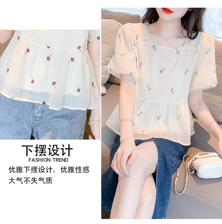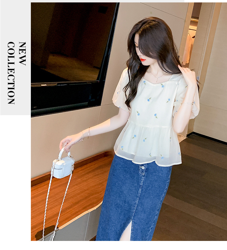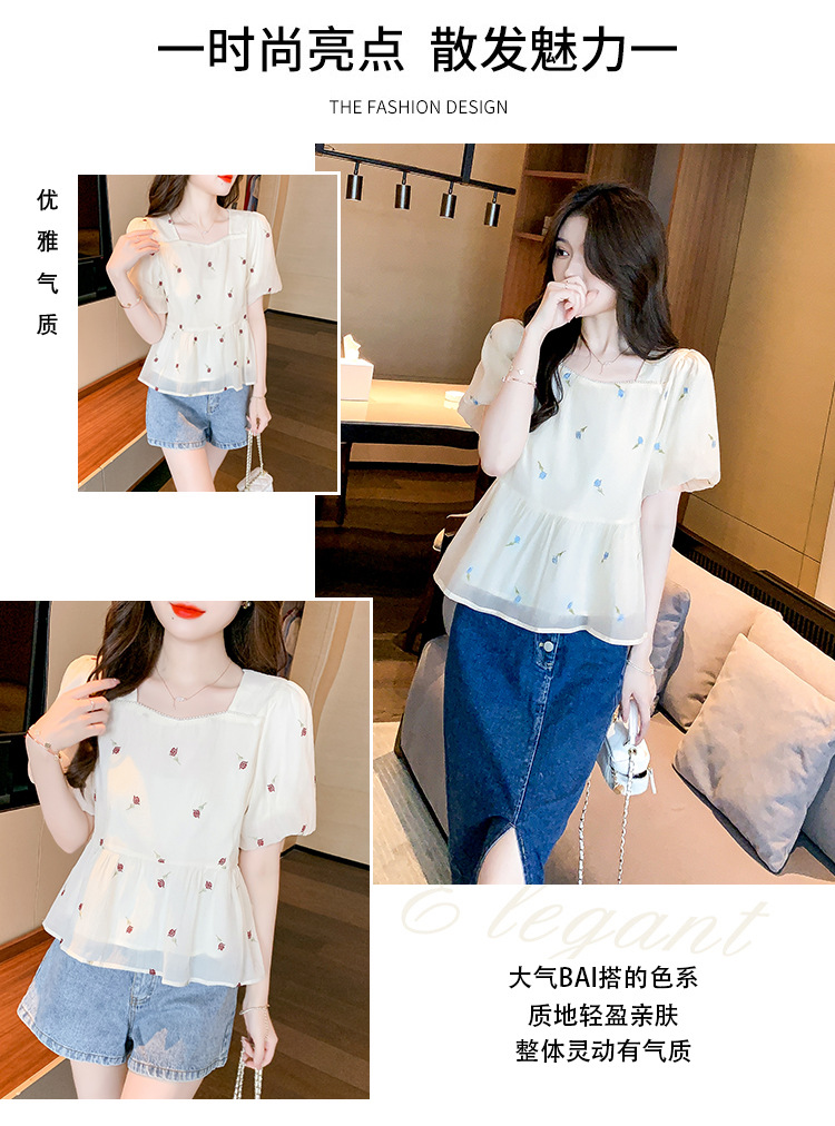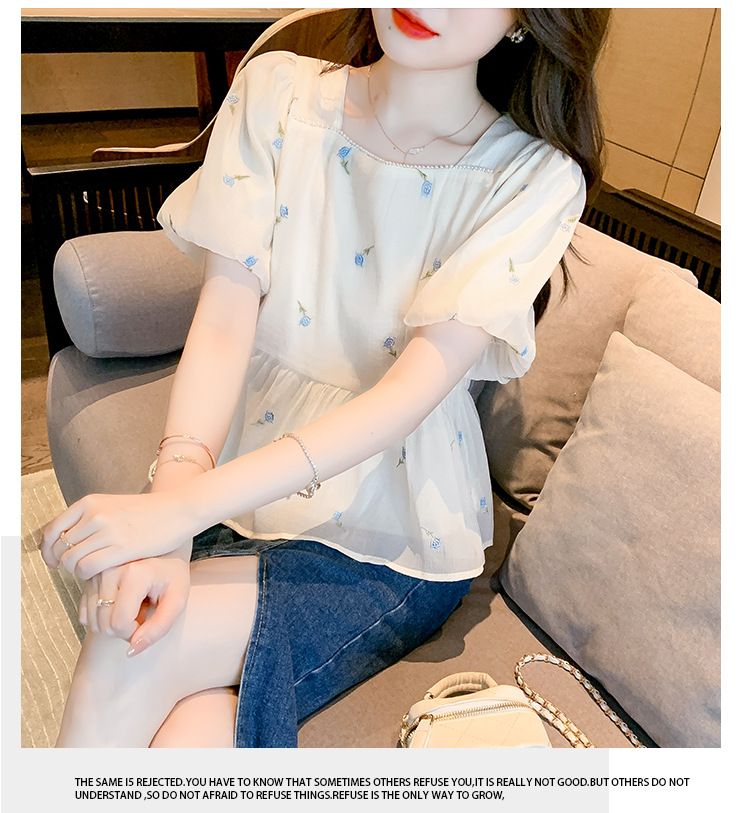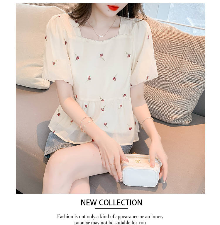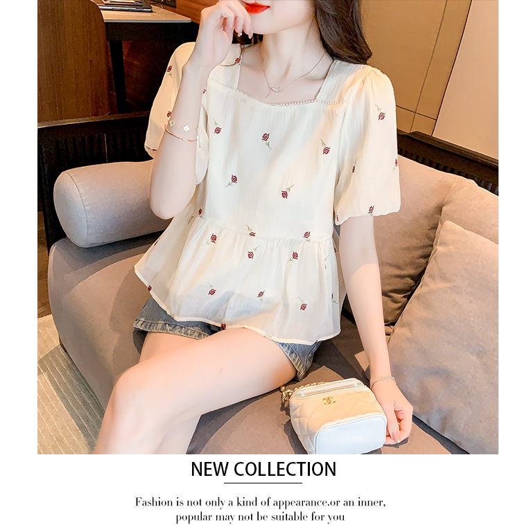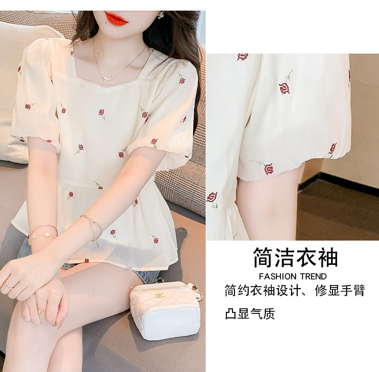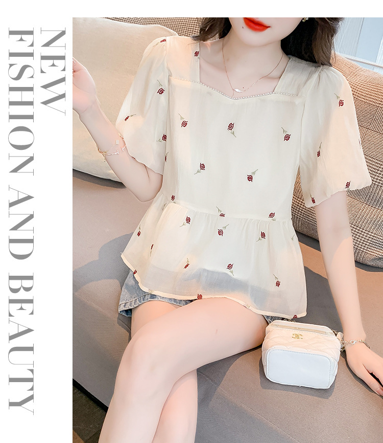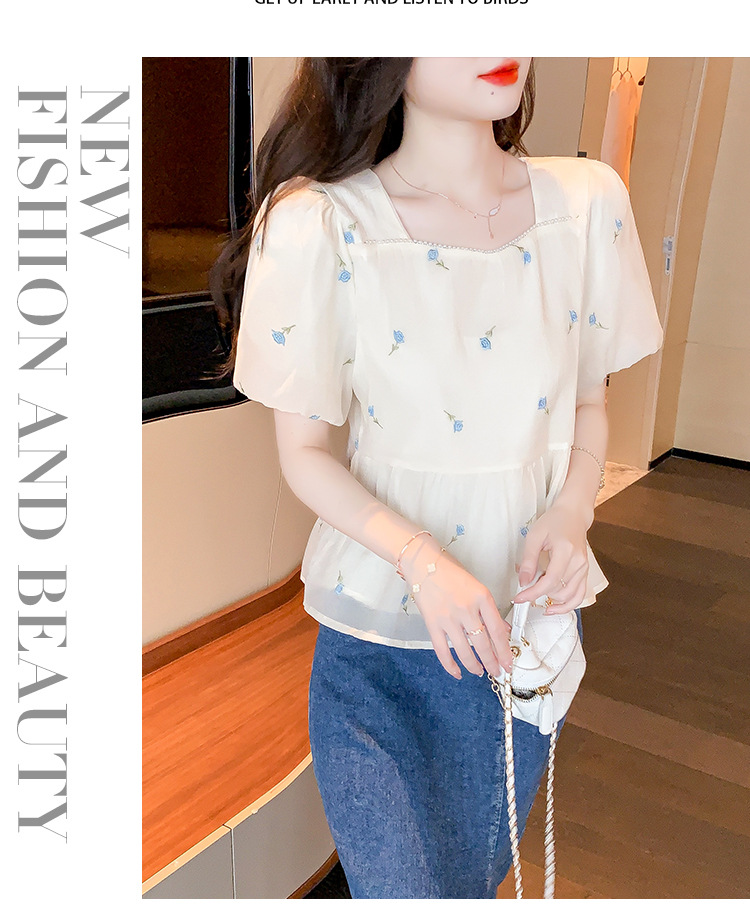 달콤한 진주 스퀘어 칼라 인형 셔츠 여성 여름 2023 새로운 한국식 슬리밍 서양식 나이 감소 셔츠 탑스토어 가기