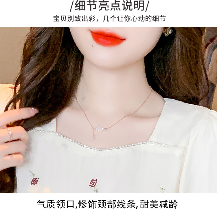 달콤한 진주 스퀘어 칼라 인형 셔츠 여성 여름 2023 새로운 한국식 슬리밍 서양식 나이 감소 셔츠 탑