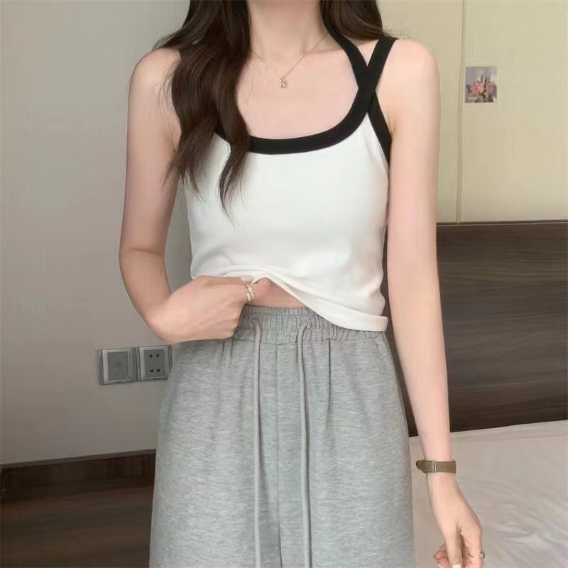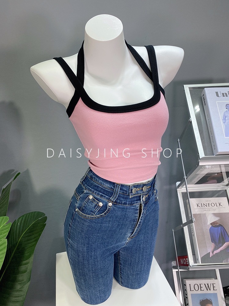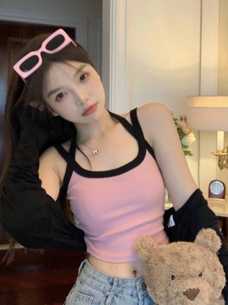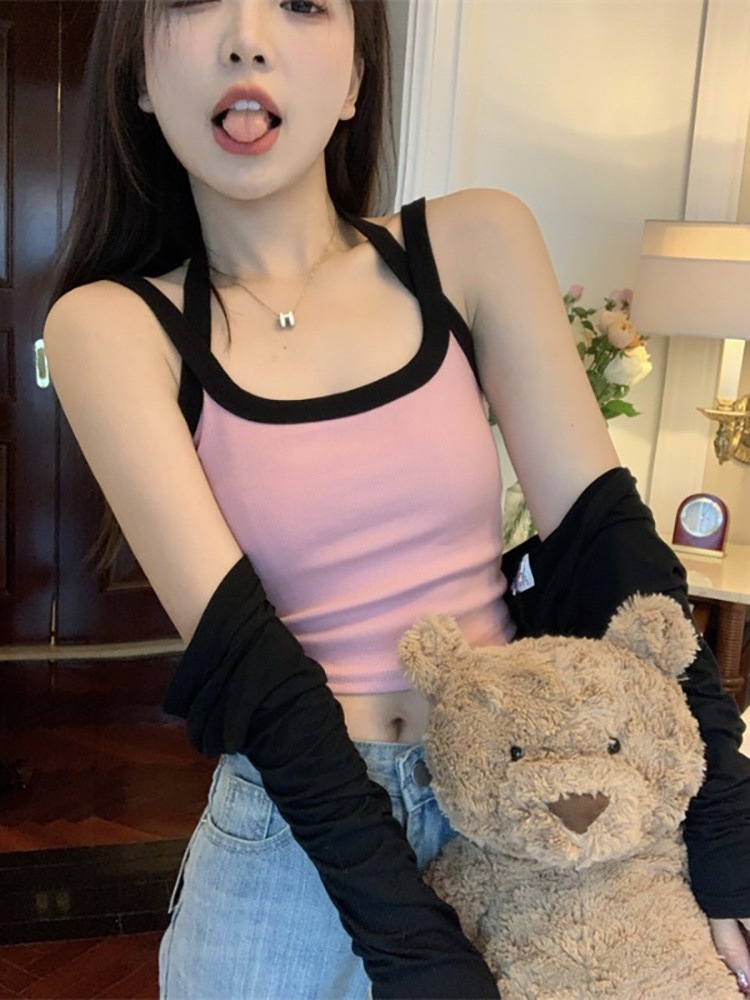 여름 얇은 달콤하고 매운 색상 매칭 캐미솔 여성용 크로스 섹시 짧은 겉옷 내부 아름다운 등 탄성 슬림 핏스토어 가기