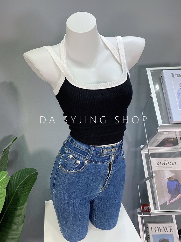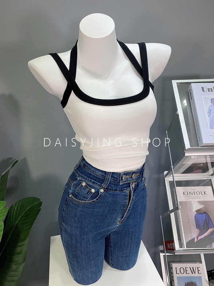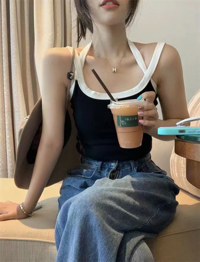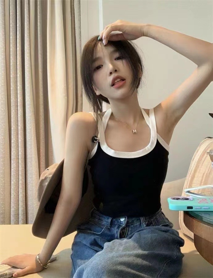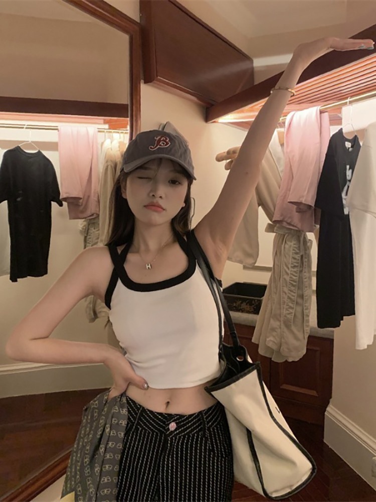 여름 얇은 달콤하고 매운 색상 매칭 캐미솔 여성용 크로스 섹시 짧은 겉옷 내부 아름다운 등 탄성 슬림 핏스토어 가기