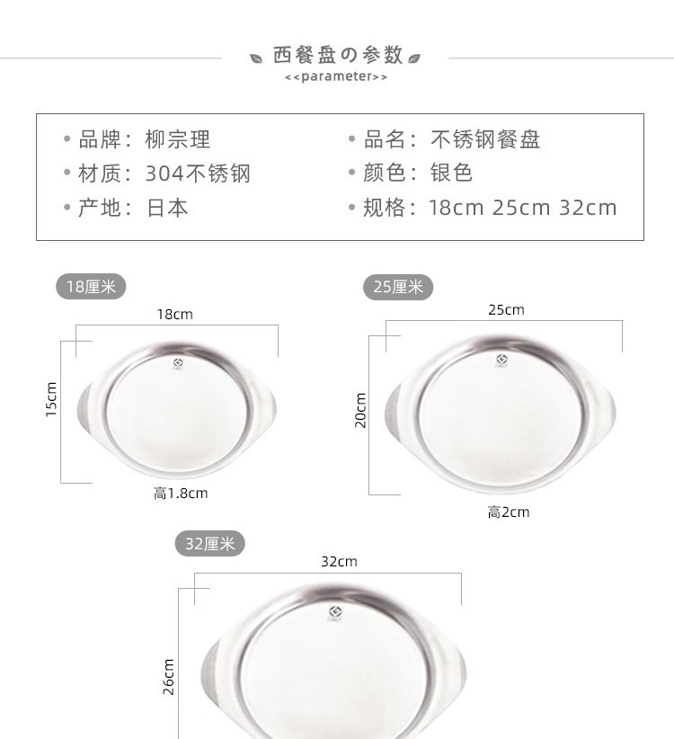 Liu Zongli 일본 수입 18-8/304 스테인레스 스틸 가정 요리 서양 접시 트레이 과일 접시 스낵 플레이트