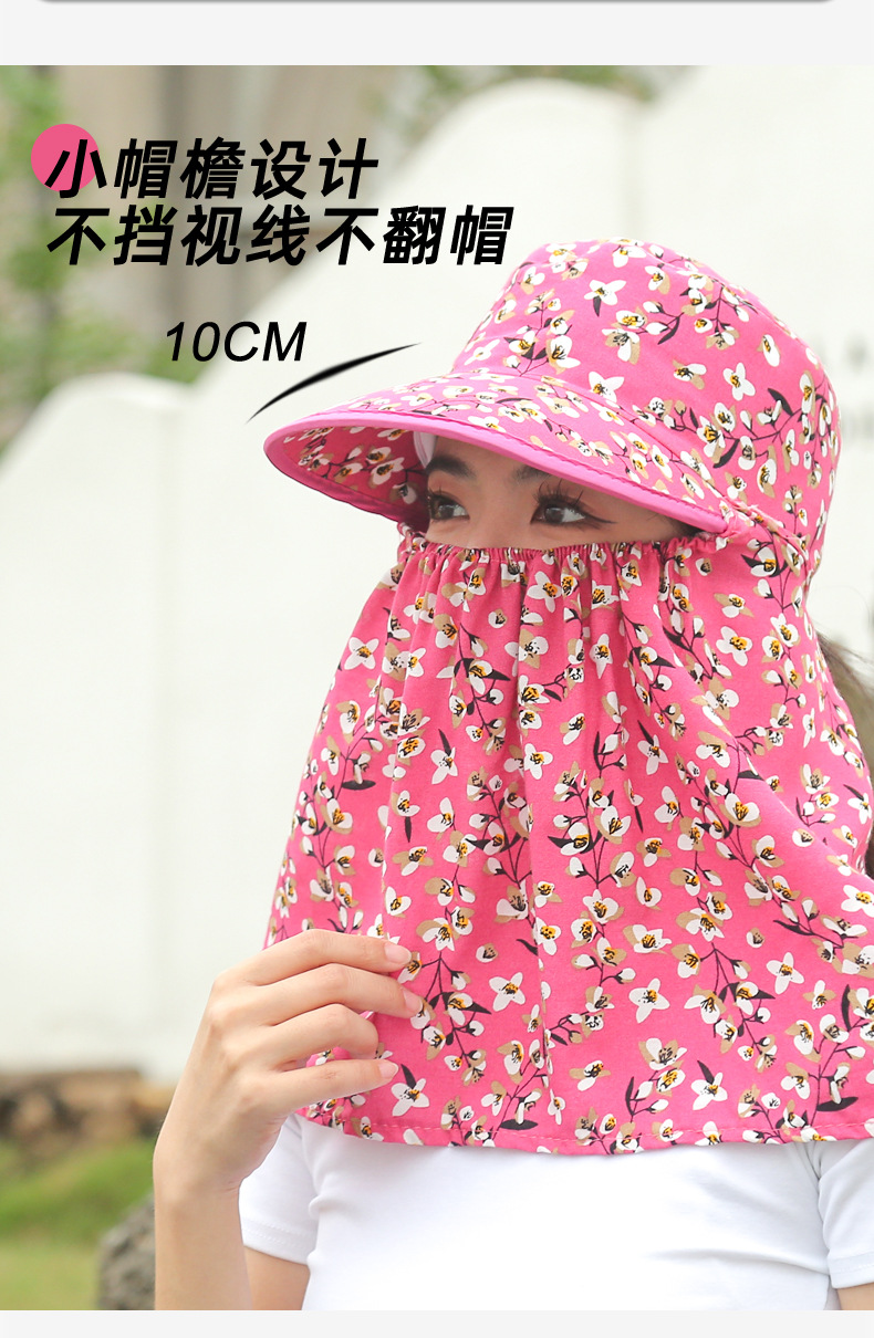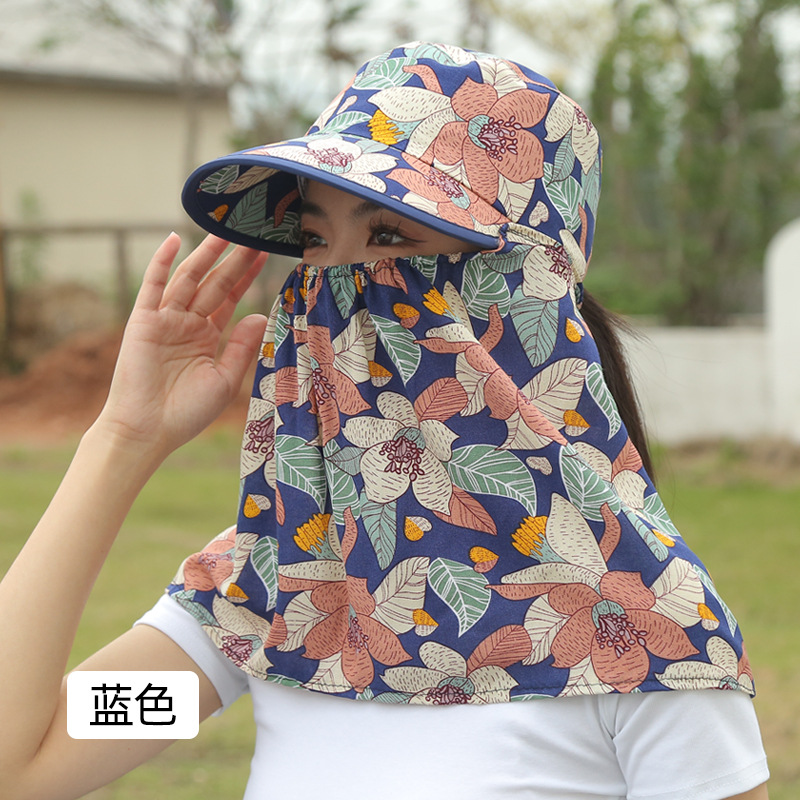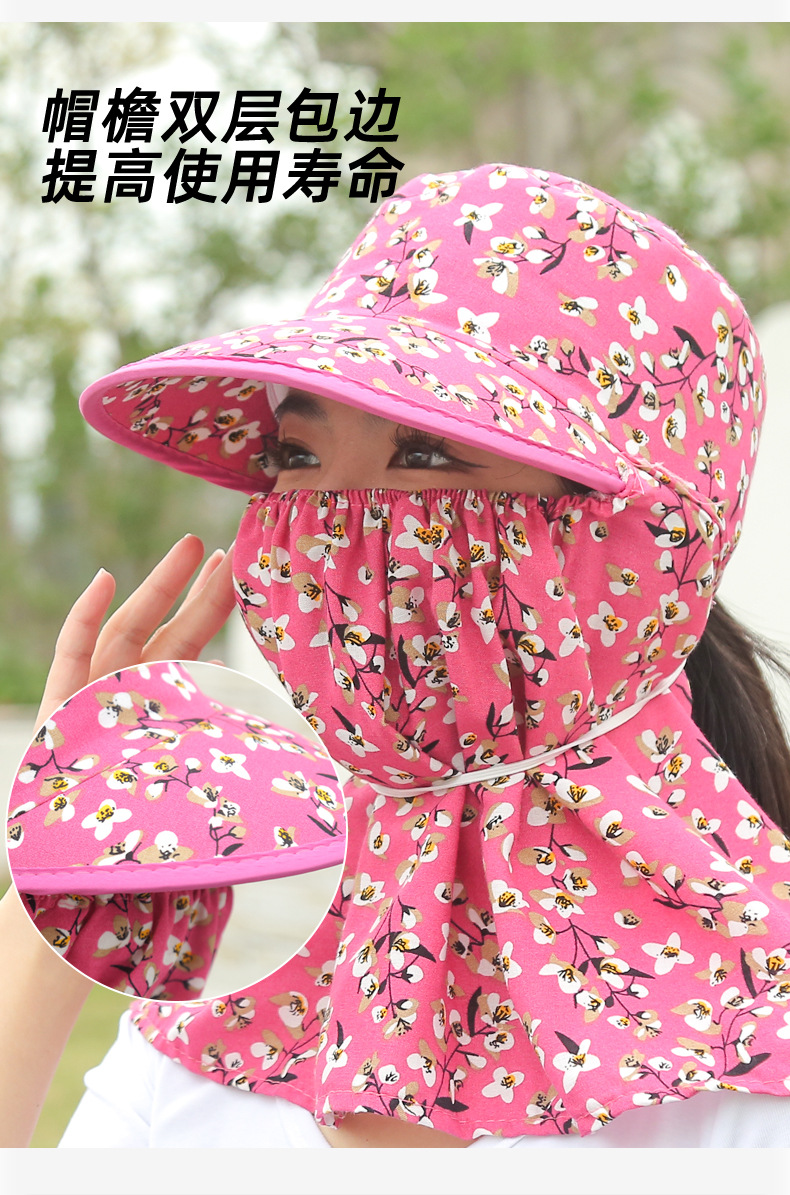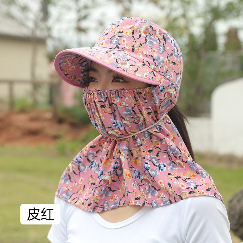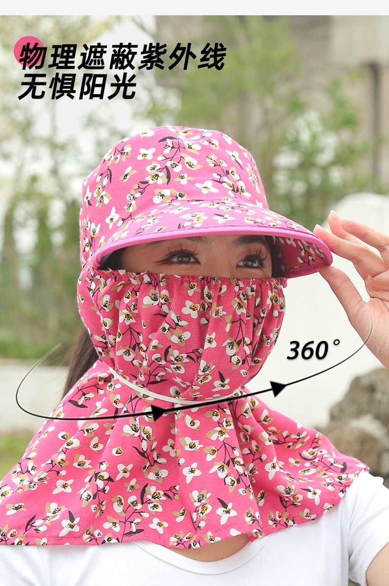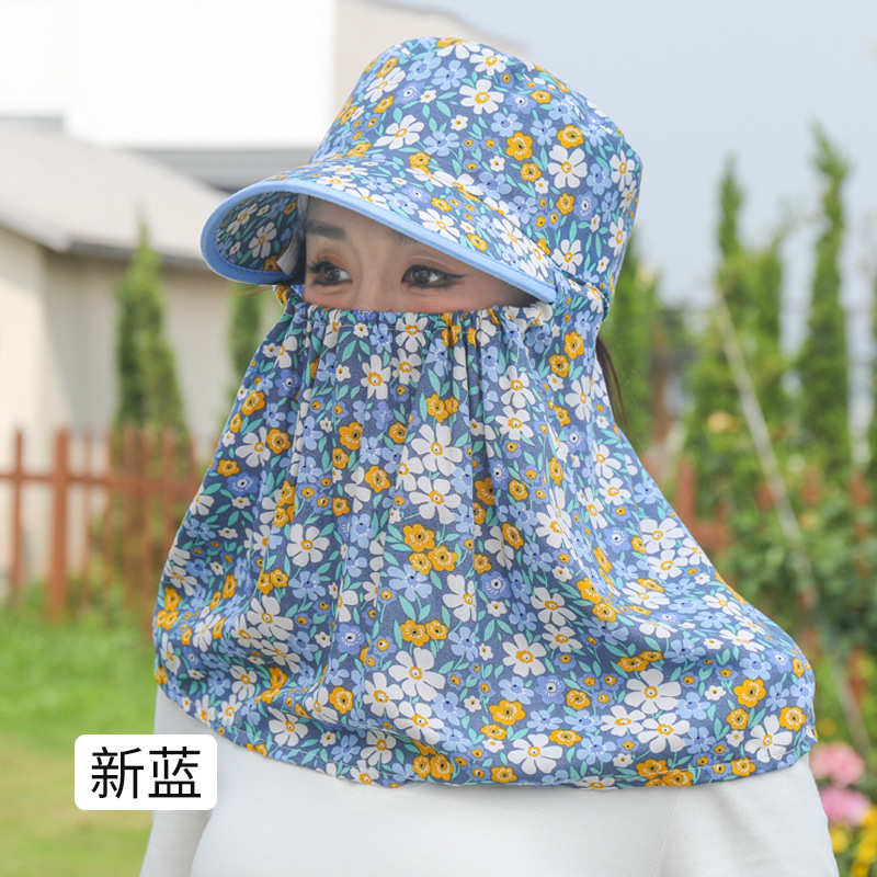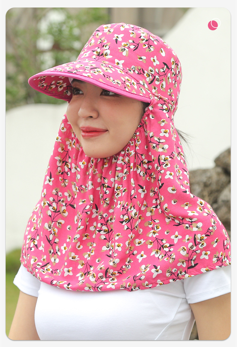 여름 여성용 태양 보호 얼굴 및 목 보호 태양 모자 새로운 스타일 꽃 모자 작업 야외 승마 마스크 차 따기 태양 모자스토어 가기