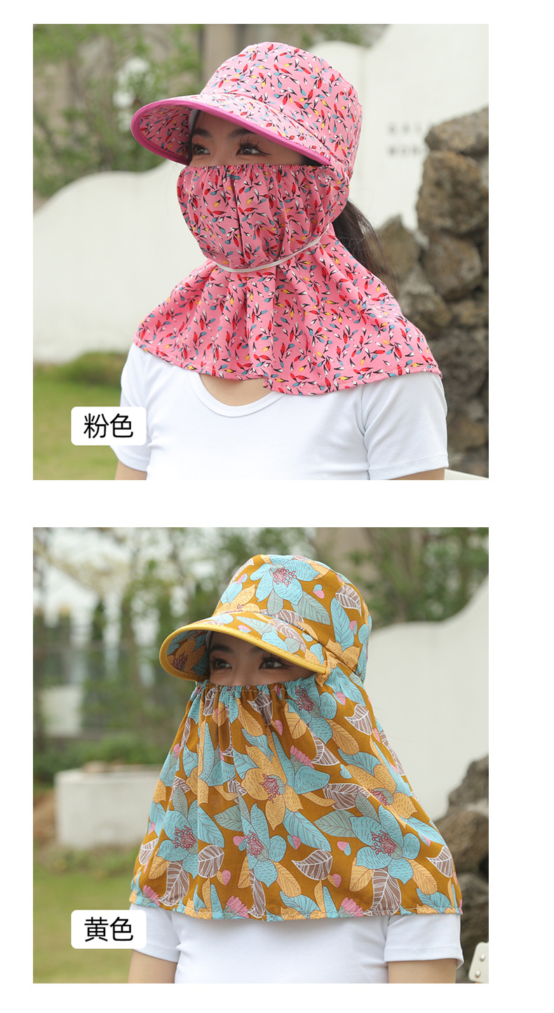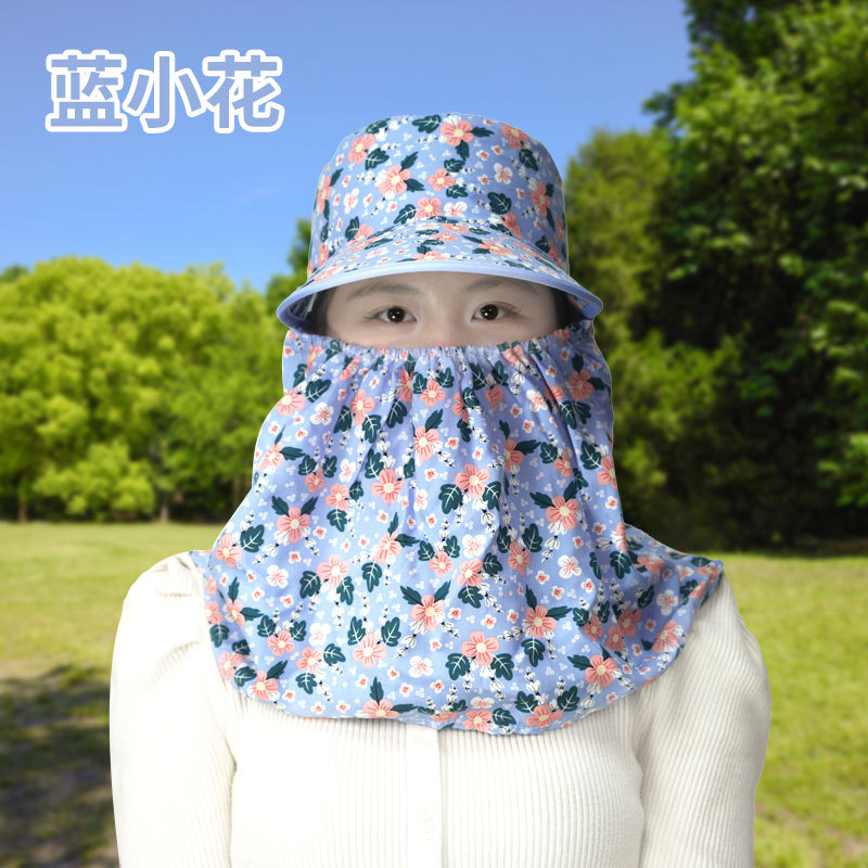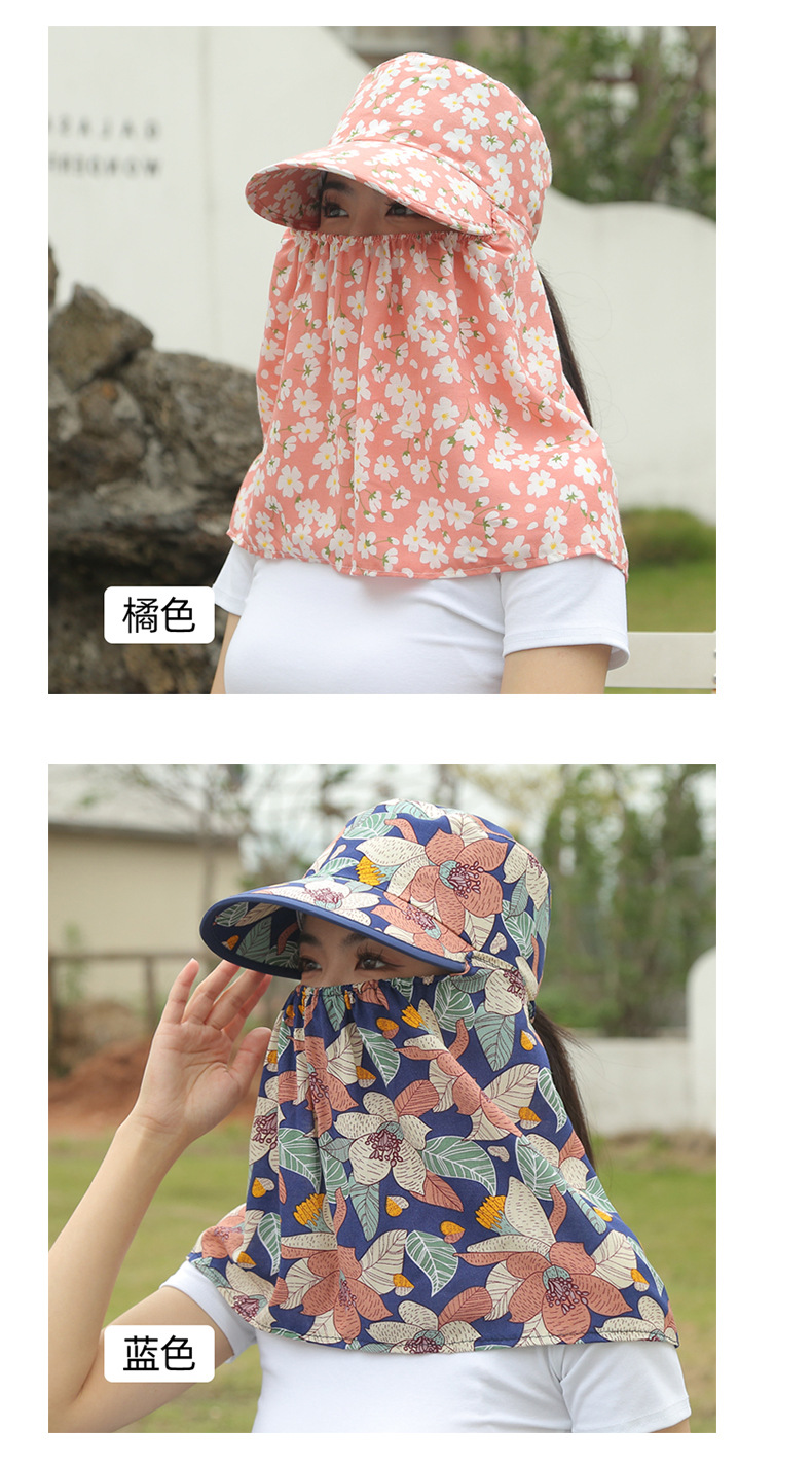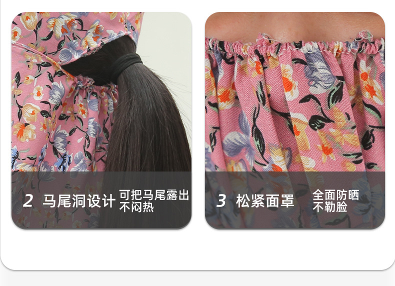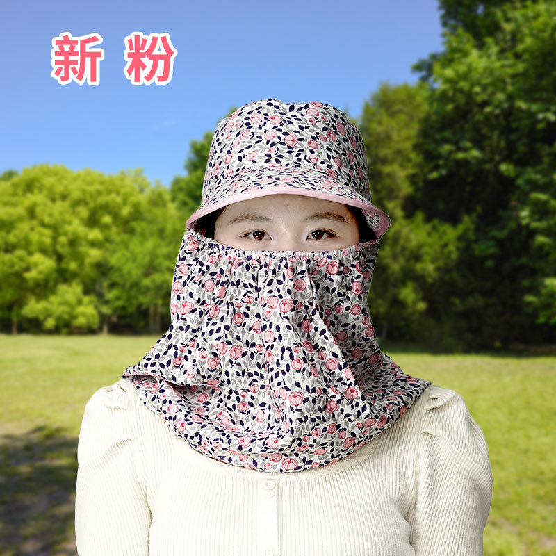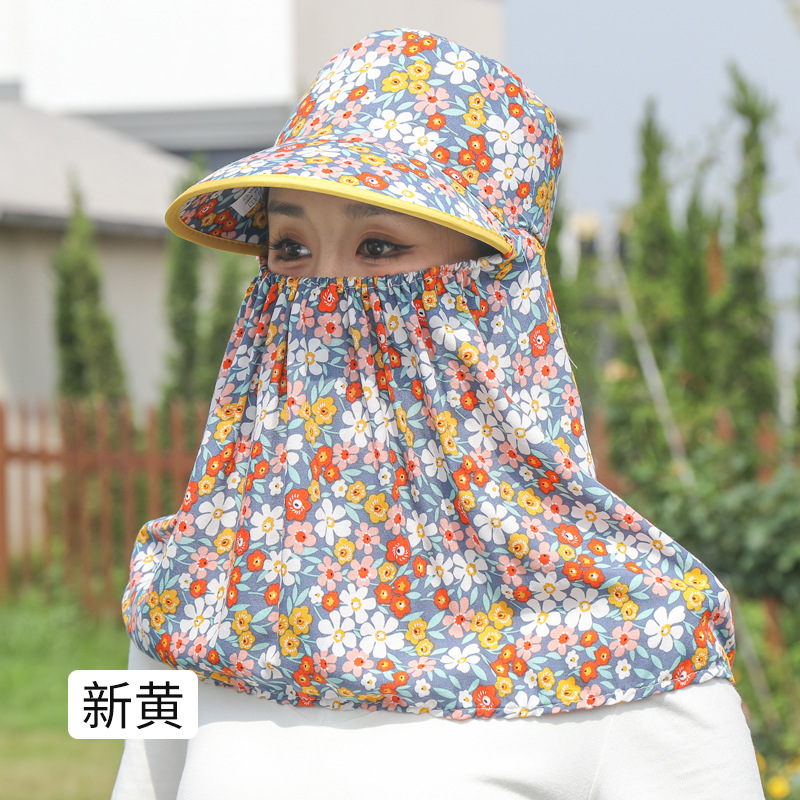 여름 여성용 태양 보호 얼굴 및 목 보호 태양 모자 새로운 스타일 꽃 모자 작업 야외 승마 마스크 차 따기 태양 모자스토어 가기