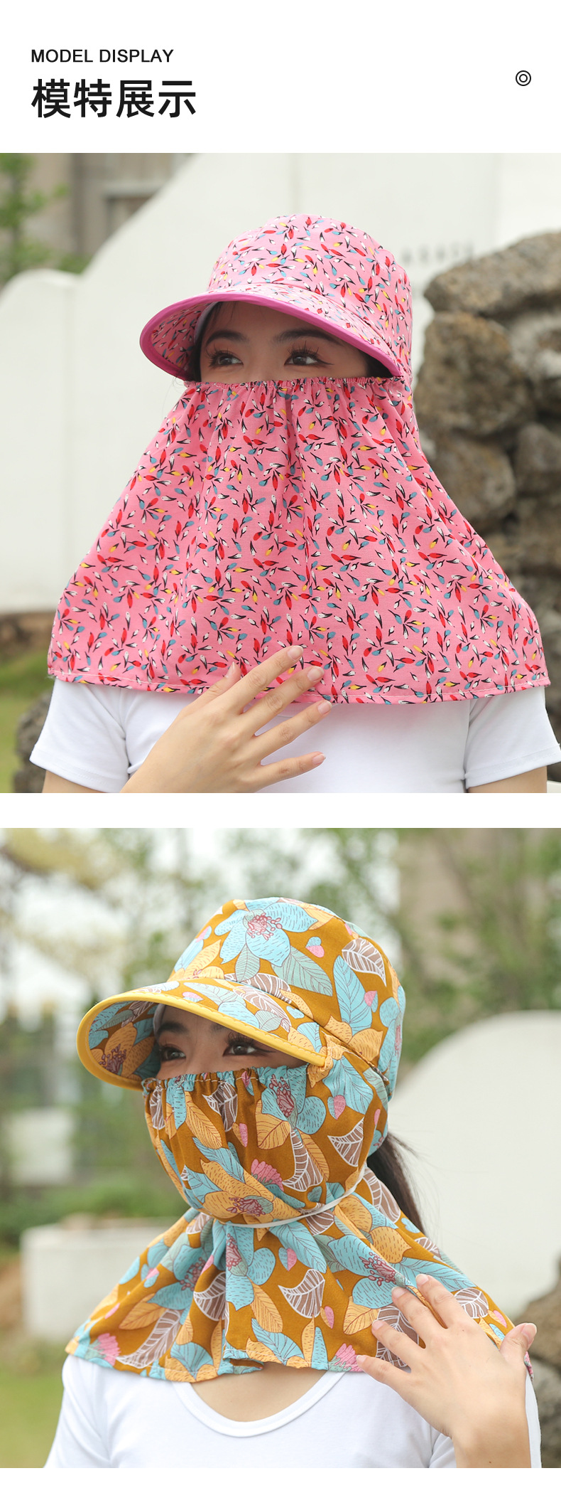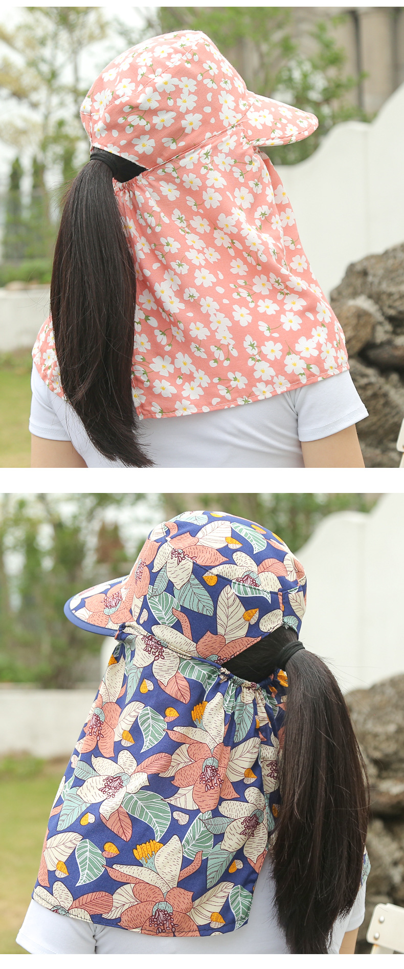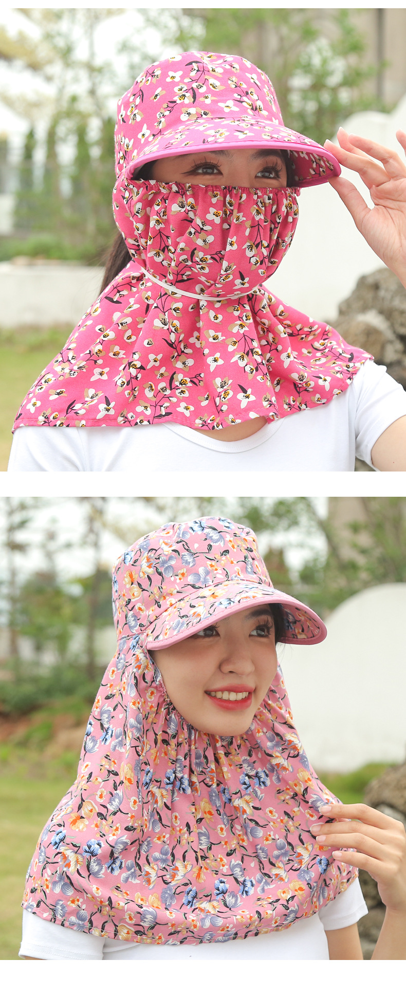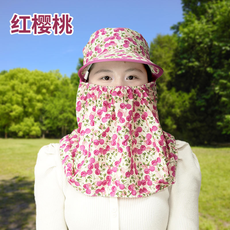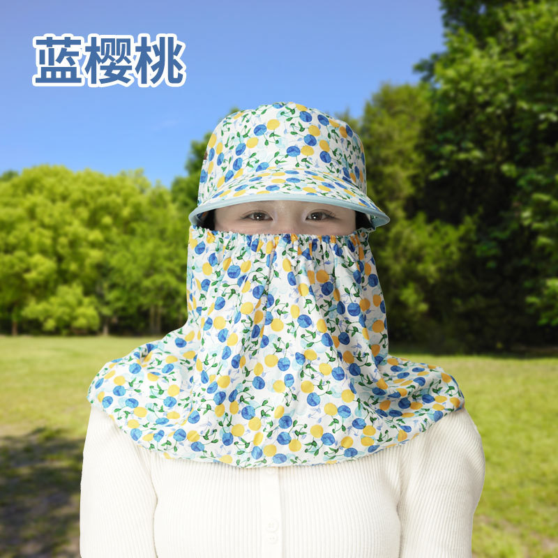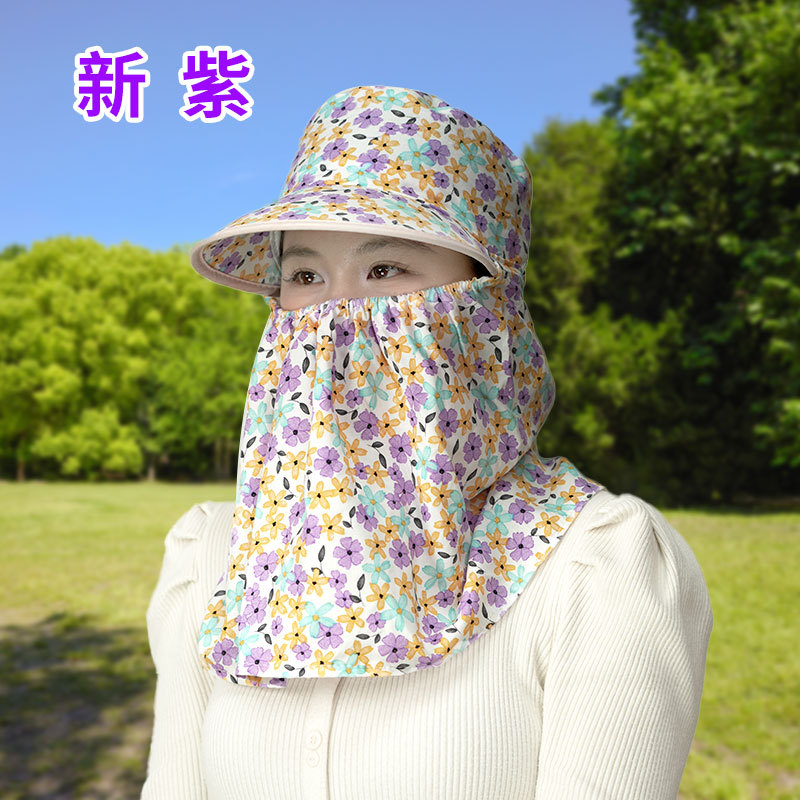 여름 여성용 태양 보호 얼굴 및 목 보호 태양 모자 새로운 스타일 꽃 모자 작업 야외 승마 마스크 차 따기 태양 모자스토어 가기