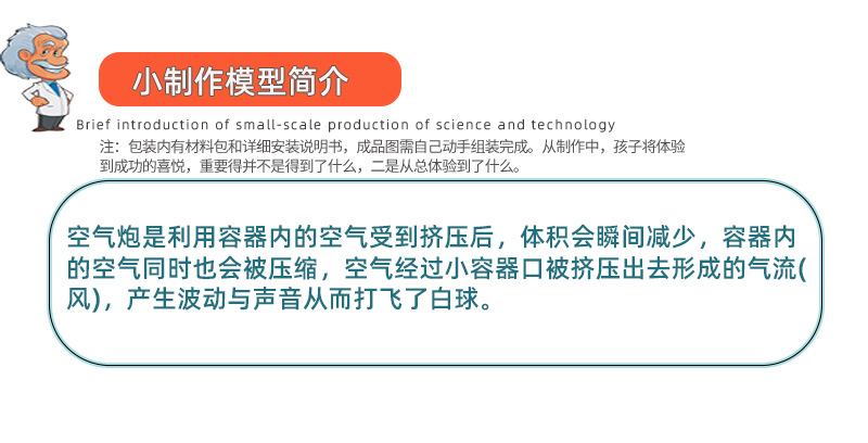 유치원 어린이 과학 및 교육 작은 만들기 공기 대포 실험 완구 수제 DIY 교육 재미 실험 재료 팩