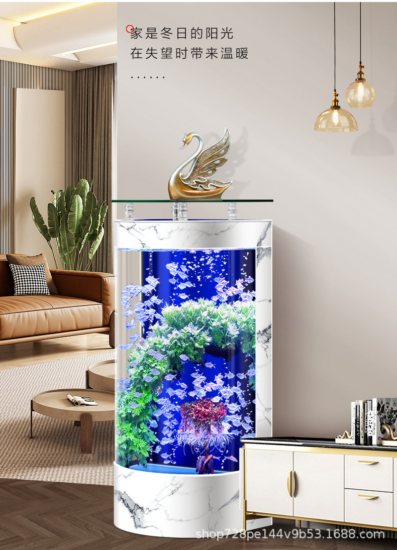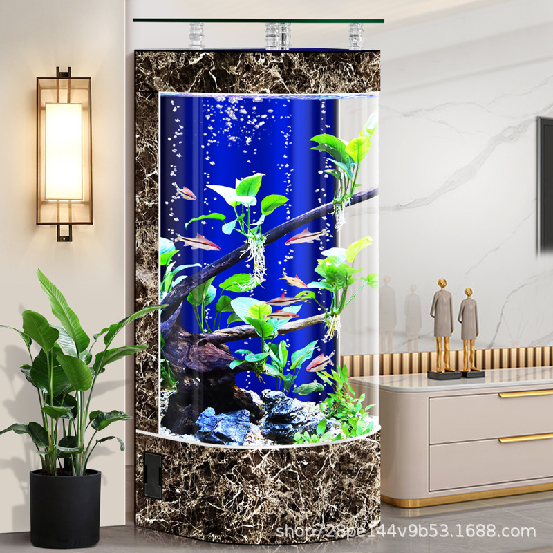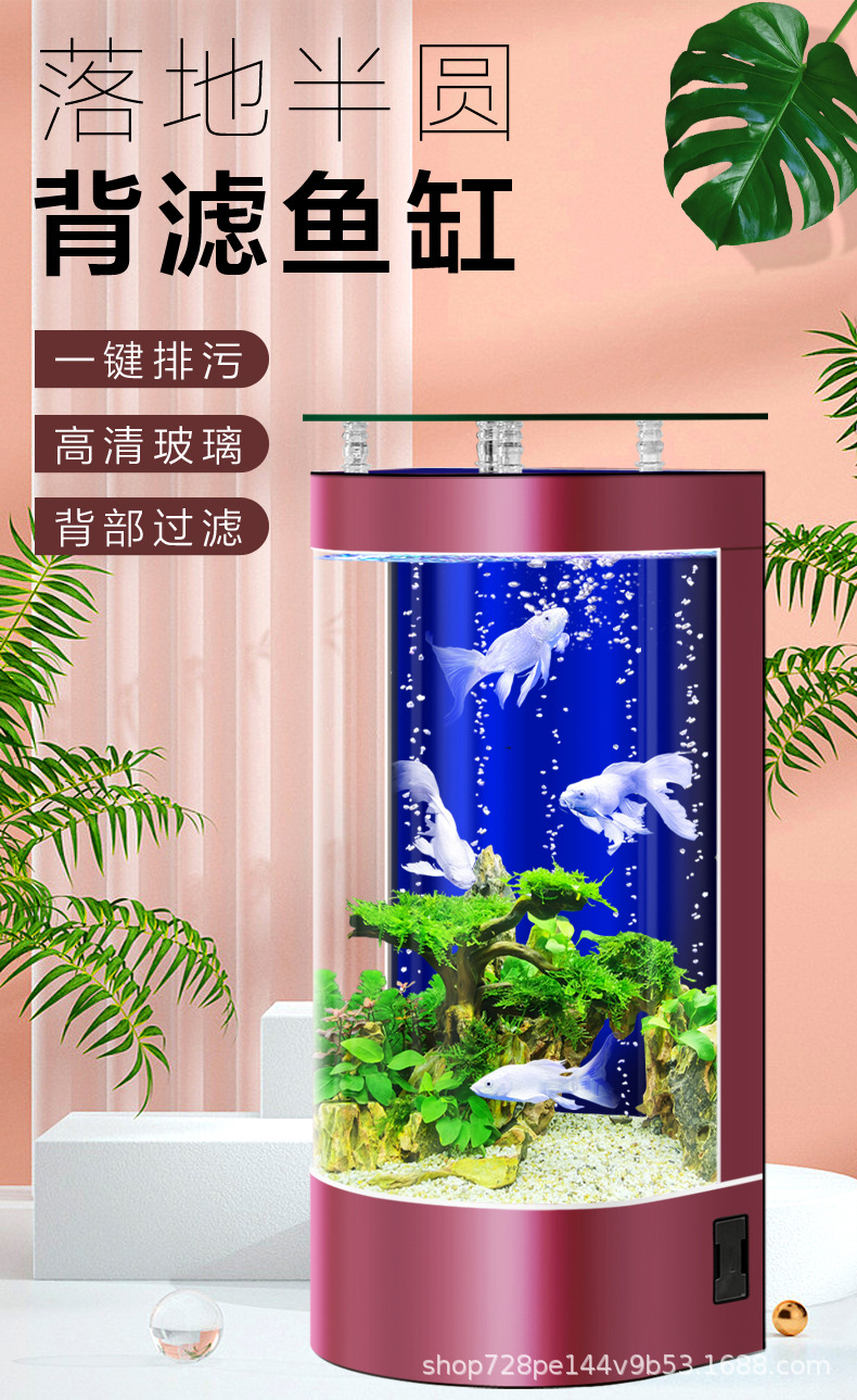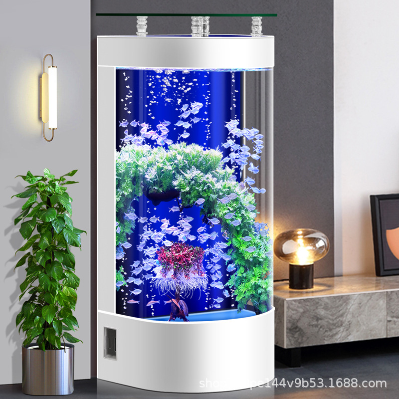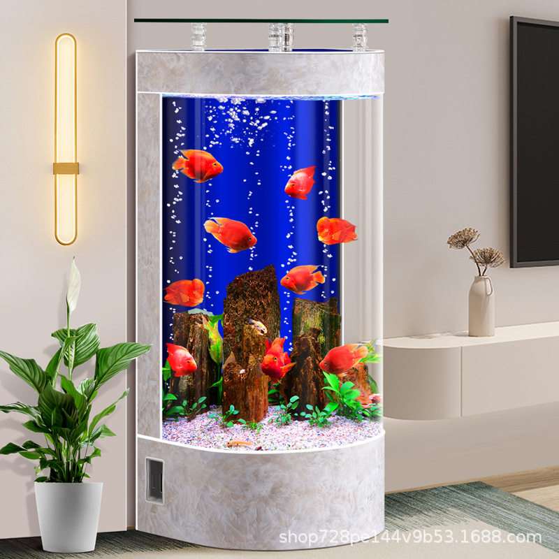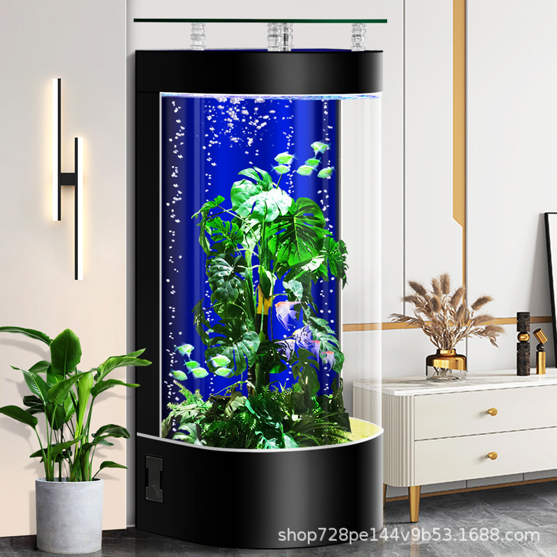 2026년형 새로운 디자인의 거실용 가정용 중소형 바닥형 수족관, 가정용 생태 반원형 수족관, 물갈이 필요 없음스토어 가기