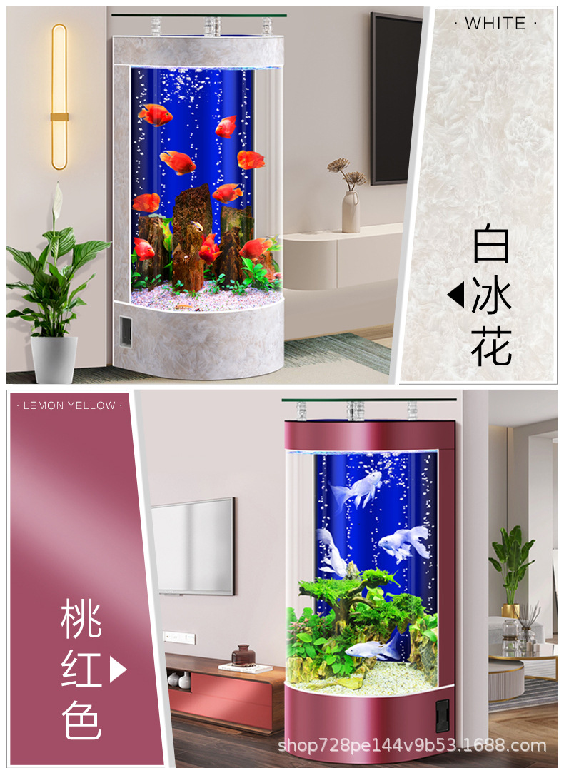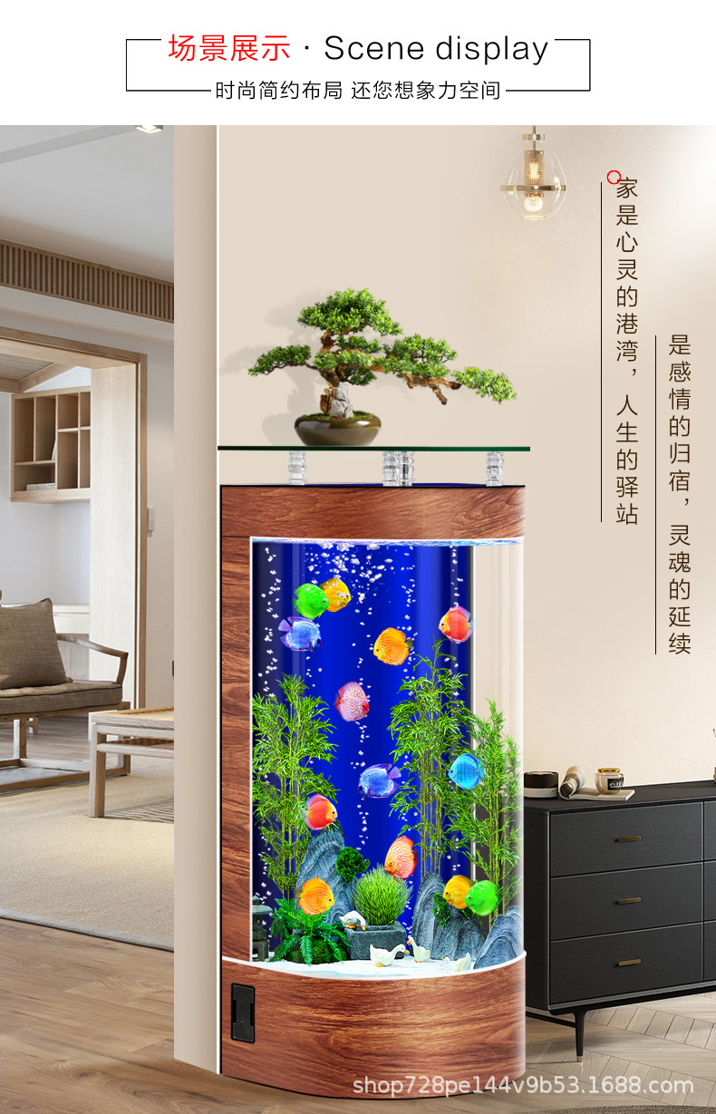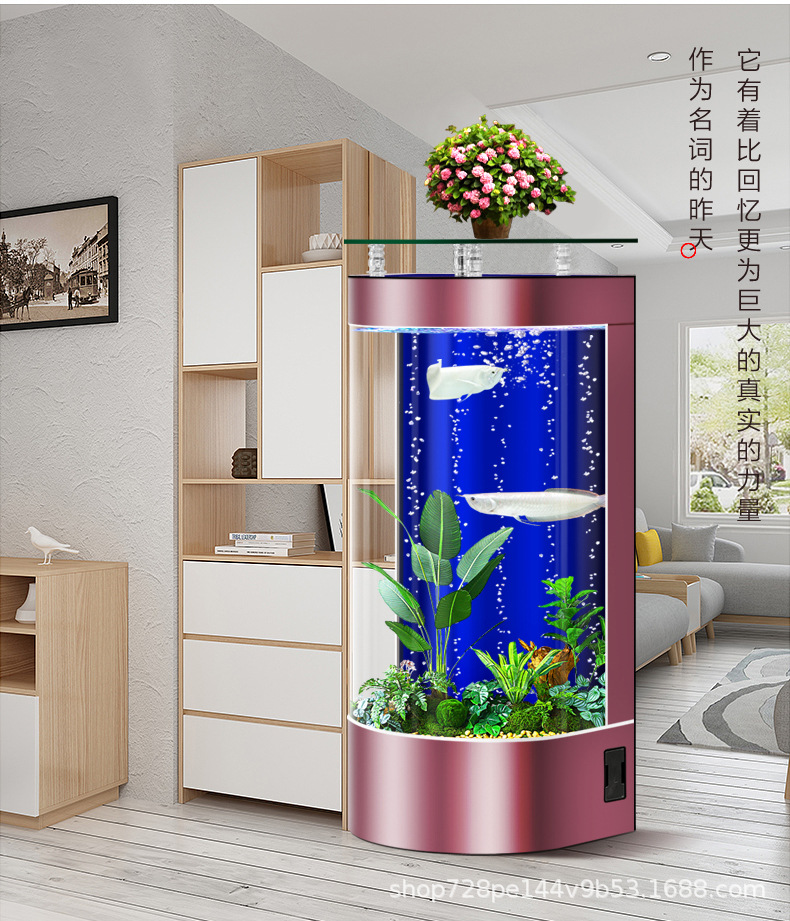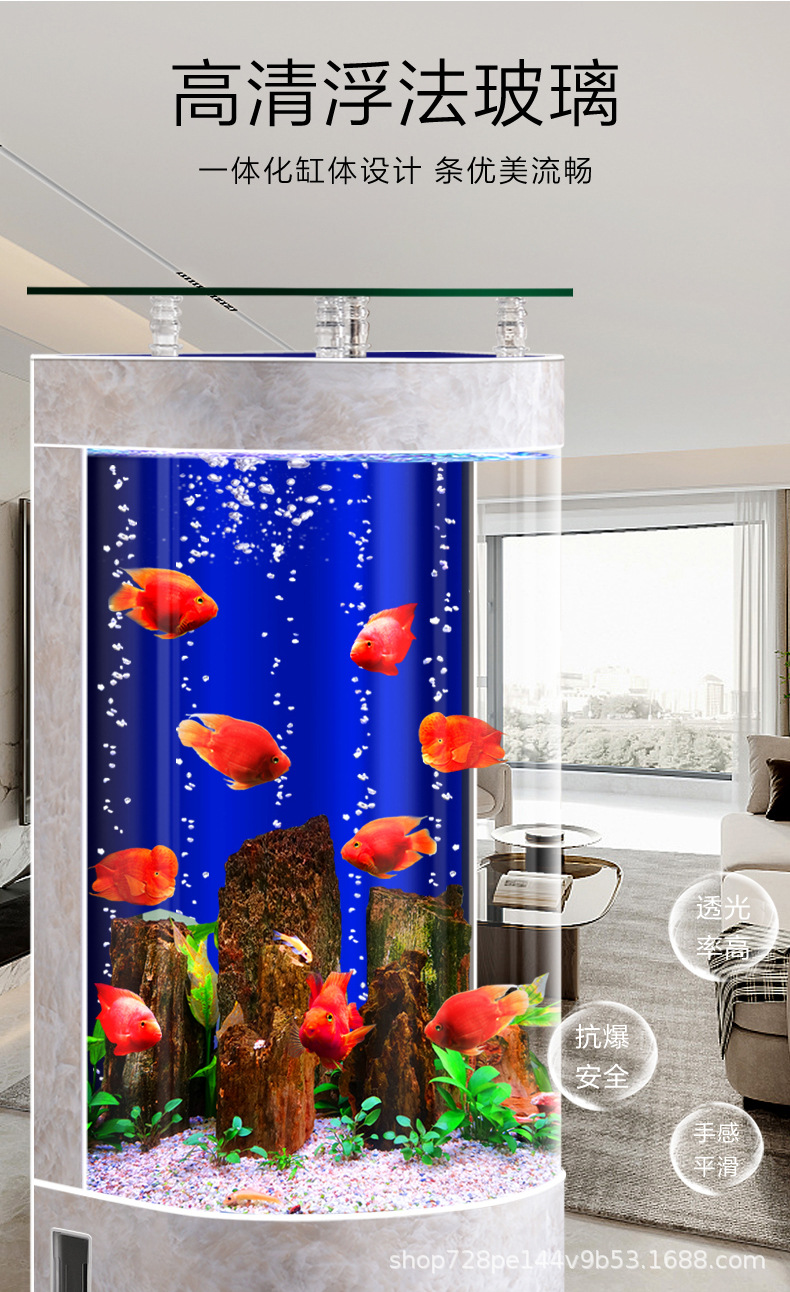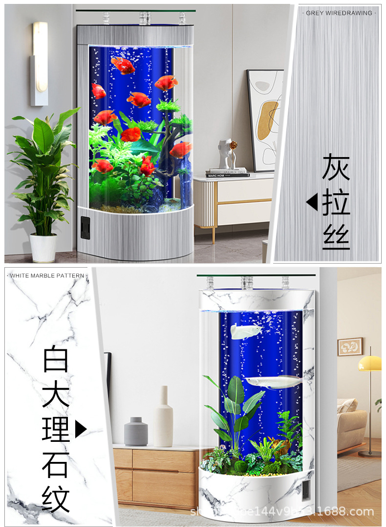 2026년형 새로운 디자인의 거실용 가정용 중소형 바닥형 수족관, 가정용 생태 반원형 수족관, 물갈이 필요 없음스토어 가기