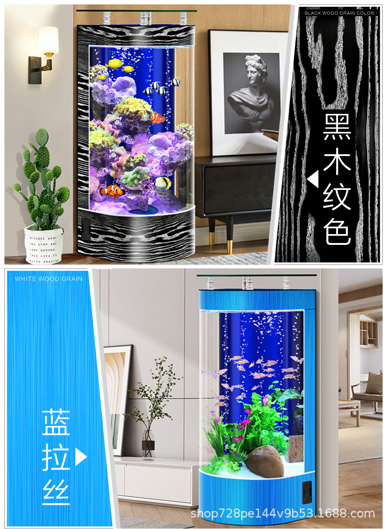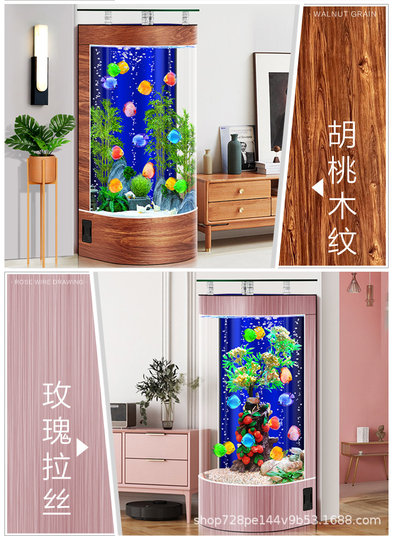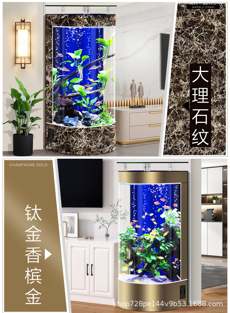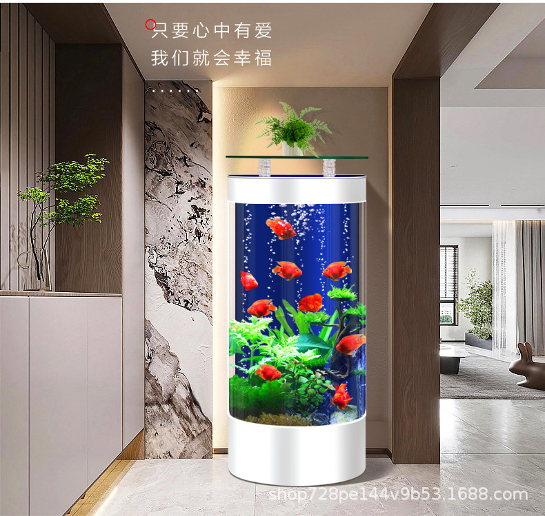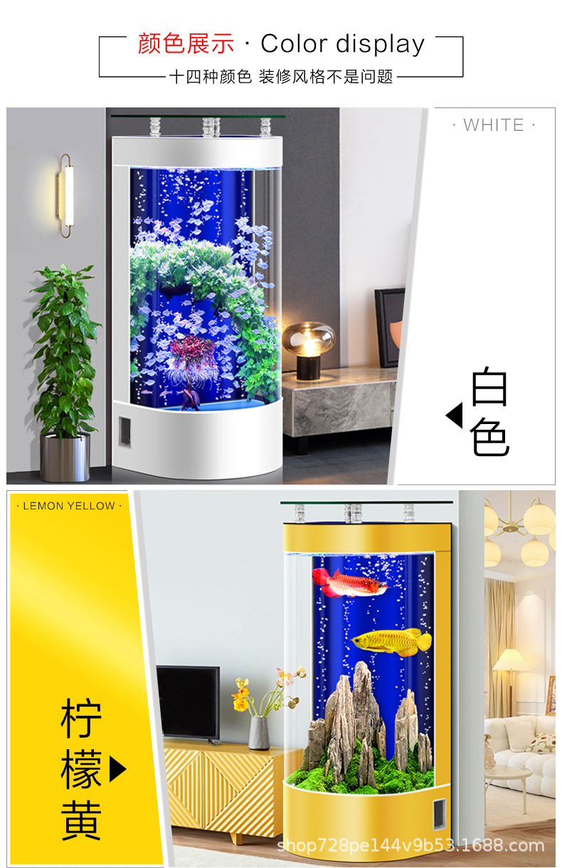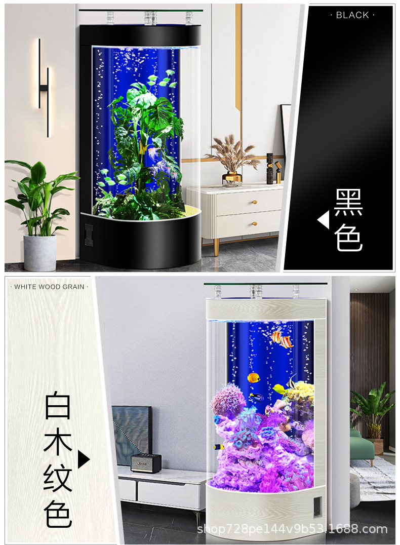2026년형 새로운 디자인의 거실용 가정용 중소형 바닥형 수족관, 가정용 생태 반원형 수족관, 물갈이 필요 없음스토어 가기