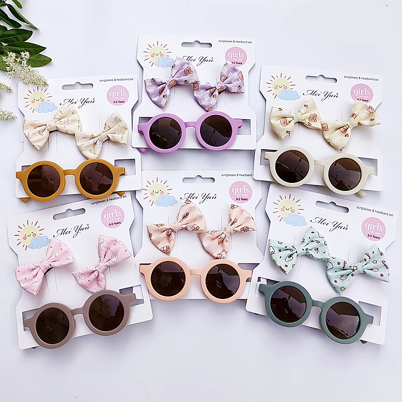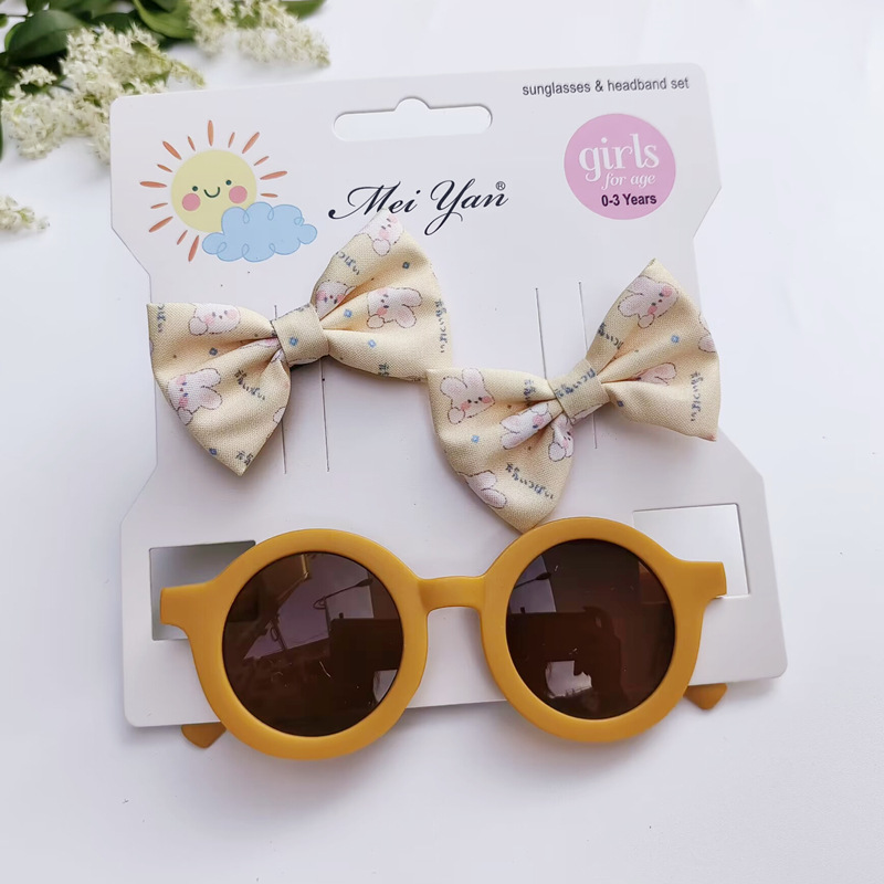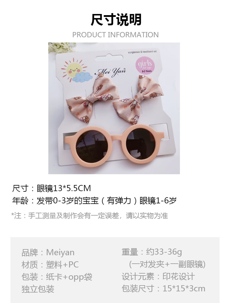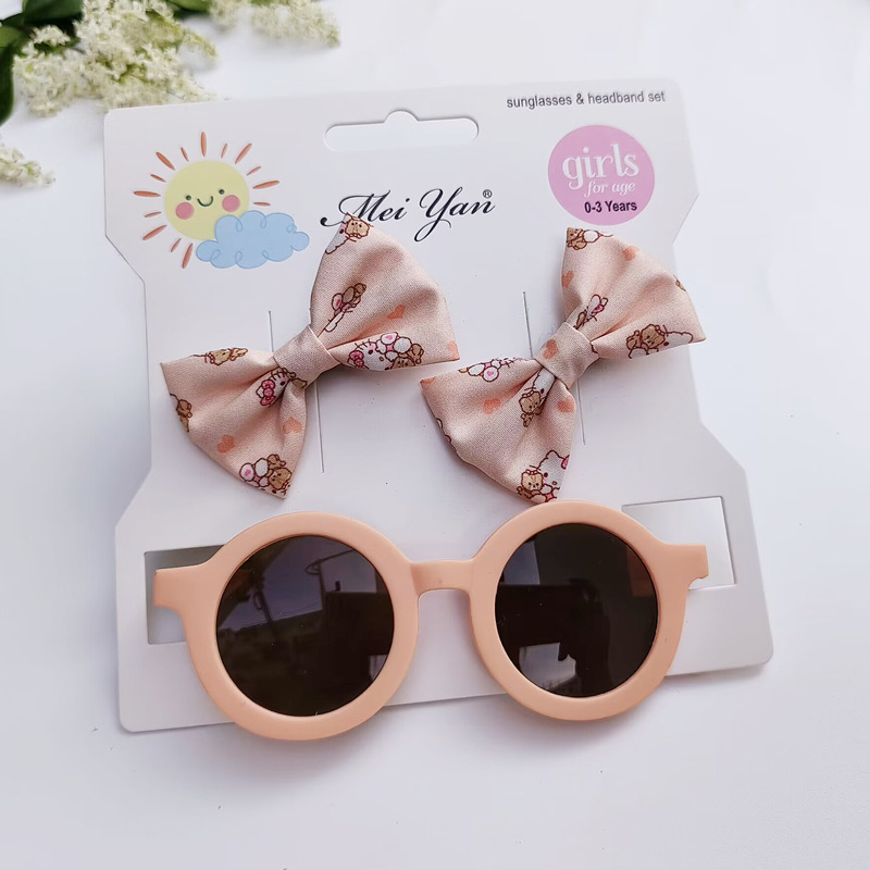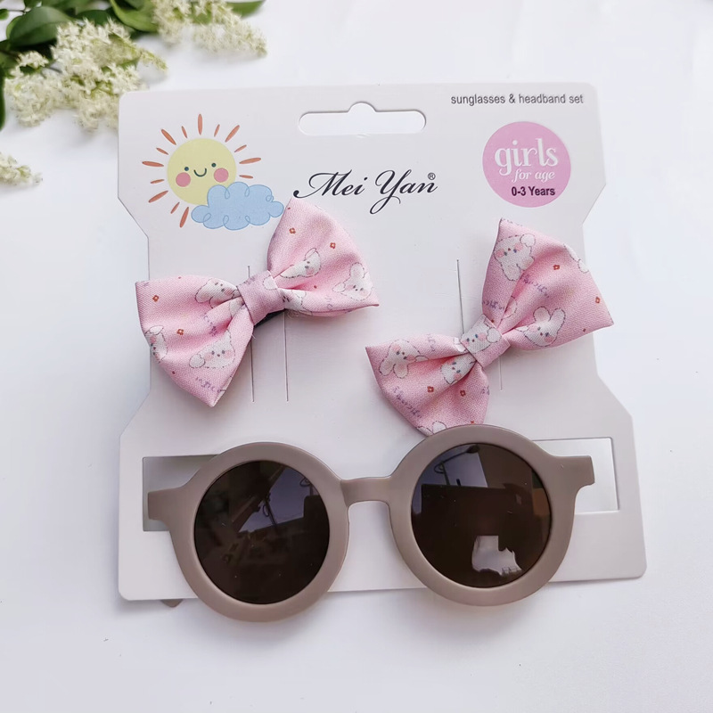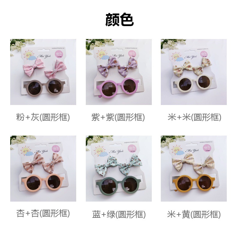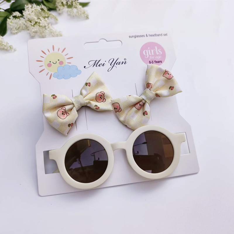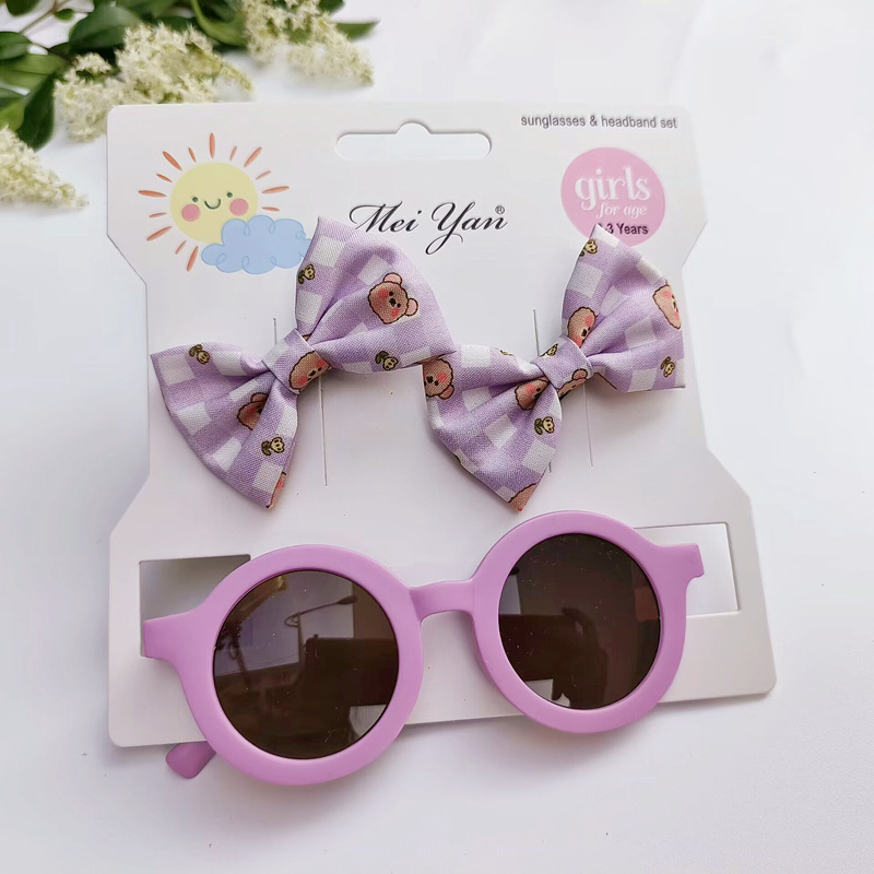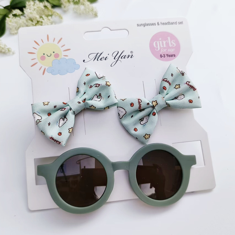 卡通印花蝴蝶结发夹+圆形框眼镜2件套