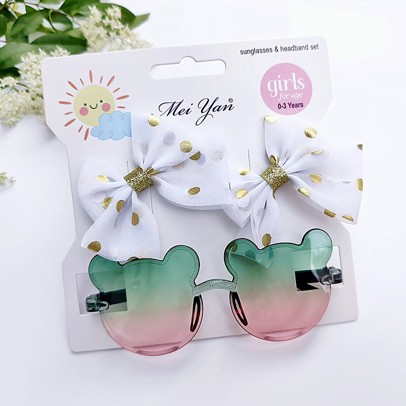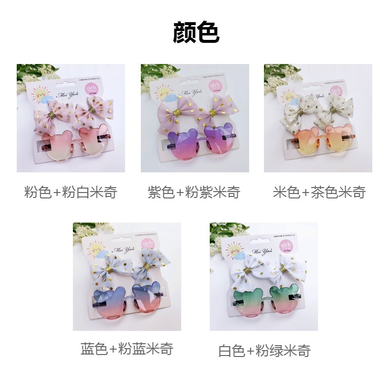 烫金波点结发夹+渐变色米奇眼镜2件套
