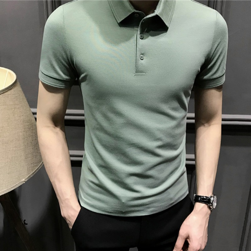 한국식 봄 여름 심플 뉴 남성용 반팔 폴로 셔츠 라펠 티셔츠 슬림핏 반팔 티셔츠 남성복