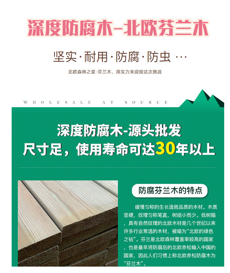방부목 핀란드 원목판 정원용 목재판 wow 맞춤형 야외 뉴질랜드 소나무 벽면 울타리 방부목